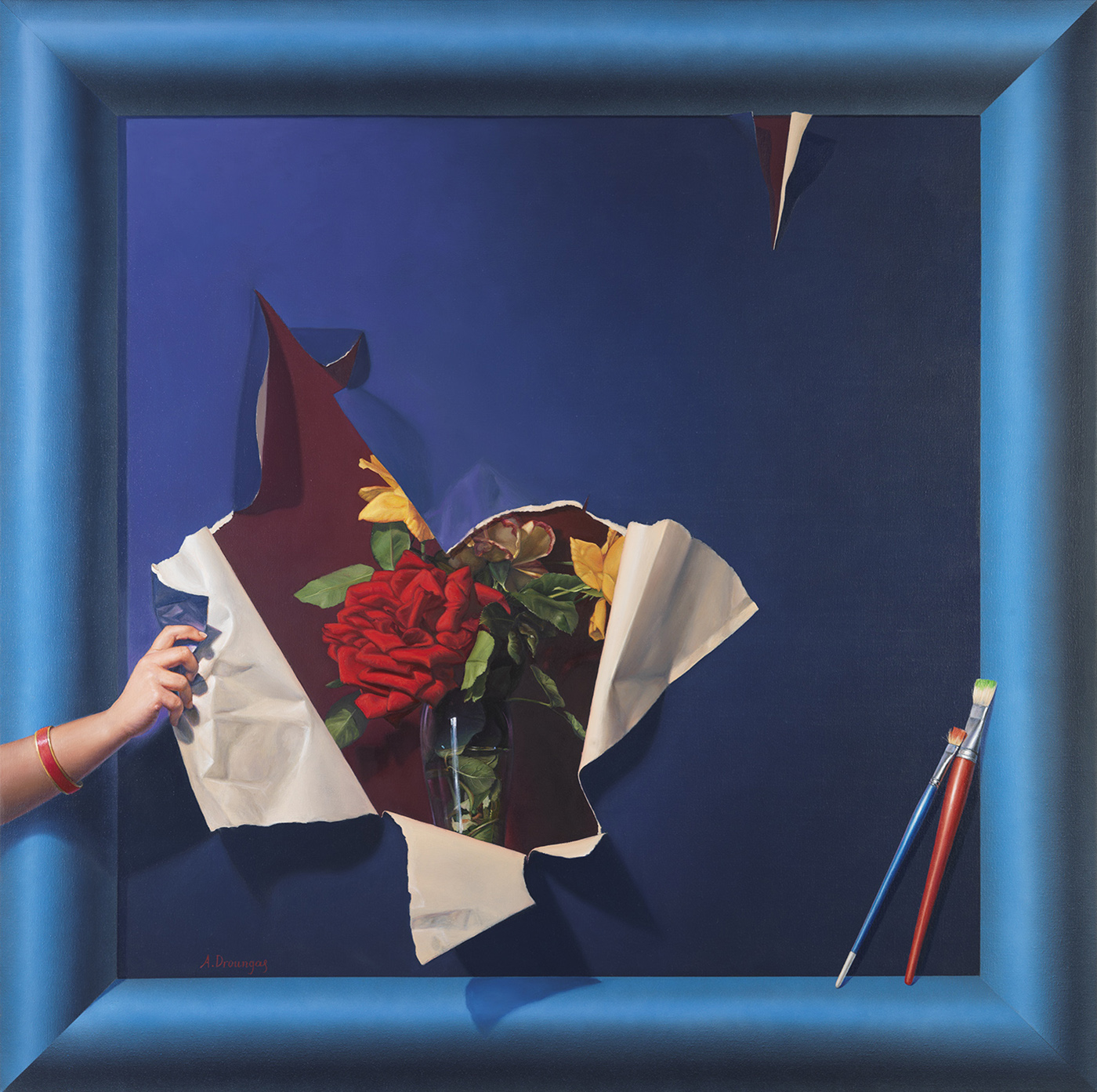 Η ζωγραφική του Αχιλλέα Δρούγκα περιγράφεται συχνά με όρους ακραίας δεξιοτεχνίας και φωτογραφικής αληθοφάνειας. Όμως το ουσιαστικό διακύβευμα δεν είναι η μίμηση της πραγματικότητας, αλλά η μετατόπιση από το «βλέπω» στο «διαβάζω».