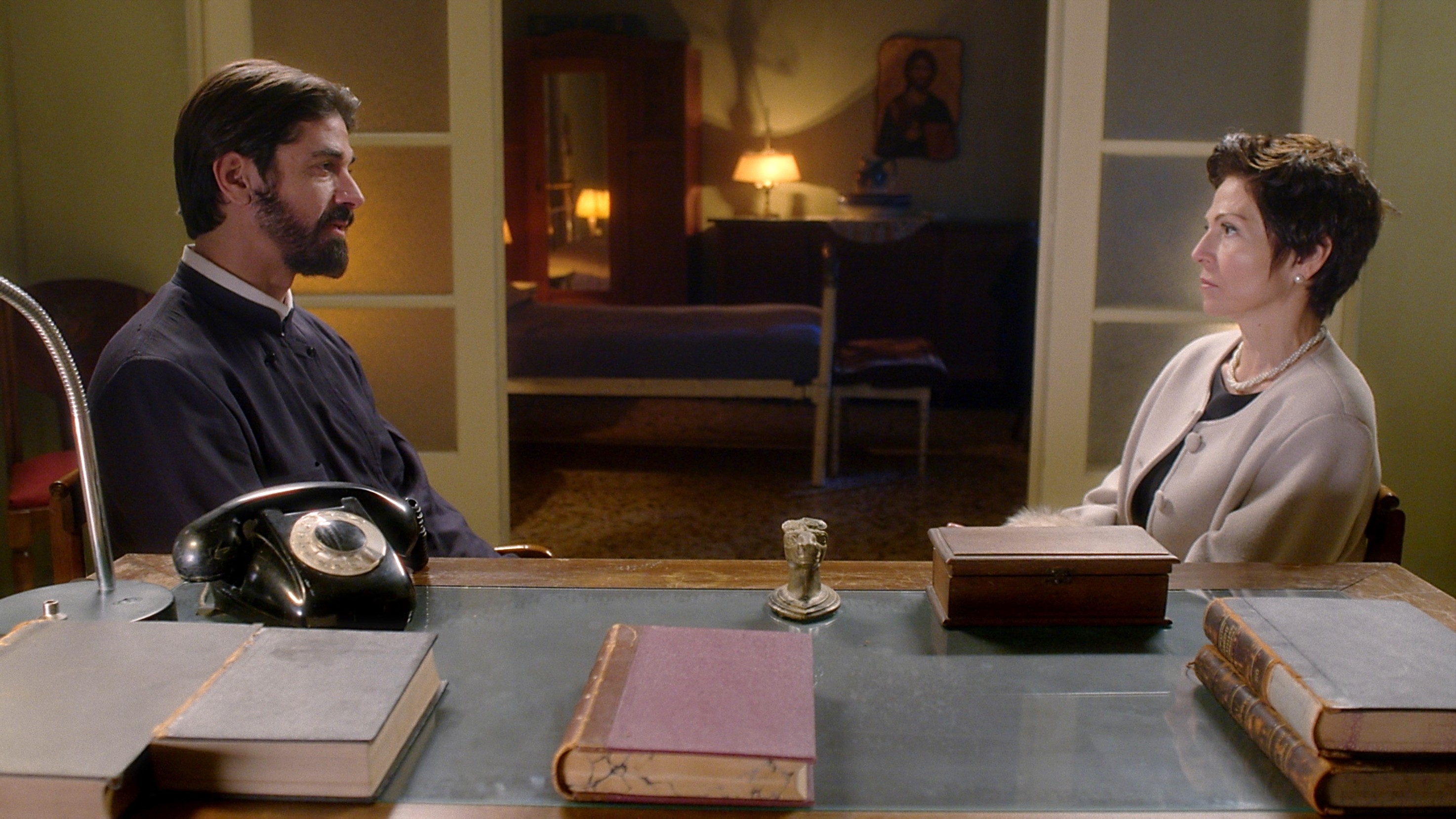 Ο π. Νικόλαος προστατεύει τη Χριστίνα από τους Στερνιώτες αλλά και τον Μαρκόπουλο.