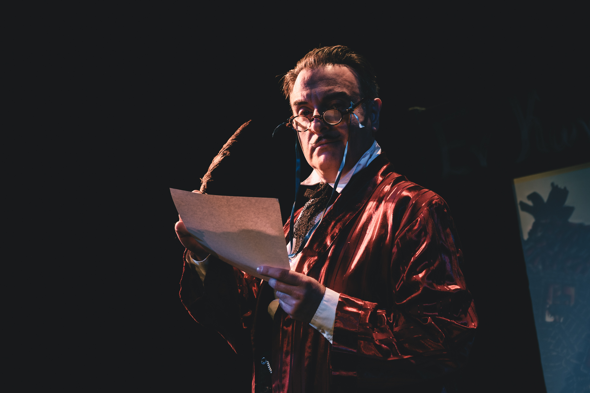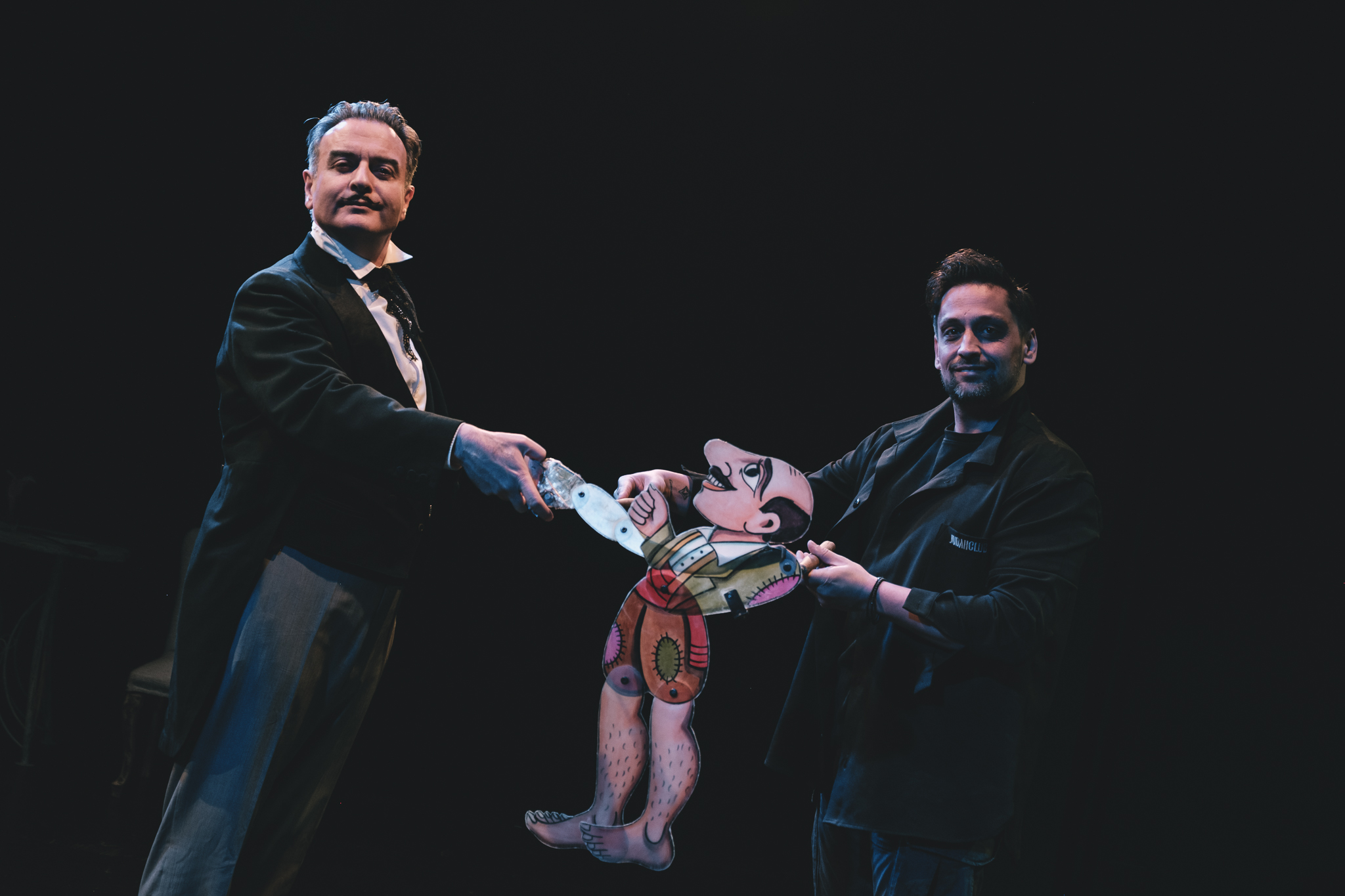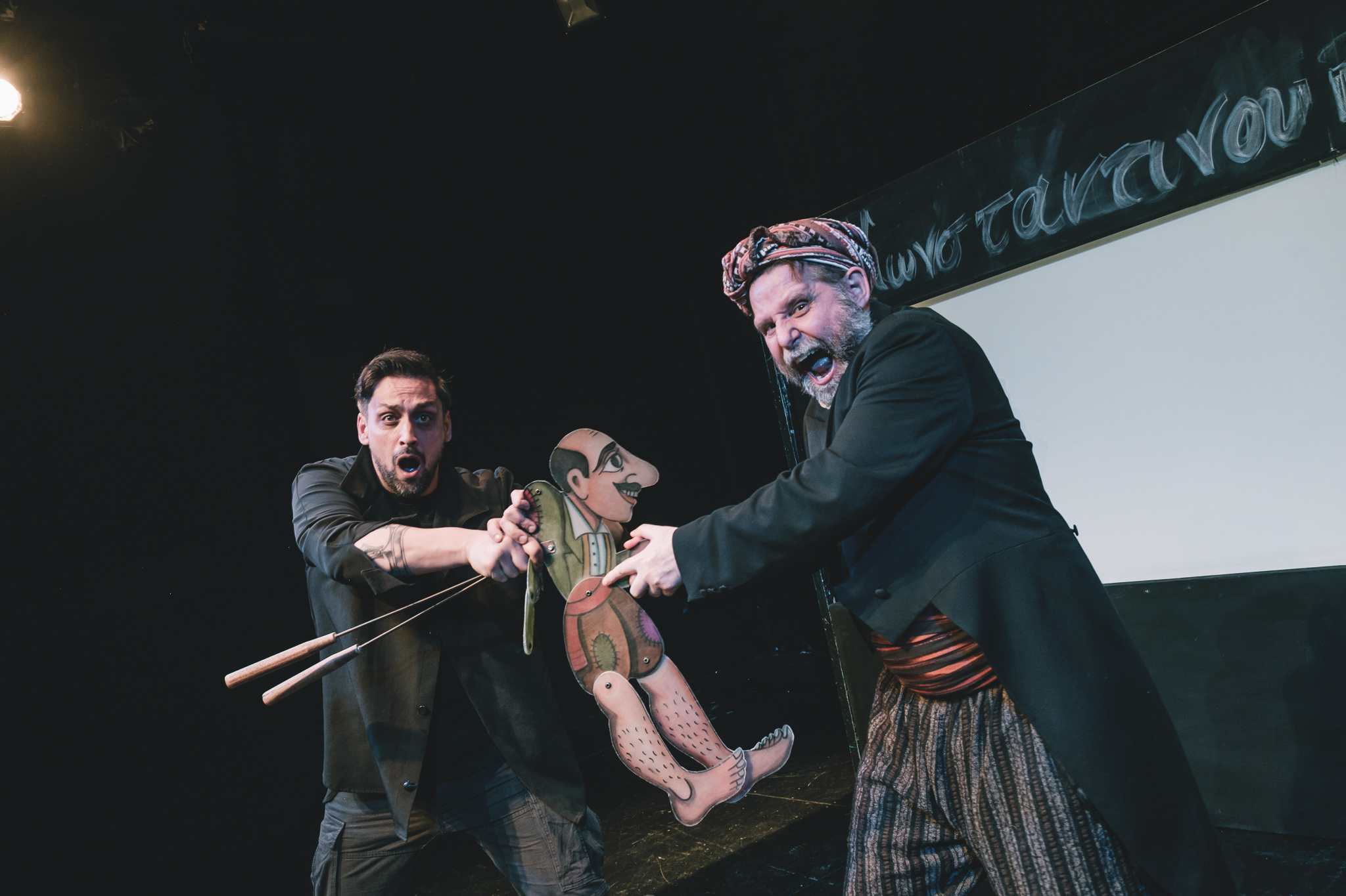 Στην παράσταση συμμετέχει ζωντανά ο καραγκιοζοπαίχτης Κώστας Σπυρόπουλος. Βοηθοί στο μπερντέ, οι μαθητές της Ακαδημίας Θεάτρου Σκιών «Θανάσης Σπυρόπουλος».