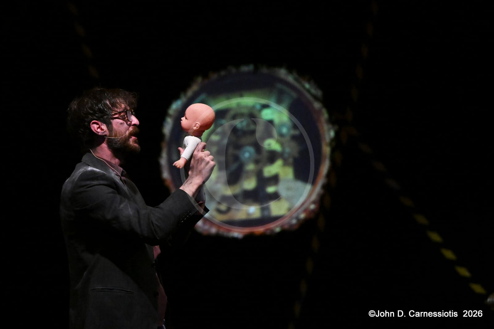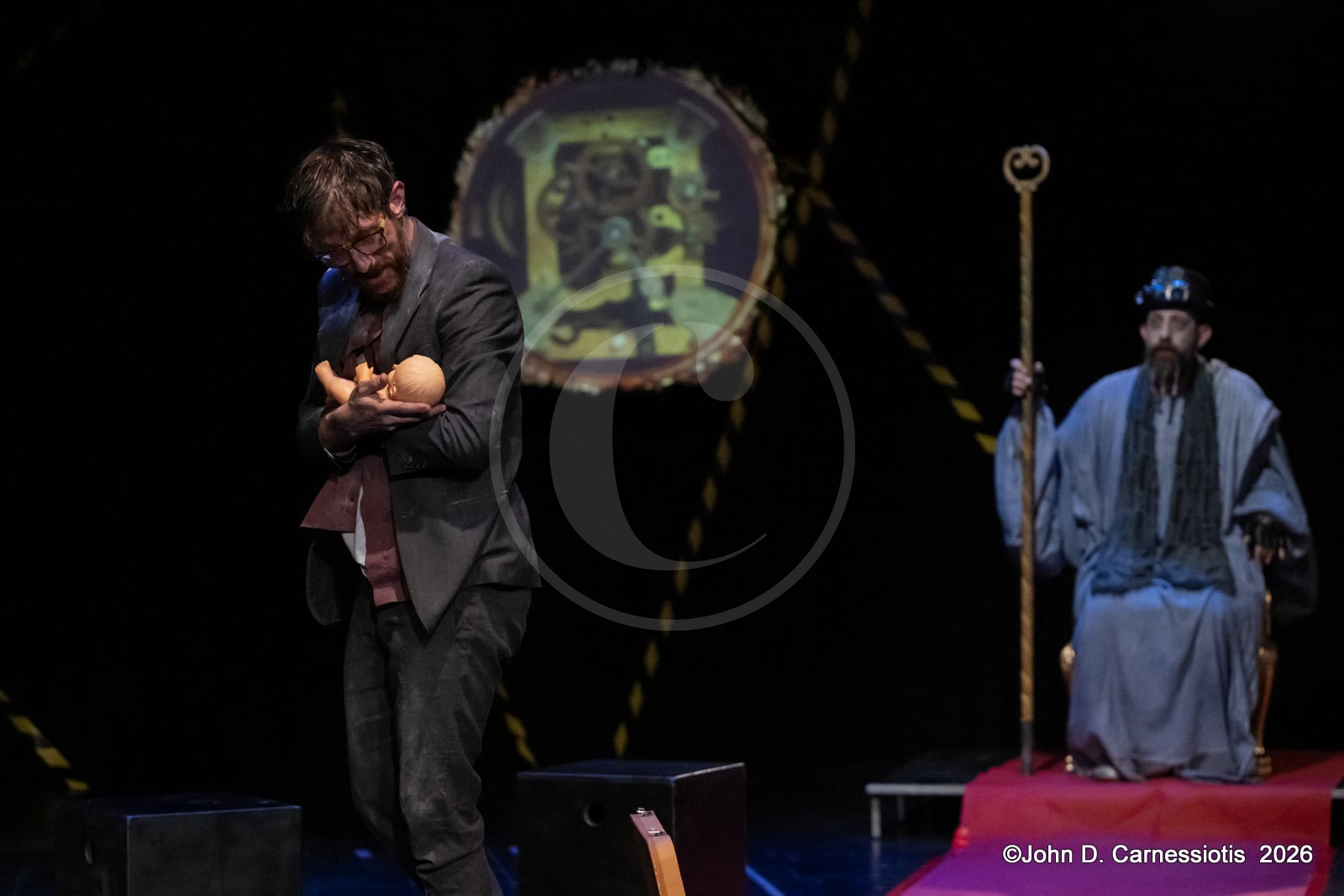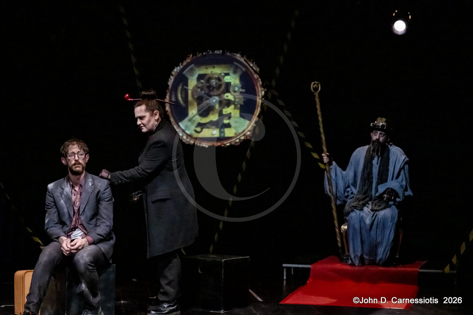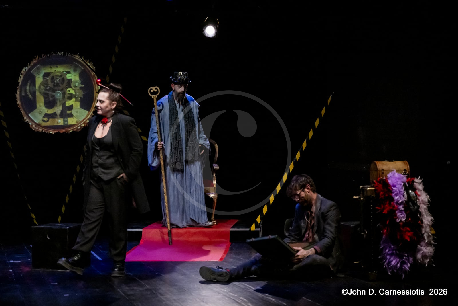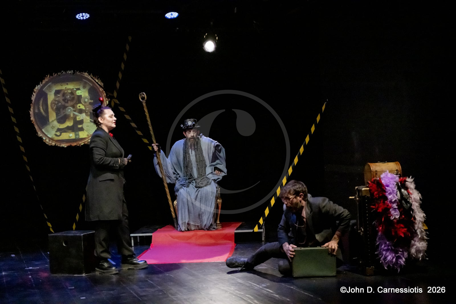 Η παράσταση παρουσιάζεται στο Θέατρο Ελέρ – Ελένη Ερήμου έως τις 17 Μαΐου 2026, με την υποστήριξη και υπό την αιγίδα του Υπουργείου Πολιτισμού, σε σκηνοθεσία Δημήτρη Κομνηνού. Στο κέντρο της παράστασης η Λυδία Φωτοπούλου, που εμφανίζεται κινηματογραφημένη σε ρόλο εικονικής (virtual) αφηγήτριας λειτουργεί ως ο άξονας που συνδέει τις διαφορετικές στιγμές της αφήγησης. Επί σκηνής, τρεις ηθοποιοί -Φοίβος Παπακώστας, Μαρία Λατσίνου, Γιάννης Τσαμαντάκης- και τέσσερις μουσικοί -Σωκράτης Γανιάρης (κρουστά), Κώστας Μπορμπόλης (μπάσο), Κώστας Στάικος (πνευστά), Γιώργος Χατζής (πιάνο-πλήκτρα)- δημιουργούν έναν ζωντανό οργανισμό όπου ο λόγος, η μουσική και η σκηνική δράση συνυπάρχουν οργανικά. Η μουσική εκτελείται ζωντανά και αποτελεί ενεργό μέρος της δραματουργίας, ενώ οι ερμηνευτές μετακινούνται ανάμεσα σε μορφές και στιγμές μιας κοινής ανθρώπινης εμπειρίας.