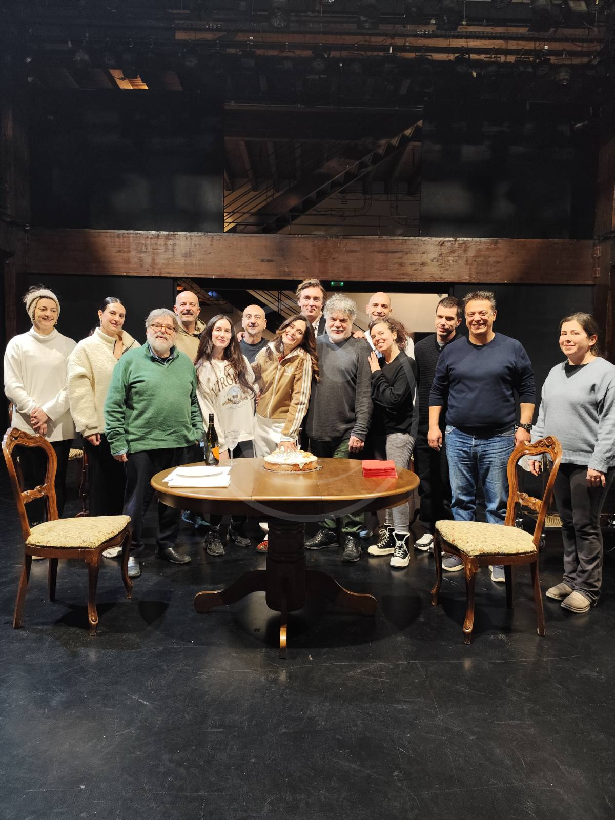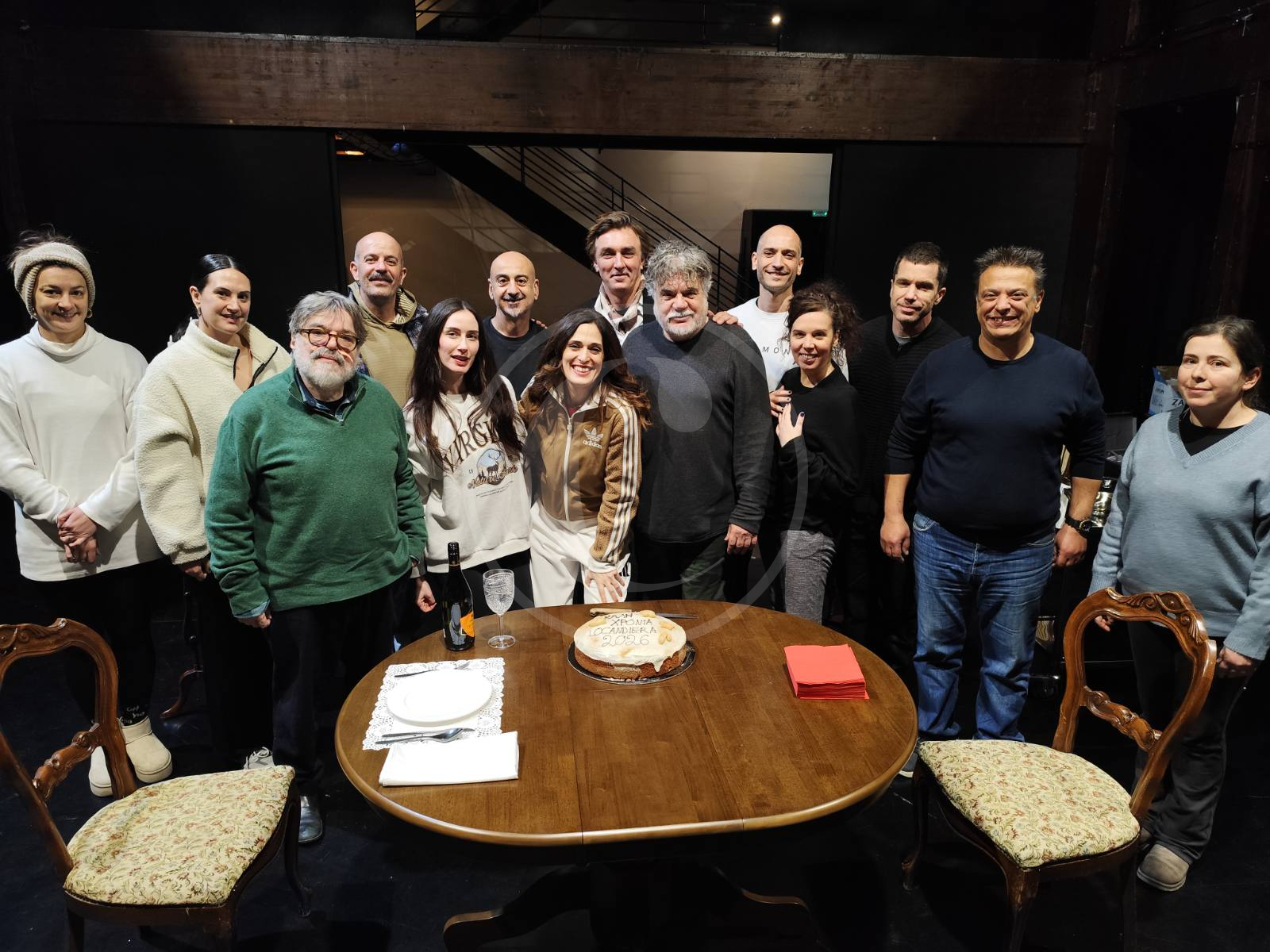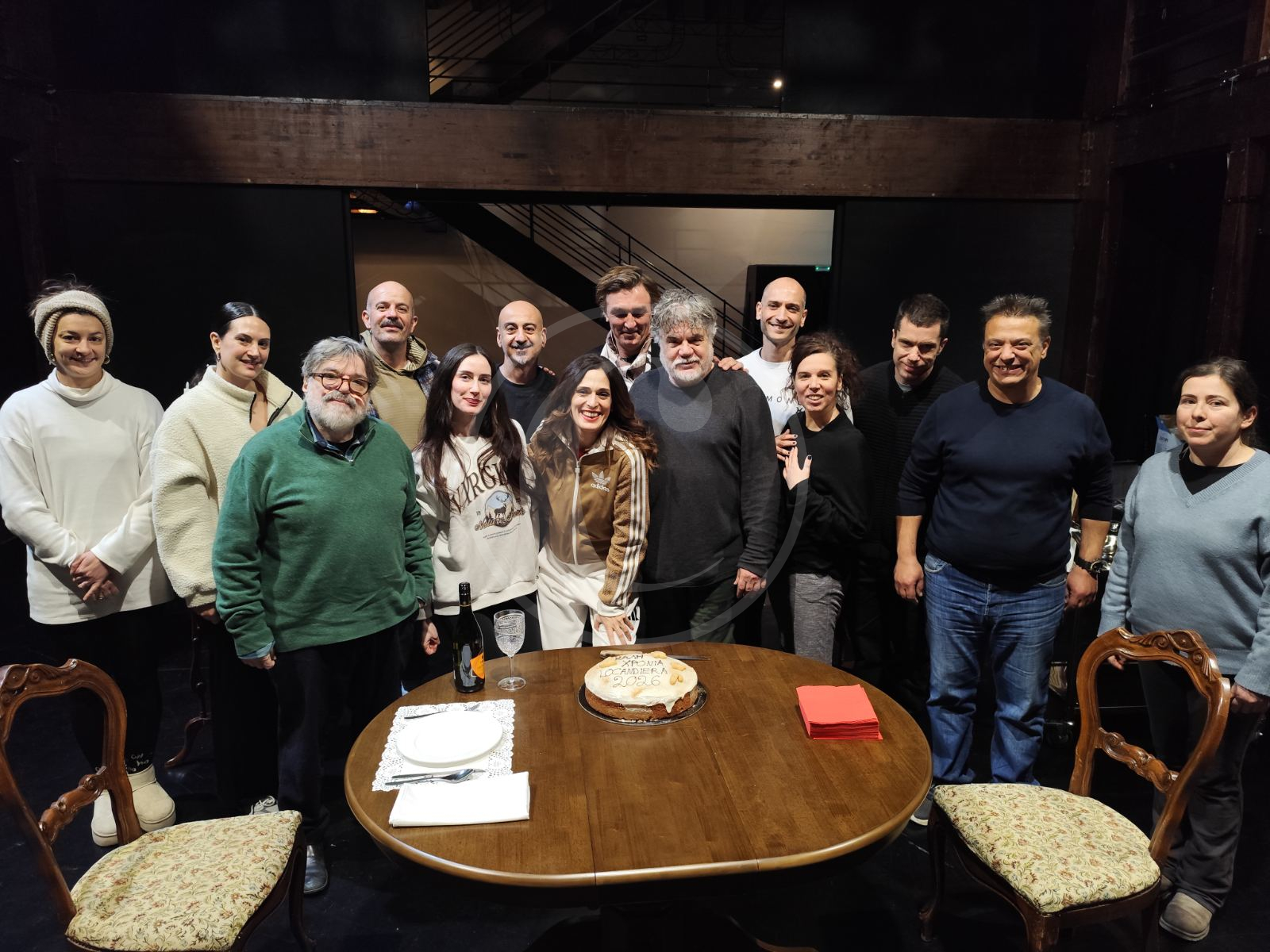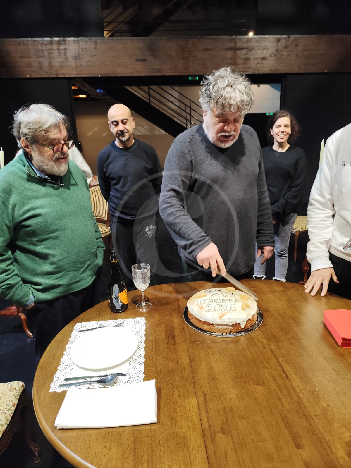 Ο θίασος, ο σκηνοθέτης Γιάννης Κακλέας, ο συνθέτης Δημήτρης Παπαδημητρίου, ο παραγωγός Κωνσταντίνος Σαγιάς, συντελεστές της παράστασης και συνεργάτες του Θεάτρου Τέχνης, ανέβηκαν στη σκηνή και έκοψαν την πίτα. Το φλουρί βρήκε ο παραγωγός Κωνσταντίνος Σαγιάς. Και του χρόνου!