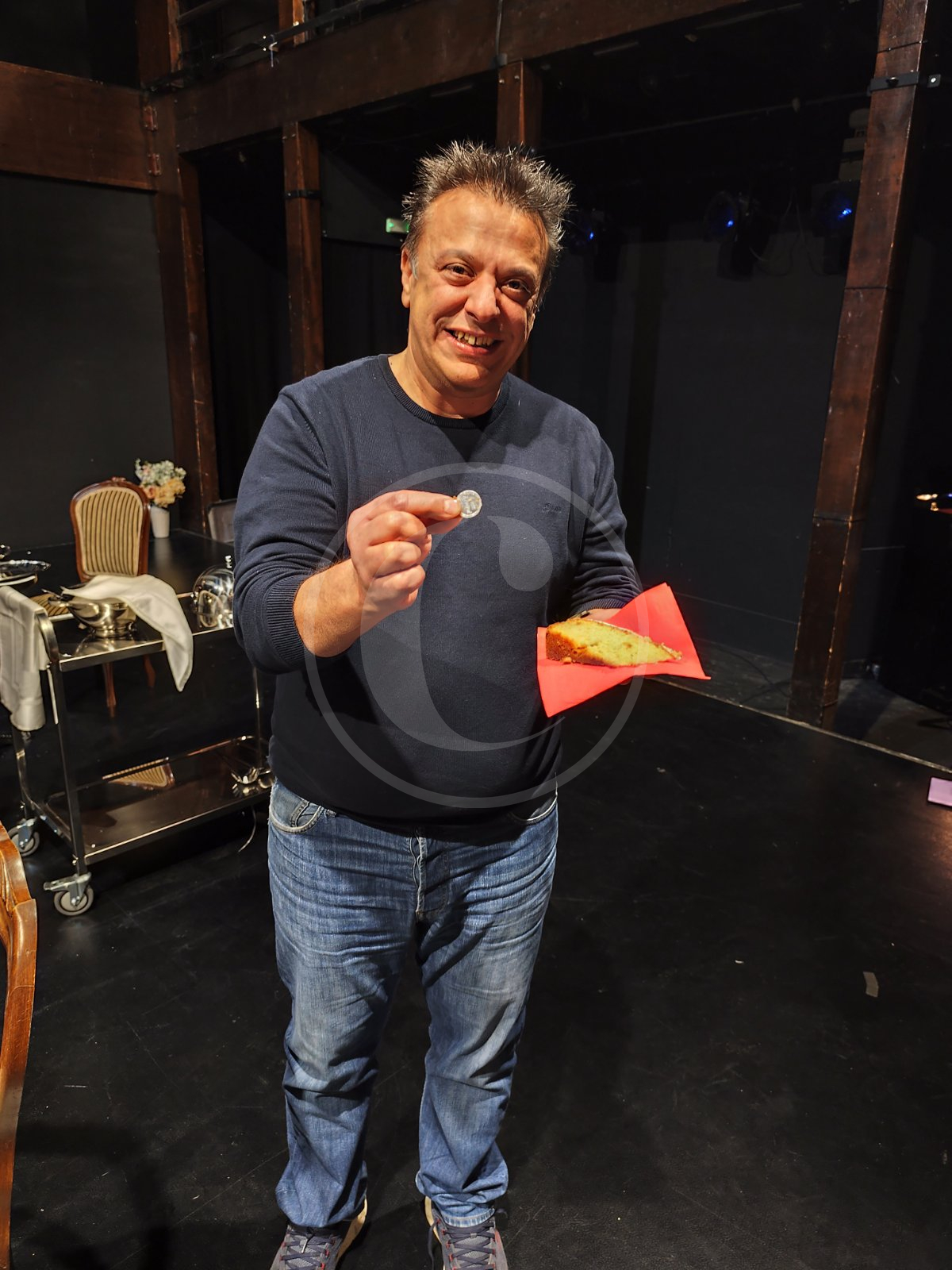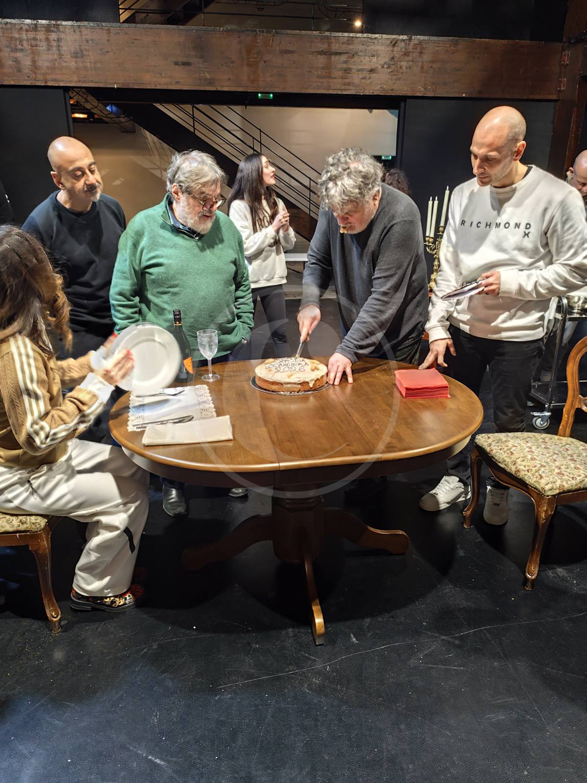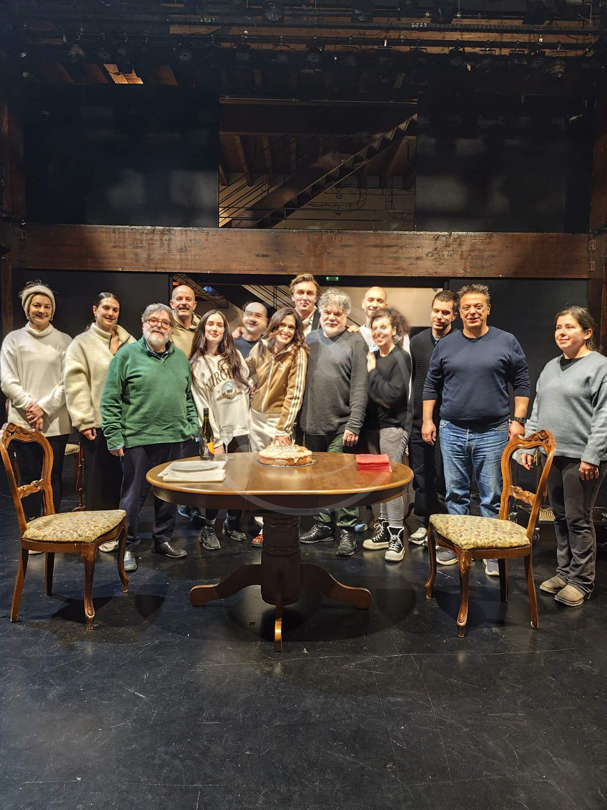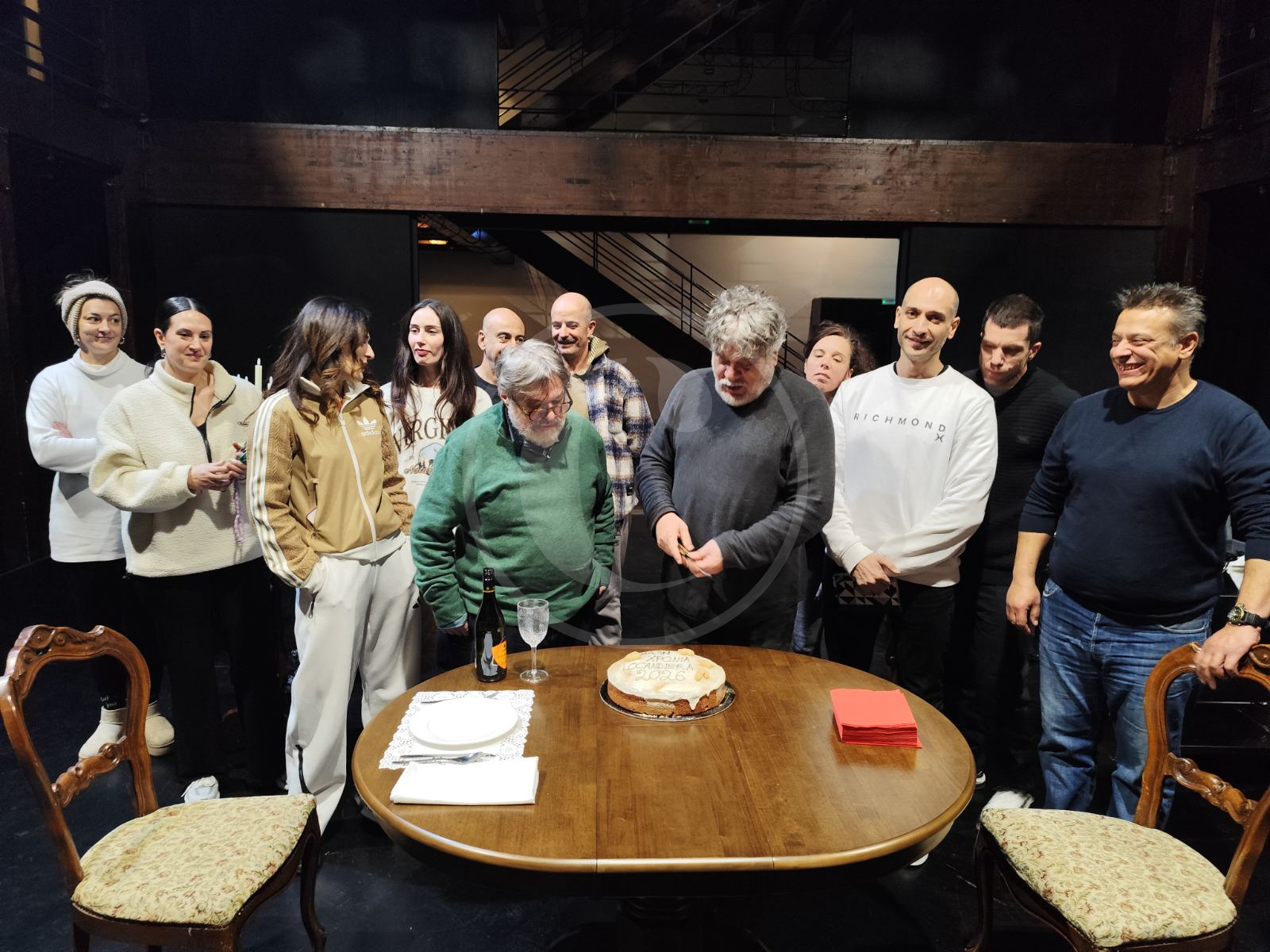 Ο θίασος, ο σκηνοθέτης Γιάννης Κακλέας, ο συνθέτης Δημήτρης Παπαδημητρίου, ο παραγωγός Κωνσταντίνος Σαγιάς, συντελεστές της παράστασης και συνεργάτες του Θεάτρου Τέχνης, ανέβηκαν στη σκηνή και έκοψαν την πίτα. Το φλουρί βρήκε ο παραγωγός Κωνσταντίνος Σαγιάς. Και του χρόνου!