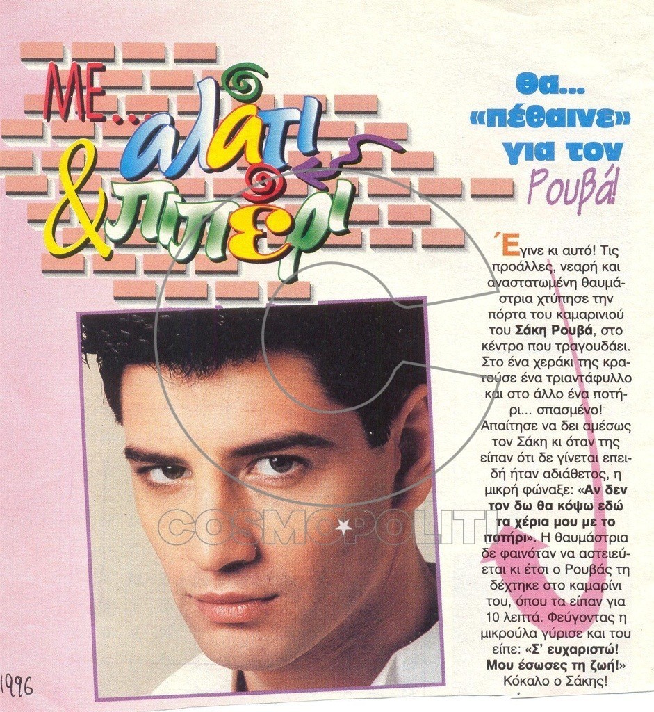 ...Γεννήθηκα στα μεγάλα κινηματογραφικά στούντιο και μεγάλωσα σε θεατρικές σκηνές και στα τηλεοπτικά πλατό. Από μικρός έκανα παρέα με όλες τις προσωπικότητες του πολιτισμού μας. Μαζί με τους δικούς μου ανθρώπους, με στηρίζουν συνεχώς, κυρίως με το έργο τους. Ωραία ιστορία, έτσι; Κρίμα που δεν είναι αληθινή! Πάντα μου άρεσε αυτή η εκδοχή. Χρειάζεται ένας μύθος να συντηρεί την πραγματικότητα. Οι δικοί μου μύθοι είναι έγχρωμοι, σινεμασκόπ και εξώφυλλο. Και συνεχίζουν να ζουν στο cosmopoliti…