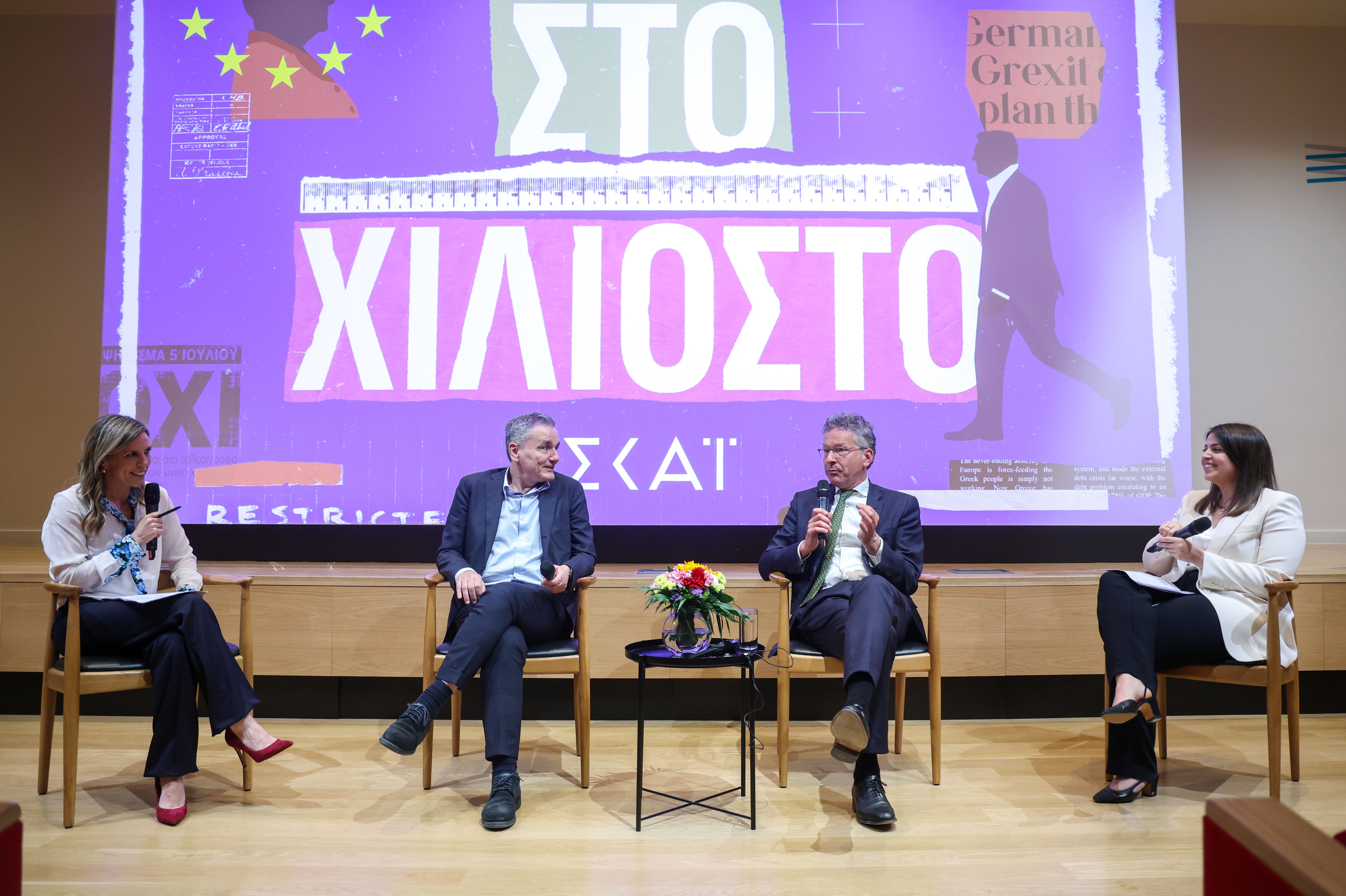 Μετά την προβολή του επεισοδίου, ακολούθησε μια εποικοδομητική συζήτηση, όπου οι συμμετέχοντες στο ντοκιμαντέρ, Jeroen Dijsselbloem και Ευκλείδης Τσακαλώτος, απάντησαν σε επιπλέον ερωτήσεις των Ελένη Βαρβιτσιώτη και Βικτώριας Δενδρινού για την εμπειρία τους από τη διάρκεια των διαπραγματεύσεων και της κρίσης, ενώ το προσωπικό του σχόλιο κατέθεσε και ο Thomas Wieser.