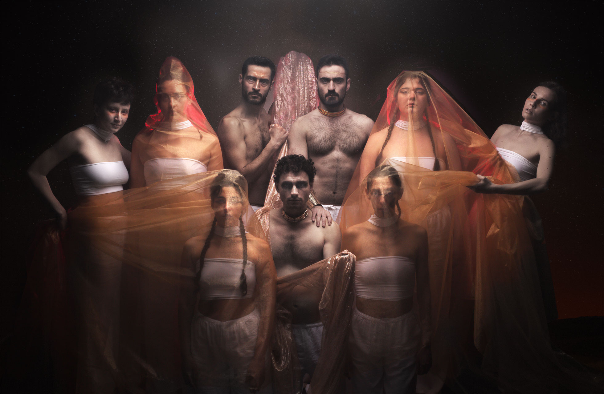 Επί σκηνής: Ελίνα Αντωνίου, Νεφέλη Γκίκογλου, Δημήτρης Κρίκος, Αριάδνη Κώστα, Γεωργία Ποντσουκτσή, Θάνος Πουμάκης, Θανάσης Τζιντζιός, Χριστίνα Χαλκιά, Ελένη Χριστοφή
