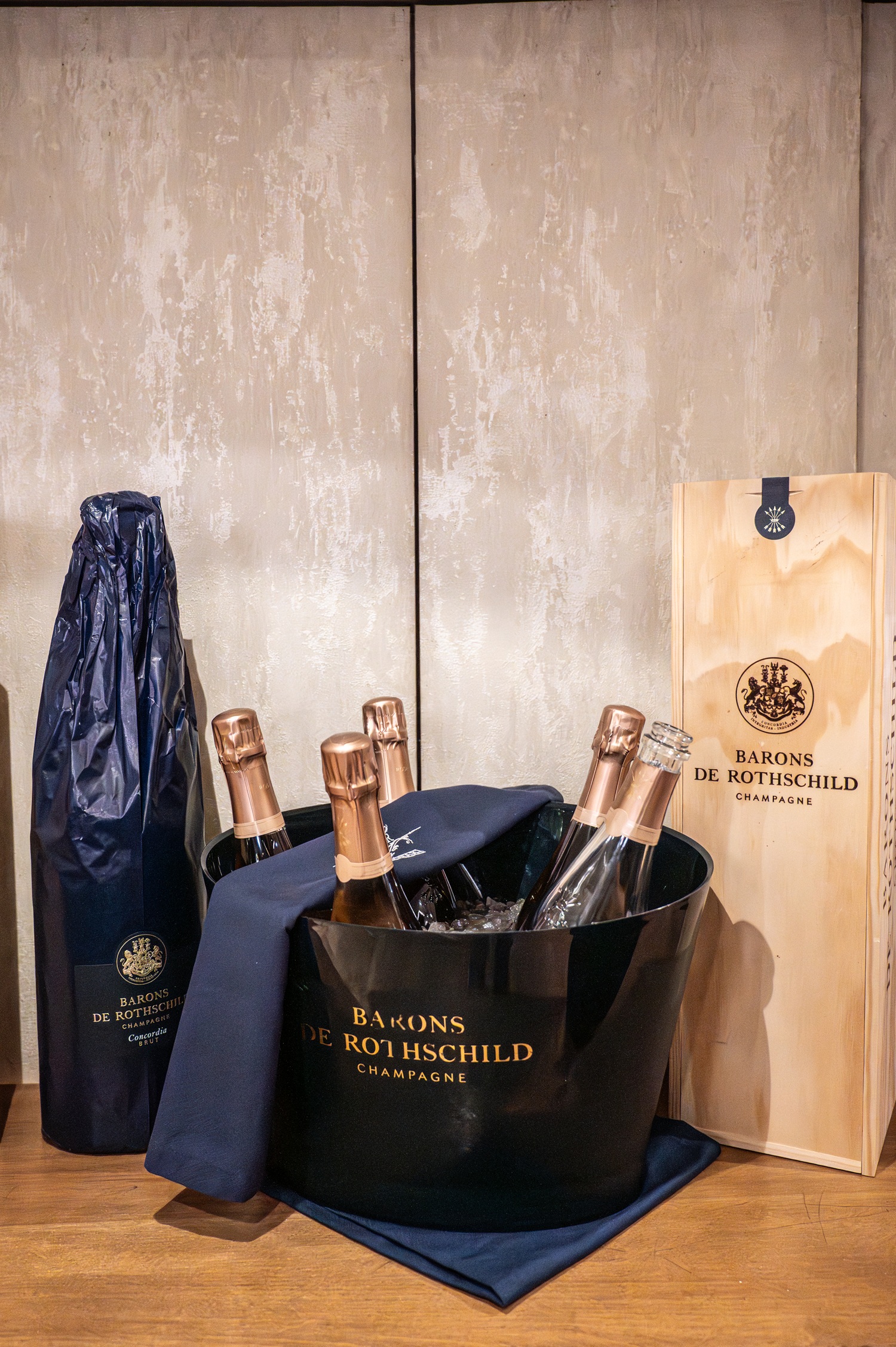Έτσι, το 2005 γεννήθηκε η Champagne Barons de Rothschild, μια δημιουργία που εκφράζει την κοινή φιλοσοφία της οικογένειας γύρω από την τέχνη της οινοποίησης, την κομψότητα και τη γαλλική art de vivre. Στον πυρήνα της ταυτότητάς της βρίσκονται τρεις θεμελιώδεις αρχές: η Concordia, που εκφράζει την ενότητα και την αρμονία της οικογένειας γύρω από ένα κοινό όραμα· η Integritas, που αποτυπώνει την καθαρότητα και την αυθεντική προσέγγιση στην παραγωγή ενός Grand Vin de Champagne με κυρίαρχο χαρακτήρα Chardonnay· και η Industria, που αντιπροσωπεύει τη μεθοδική εργασία, την υπομονή και την απόλυτη προσοχή στη λεπτομέρεια.