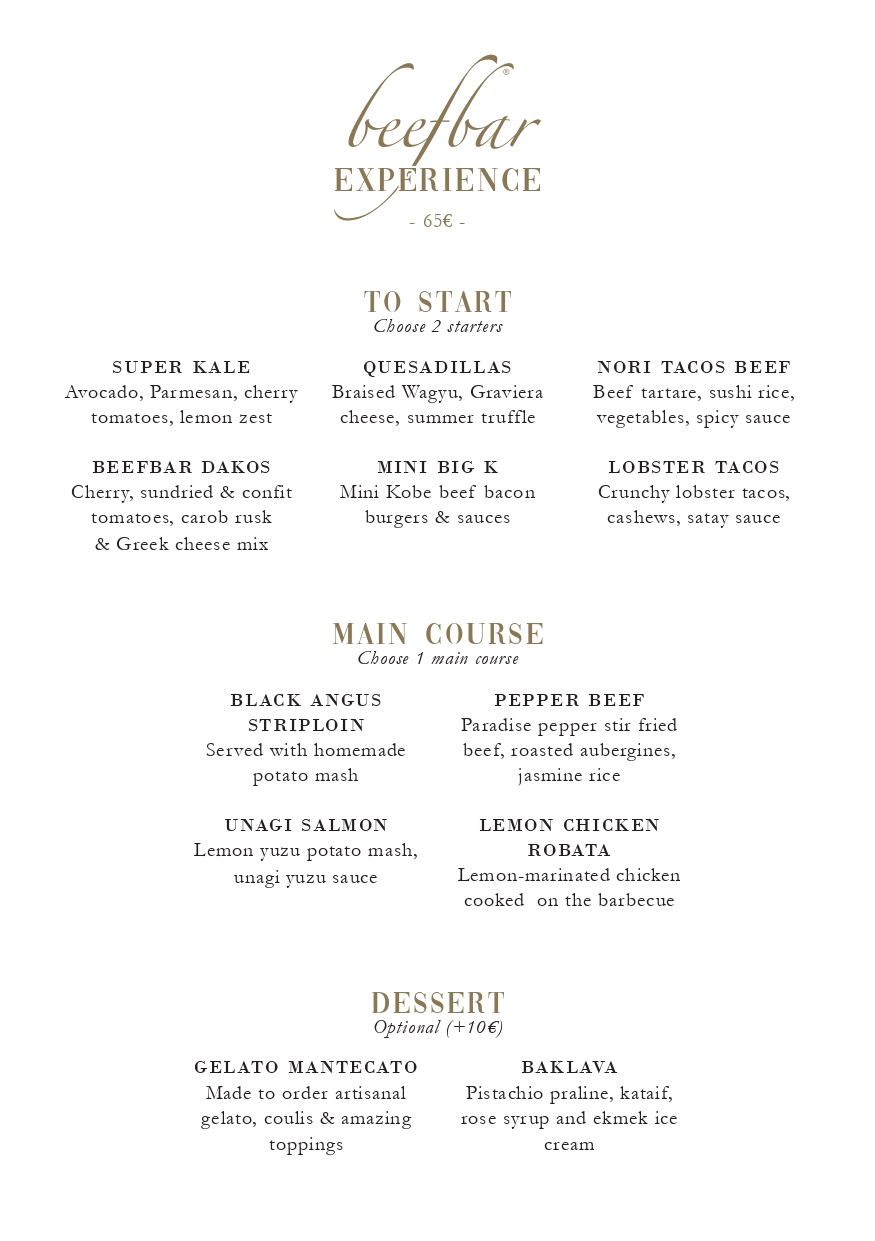 Beefbar Experience Menu