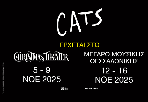 Το πολυβραβευμένο και παγκοσμίως αγαπημένο μιούζικαλ του Andrew Lloyd Webber CATS, επιστρέφει στην Αθήνα και συγκεκριμένα στο Christmas Theater, για περιορισμένο αριθμό παραστάσεων. Η σπουδαία παραγωγή θα επισκεφθεί για πρώτη φόρα και τη Θεσσαλονίκη στο Μέγαρο Μουσικής, δίνοντας την ευκαιρία στο κοινό της Βόρειας Ελλάδας να ζήσει μία απίστευτη καλλιτεχνική εμπειρία.
