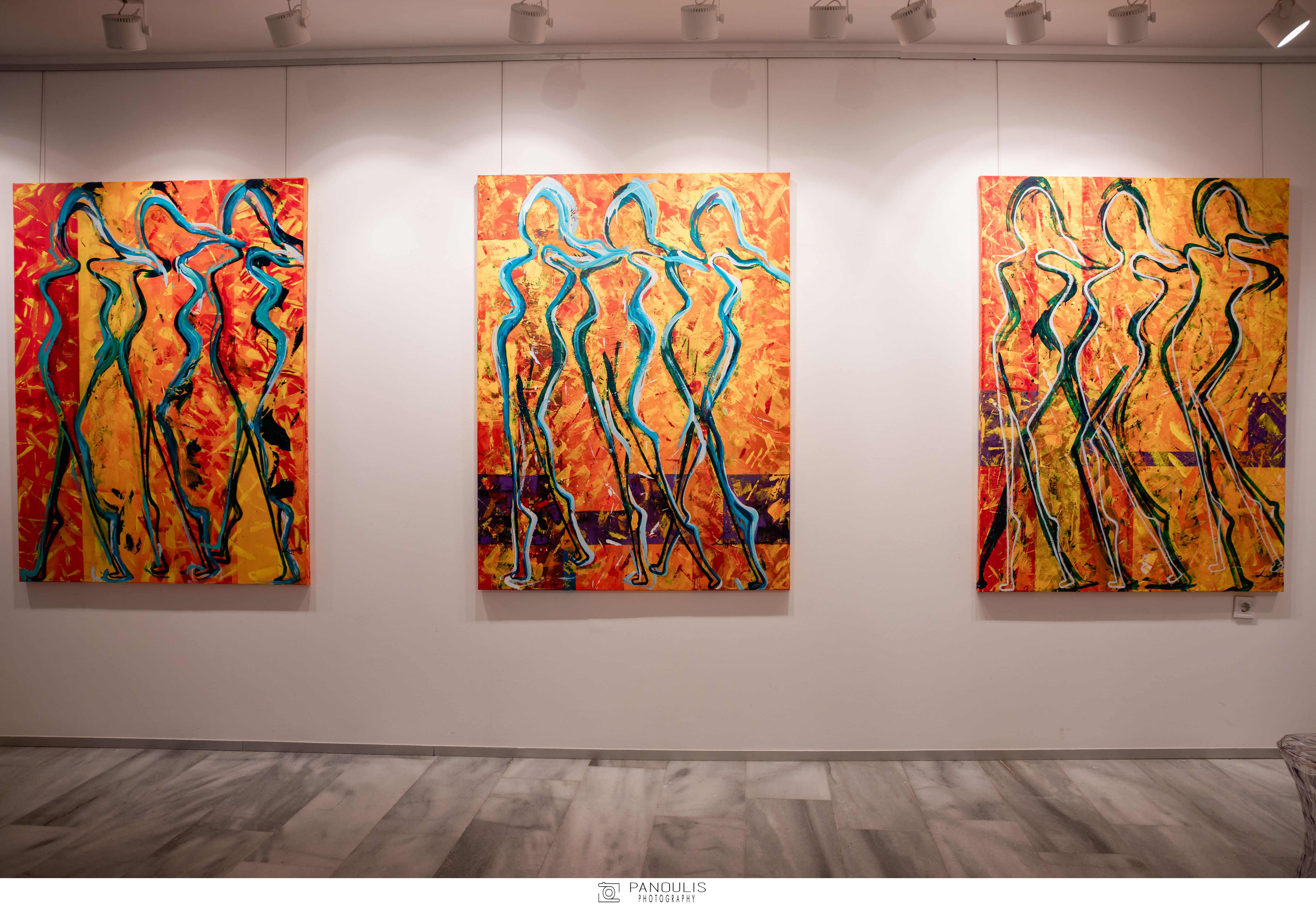 Η έκθεση συγκροτεί μια αφηρημένη εξπρεσιονιστική ενότητα με έντονα ανθρωπομορφικά στοιχεία, δυναμικές πινελιές και ισχυρές χρωματικές αντιθέσεις. Μέσα από την αφαίρεση, την κίνηση και τη συλλογική εμπειρία, τα έργα διερευνούν την ανθρώπινη παρουσία ως διαρκή ροή ενέργειας.