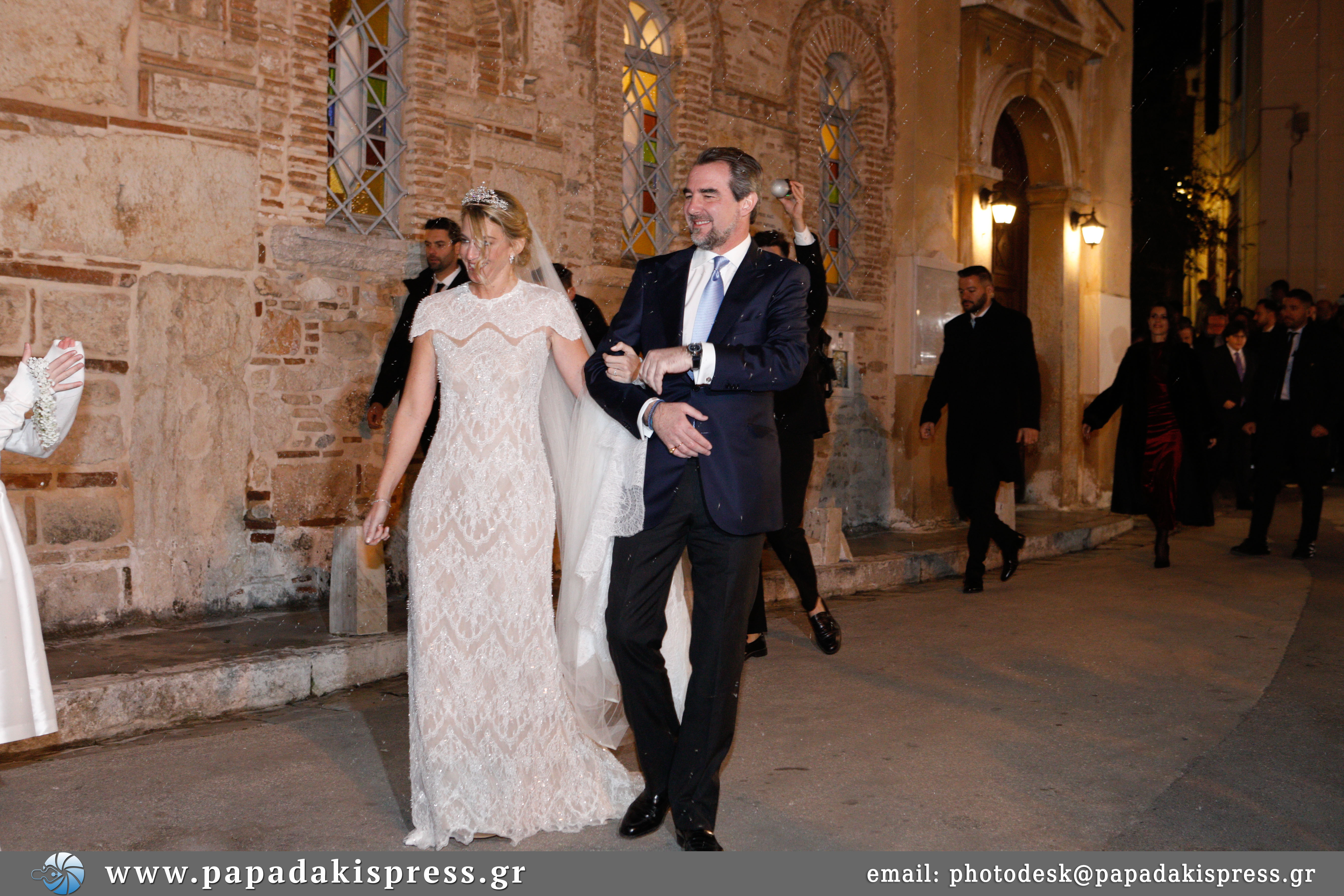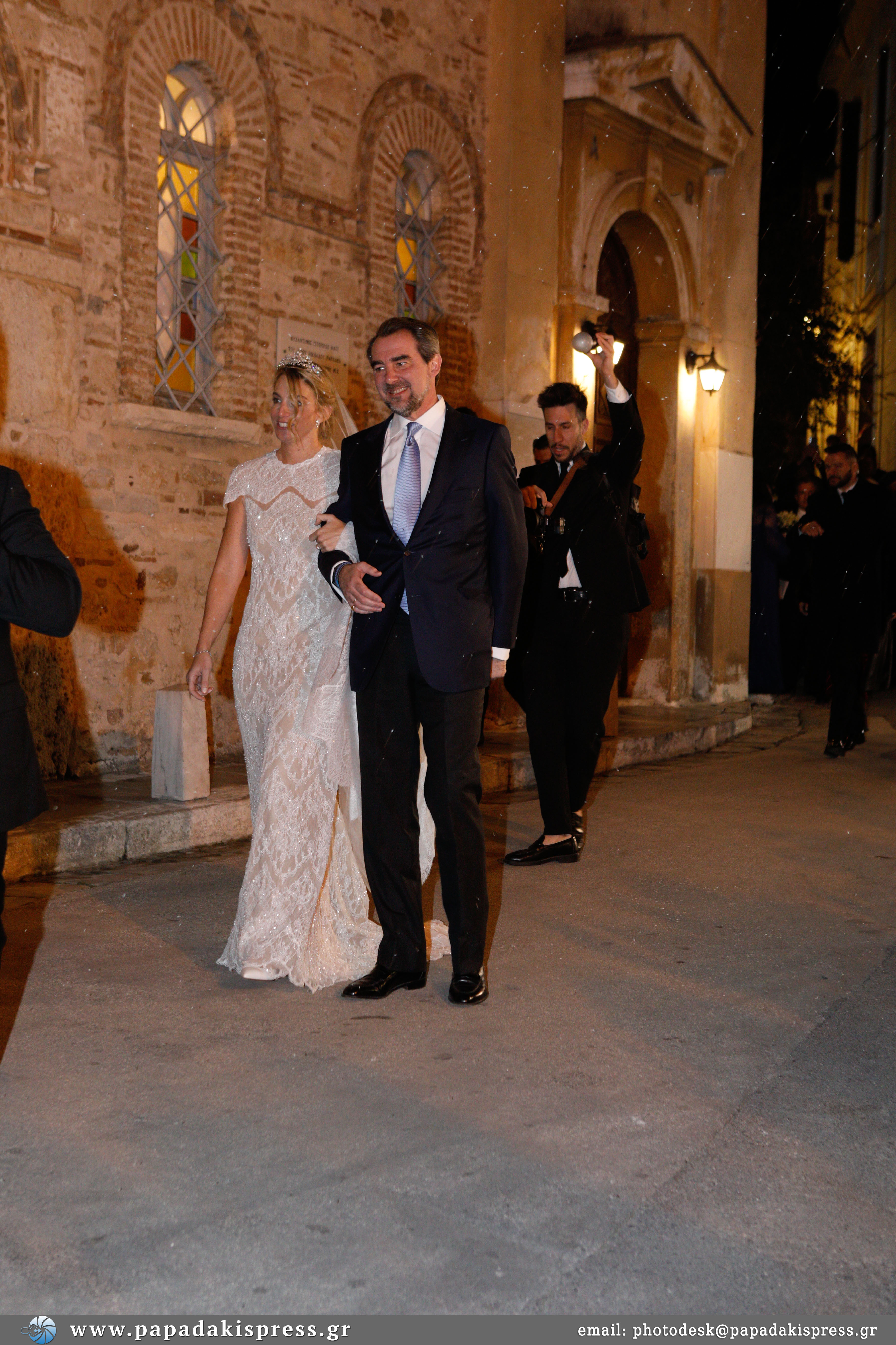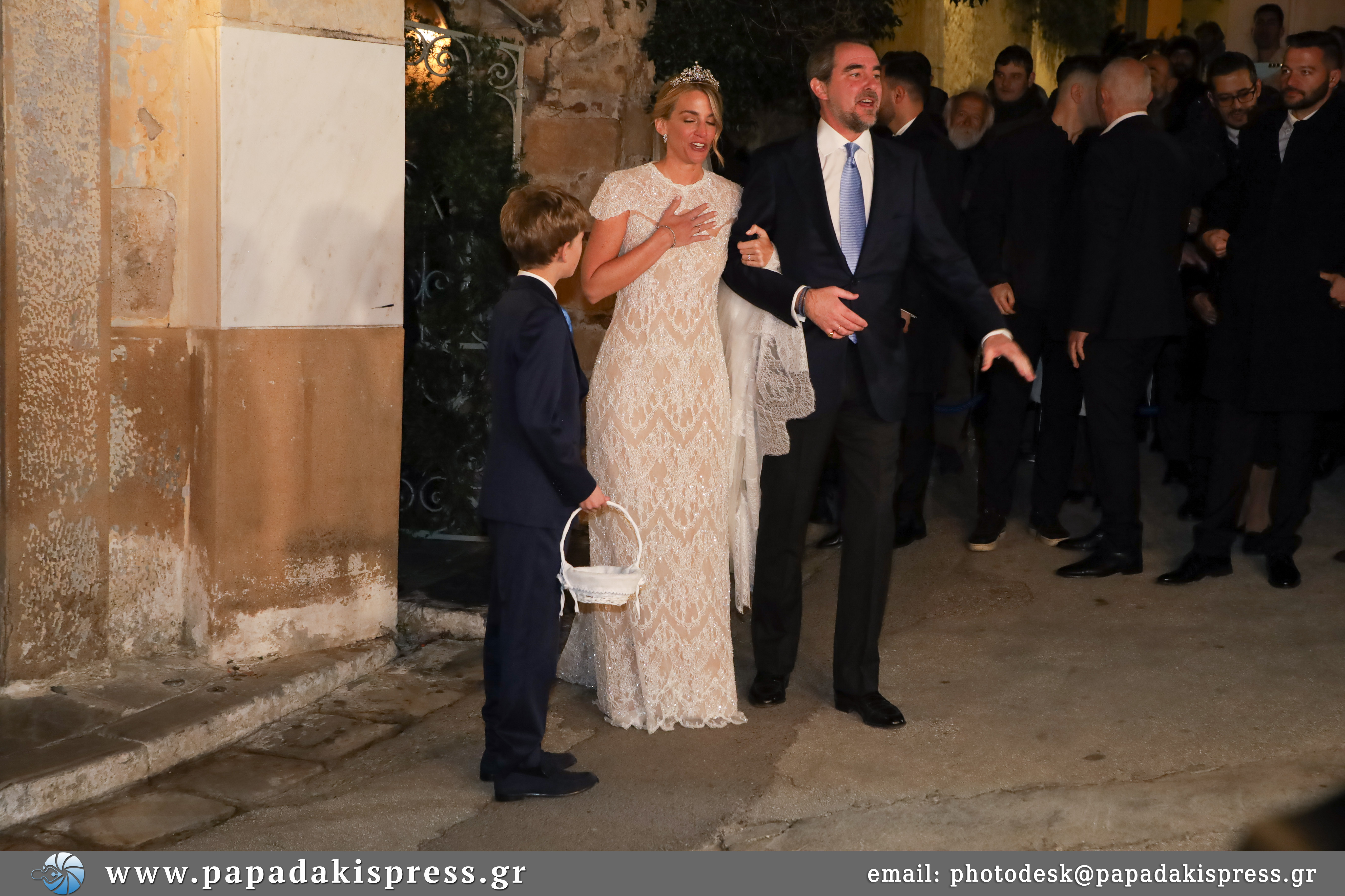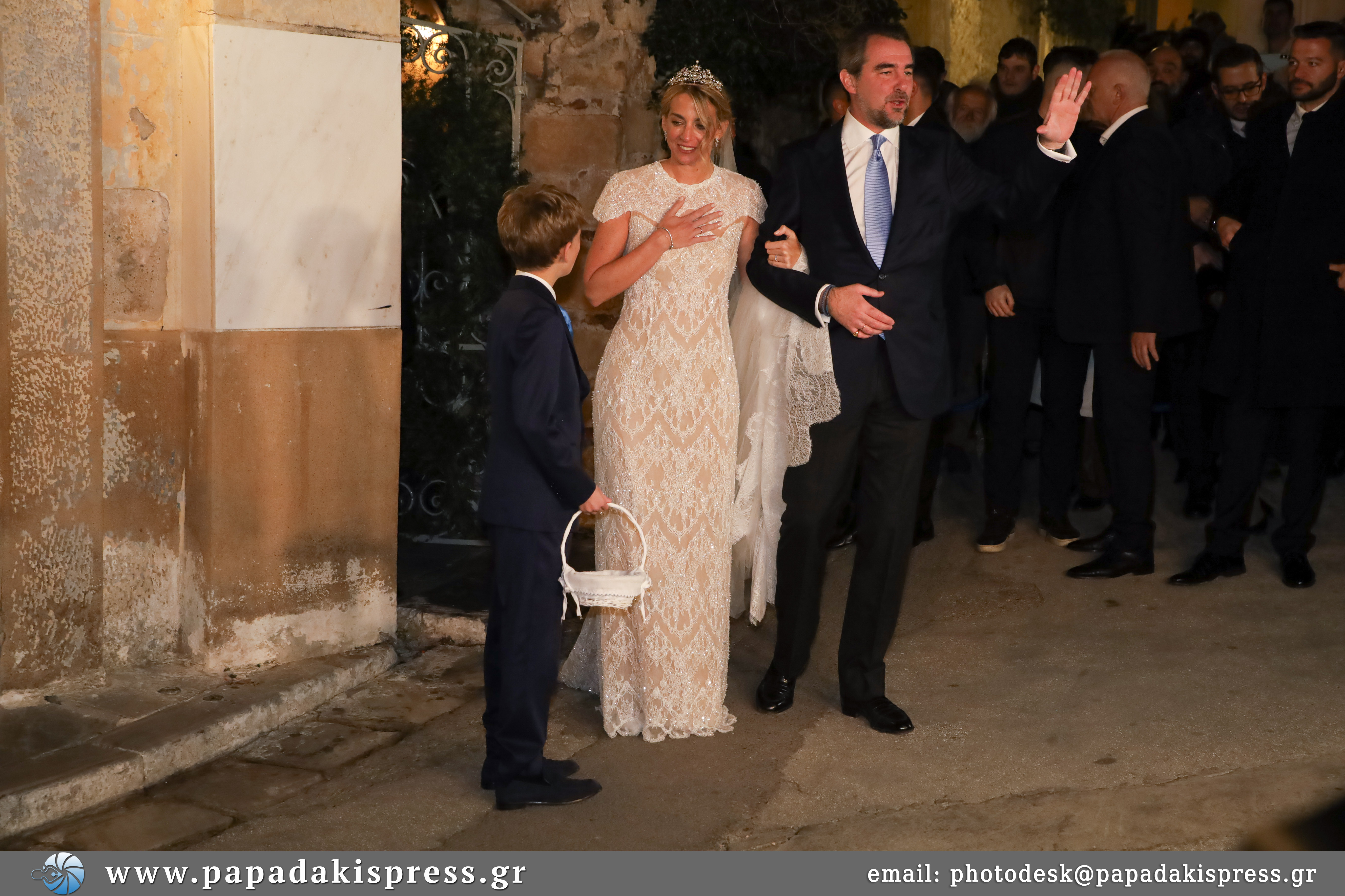 Στις 19:05 ολοκληρώθηκε η γαμήλια τελετή και περίπου 15 λεπτά αργότερα το νεόνυμφο ζεύγος βγήκε από την εκκλησία και χαιρέτησαν τον κόσμο που περίμενε έξω από τον Ιερό Ναό και τους φώναζαν: “Να ζήσετε”. Οι νεόνυμφοι και οι καλεσμένοι αμέσως μετά την τελετή πήγαν στη γαμήλια δεξίωση.
