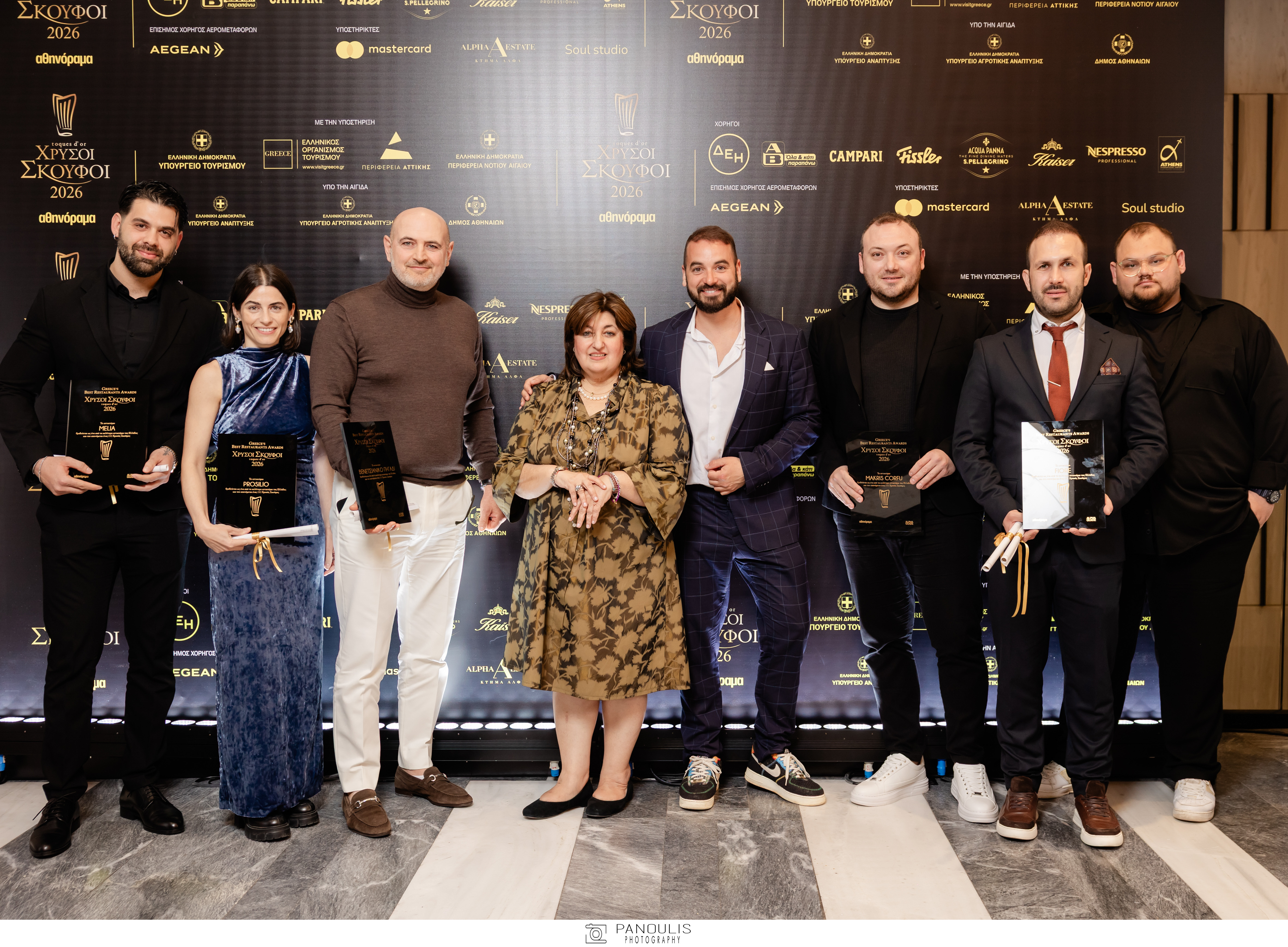 Καλύτερο εστιατόριο για το 2026 και με βαθμολογία 17/20 και δύο Χρυσούς Σκούφους αναδείχθηκε το εστιατόριο «Etrusco» στην Κέρκυρα. Το βραβείο παρέλαβε ο Έκτορας Μποτρίνι από την Υπουργό Τουρισμού Όλγα Κεφαλογιάννη