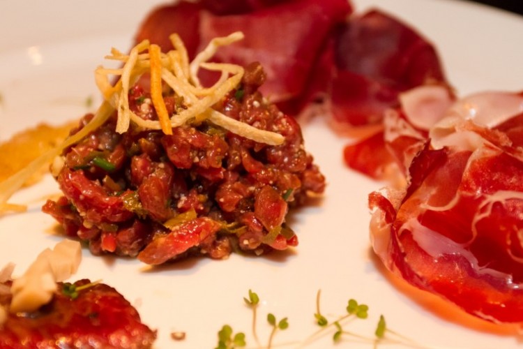 Δεν ήταν όμως μόνο η παρέα. Η ατμόσφαιρα ζεστάθηκε με το «καλησπέρα σας». Τα υπέροχα Allones Extra Edicion Limitada 2011 φρόντισαν για αυτό, συνεπικουρούμενα από το γλυκόπιοτο και φρουτώδες Hennessy Fine & tonic. Στην συνέχεια, ο Άρης Βεζενές έδωσε τον καλύτερο εαυτό του και εντυπωσίασε τους πάντες με μια διαδοχή απίθανων γεύσεων που συνόδευσαν στην εντέλεια τα ερυθρά κρασιά από το Κτήμα Άλφα. Το κομψό Pinot Noir ανέδειξε μια επιλογή από αλλαντικά Extremadura, το απίθανο ταρτάρ από wagyu και το συγκλονιστικό σασίμι βοδινού με τριμένο φουαγκρά. Το πλούσιο και βελούδινο Κτήμα Άλφα στάθηκε άψογα δίπλα στην γευστική βόμβα που αποτελούν τα υπέροχα νιόκι με ραγού από ελληνικό, μαυροπόδαρο χοίρο, με τσορίζο και τυρί Valcassoto από το Πιεμόντε. Τέλος, το πληθωρικό και σύνθετο Tannat βρήκε τέλειο ταίρι στα βοδινά steaks σε μια ποικιλία από κοπές και προελεύσεις… ειδικά στο εκπληκτικό short rib από χιλιάνικο wagyu!