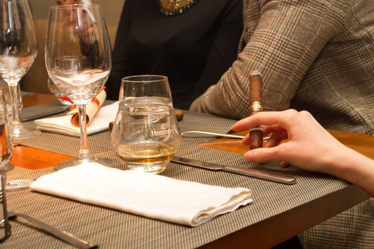 Το κλείσιμο της βραδιάς όμως ήταν και η κορύφωσή της! Ανάψαμε τα σπάνια Bolivar Petit Belicosos Edicion Limitada 2009, ένα από τα πιο πλούσια και σύνθετα πούρα που βγήκαν στα 13 χρόνια της σειράς αυτής. Πλάι του το ισχυρότερο και πιο πικάντικο από τα θαυμάσια κονιάκ της Hennessy, το εμβληματικό ΧΟ που απολαύσαμε στο ιδανικό ποτήρι για ένα τέτοιο κονιάκ (που μας προμήθευσε η εταιρεία ΕΓΕΜ ) και μαζί τους μια σοκολατένια βόμβα από σοκολάτα Amedei της Τοσκάνης. Όλα μαζί ένας μοναδικός συνδυασμός!