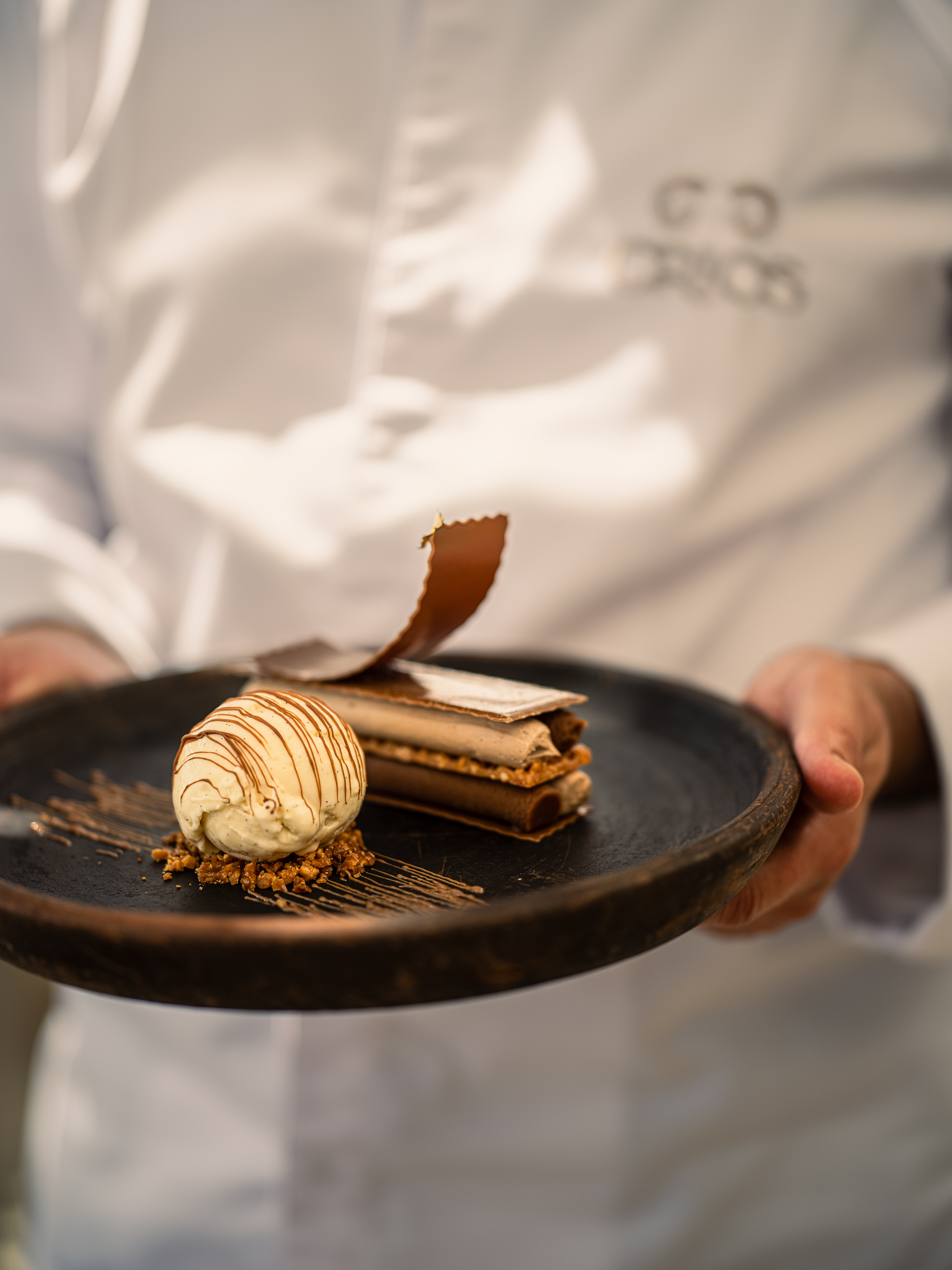 Στην καρδιά της εμπειρίας βρίσκεται η γαστρονομία. Οι διακεκριμένοι Executive Chef Ιπποκράτης Αναγνωστέλης και Executive Pastry Chef Δημήτρης Χρονόπουλος υπογράφουν ένα μενού που αναδεικνύει την αγνότητα και τη μοναδικότητα των Κυκλαδίτικων πρώτων υλών, με Head Chef του Crios τον Σπύρο Δήμητσα.