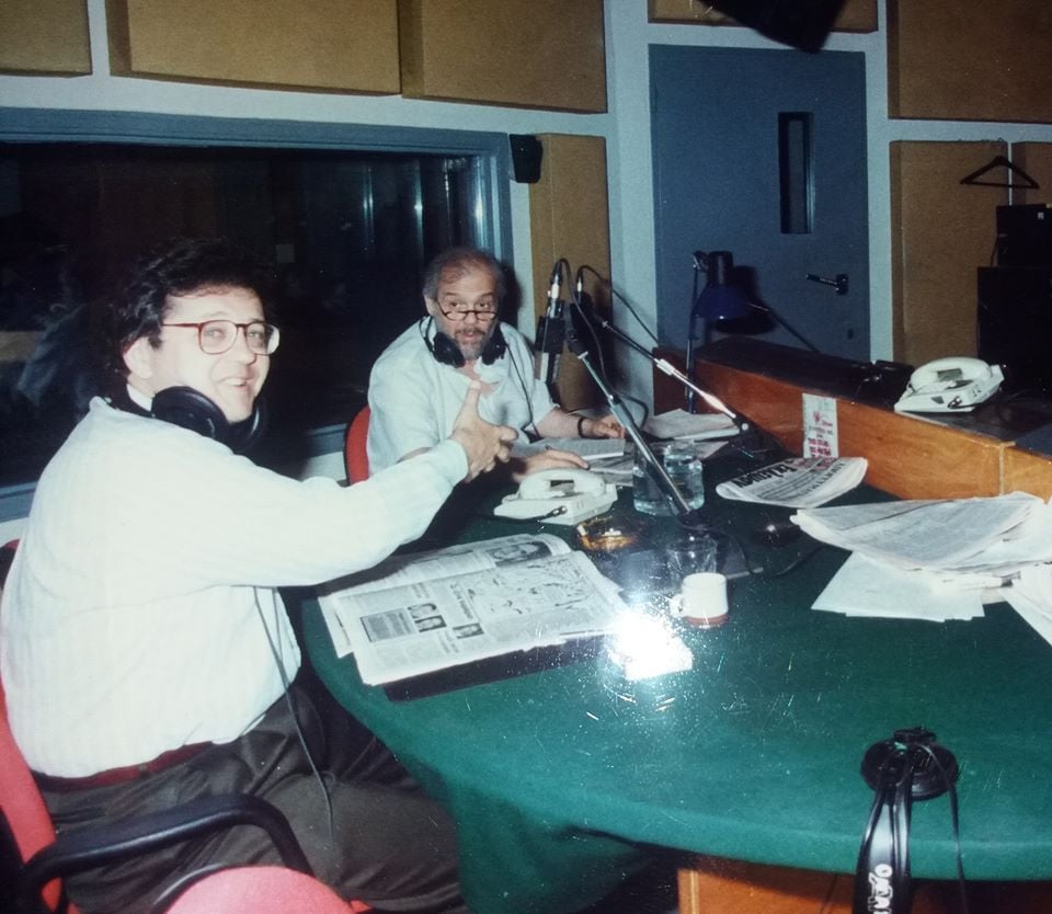 Πέρασα τα ομορφότερα και ουσιαστικότερα χρόνια της επαγγελματικής μου ζωής , πρωί, μέσα σε ένα ραδιοφωνικό στούντιο. Κυρίως στον 9.84, την Ελεύθερη Φωνή της Αθήνας. Αλλά και σε άλλα ραδιόφωνα. Έζησα επί δέκα χρόνια τη μαγεία της απόλυτης ελευθερίας έκφρασης. Ένα στιγμιότυπο, πρωινής εκπομπής στα τέλη της δεκαετίας του ’80: Με το Θάνο Οικονομόπουλο στο στούντιο της οδού Λιοσίων. Ένδοξες μέρες.