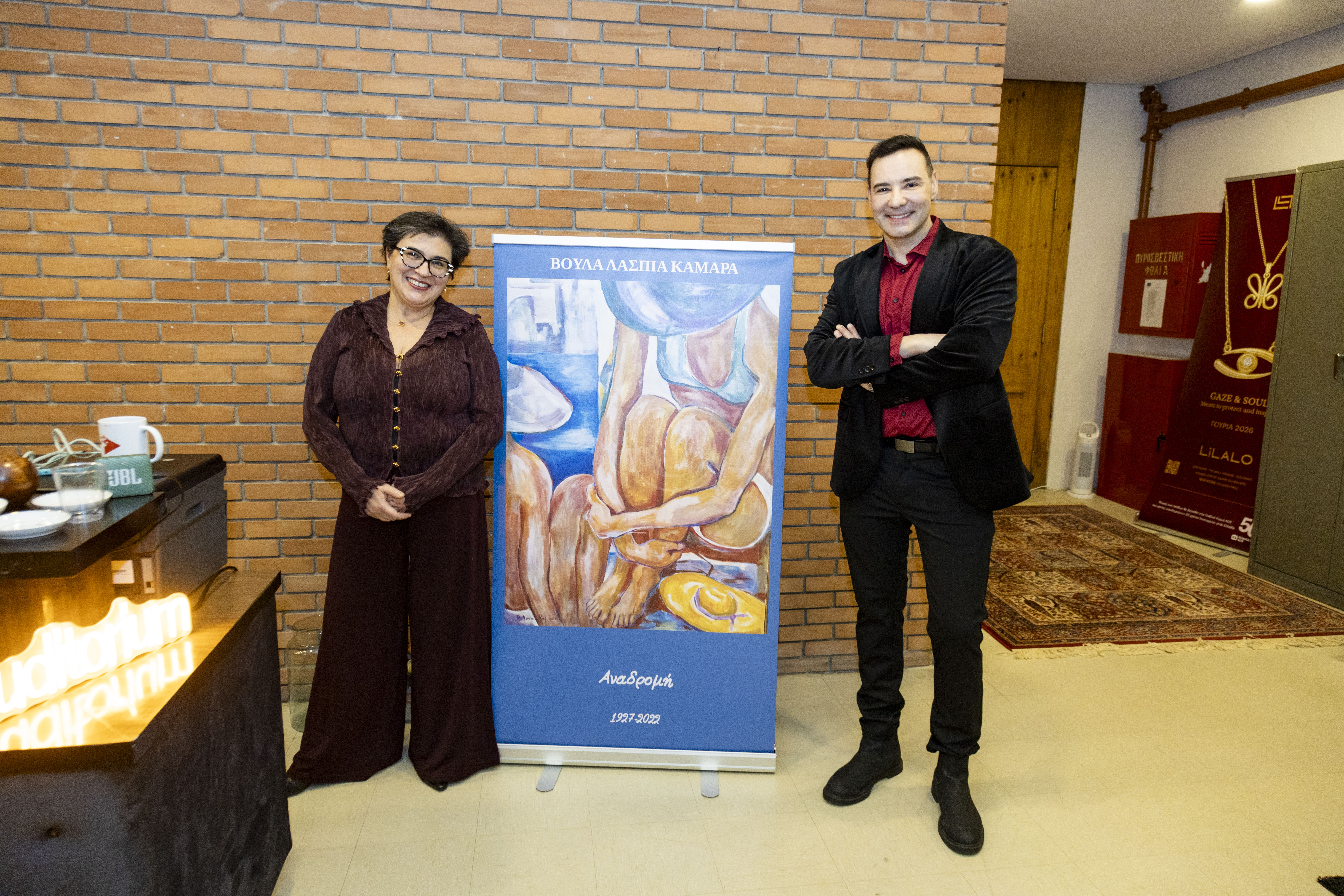 Ο Χώρος Τεχνών Auditorium και η εταιρεία πολιτιστικής διαχείρισης Time Heritage, εγκαινίασαν την έκθεση της σπουδαίας εικαστικού, με τη φροντίδα του ανιψιού της, ηθοποιού και σκηνοθέτη Γιάννη Λασπιά. Τη βραδιά προλόγισε ο ιστορικός τέχνης Σπύρος Μοσχονάς και η κόρη της ζωγράφου και διευθύντρια της Time Heritage Αφροδίτη Καμάρα. Πλήθος κόσμου των γραμμάτων και των τεχνών και εκπρόσωποι από τον καλλιτεχνικό, πολιτιστικό, εικαστικό και δημοσιογραφικό χώρο, τίμησαν με την παρουσία τους τη βραδιά των εγκαινίων και θαύμασαν τα έργα της Βούλας Λασπιά Καμάρα. Ανάμεσά τους οι: Λουίζα Αναστοπούλου, Νικήτας Δεσποτίδης, Μαριάννα Κατράκη, Ειρήνη Λιναρδάκη, Ισμήνη Παναγιωτίδου, Δέσποινα Λαμπαδά, Σεγιέντ Μοχάμαντ Ταγκί Σχαριάτ Παναχί, Μαρία Λεμπέση, Γιώργος Λασπιάς, Βασίλης Νάτσιος, Δημήτρης Μαύρος, Ανδρομάχη Μαρκοπούλου, Λίλη Τσεσμετζόγλου, Τάσος Κορκός, Δήμητρα Λημνιού, Μαρλέν Σαΐτη, Γεωργία Παντέλη, Στέλλα Μπούρου, Αθηνά Χατζηαθανασίου, Παναγιώτα Χαϊδεμένου, Άντα Κουγιά, Άγγελος Λαζαρίδης, Κατερίνα Καλλινικίδη, Γιώργος Λυκουργιώτης με την μητέρα του, Έλλη Ρούσσου, Τάσος Παπανδρέου, Βάσω Αυγεροπούλου, Άνδρη Θεοδότου, Γεωργία Αυγεροπούλου, Χρυσάνθη Αυγεροπούλου, Βερόνικα Αργέντζη, Αγγελική Καρυστινού, Ηλέκτρα Τσακαλία, Θωμάς Βουλγάρης κ.α. H βραδιά ολοκληρώθηκε με εξαιρετικό ημίγλυκο κόκκινο κρασί από το Οινοποιείο Σπύρος Φράγκος και απoλαυστικά εδέσματα από την Aquarella
