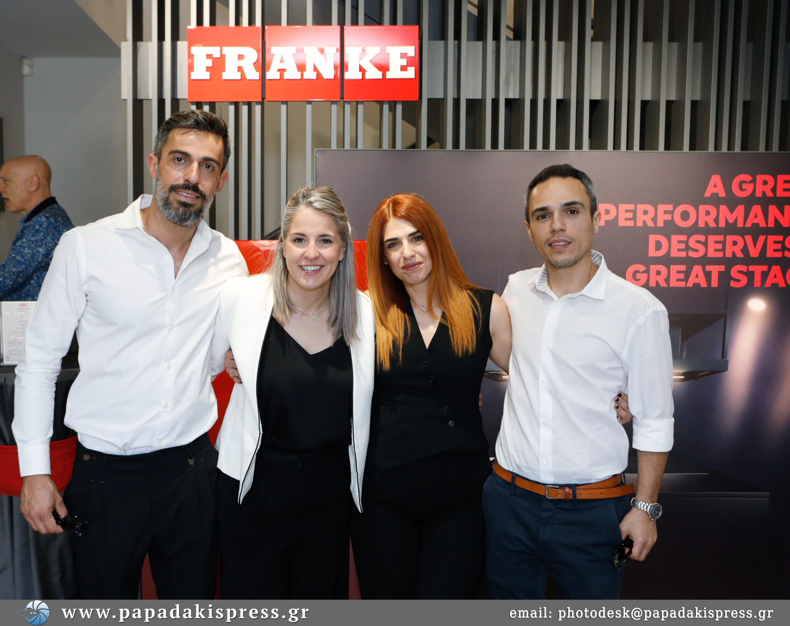Dino Giubillei ( VP Marketing & Digital Franke Home Solutions ) Barbara Borra ( CEO Franke Home Solutions ) Αριάδνη Σωτηροπούλου ( Managing Director Franke Hellas ) Andrzej Tuleja ( Cluster Head SEEMENA, Franke Home Solutions ) Αντωνία Ζωγοπούλου ( Customer Service Franke Hellas ) Ιωάννα Μερκούρη ( Finance Manager Franke ) Ελένη Μαργιέτη ( Product Manager Franke Hellas ) Δήμητρα Μπακολιά ( Marketing Manager, Franke Hellas ) Κωνσταντίνος Λέκκος ( Key Account Manager Franke ) Άρης Καλαιτζής ( Sales Manager Franke Hellas ) Σουμαλάς Ιώαννης ( Sales Representative, Franke Hellas )