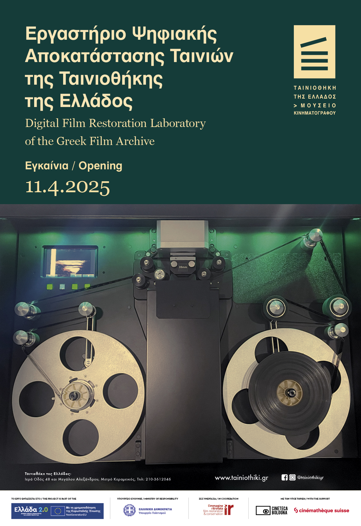 Η Ταινιοθήκη της Ελλάδος εγκαινίασε το νέο υπερσύγχρονο Εργαστήριο Ψηφιακής Αποκατάστασης Ταινιών στις εγκαταστάσεις της (Ιερά Οδός, 48, μετρό Κεραμεικός).