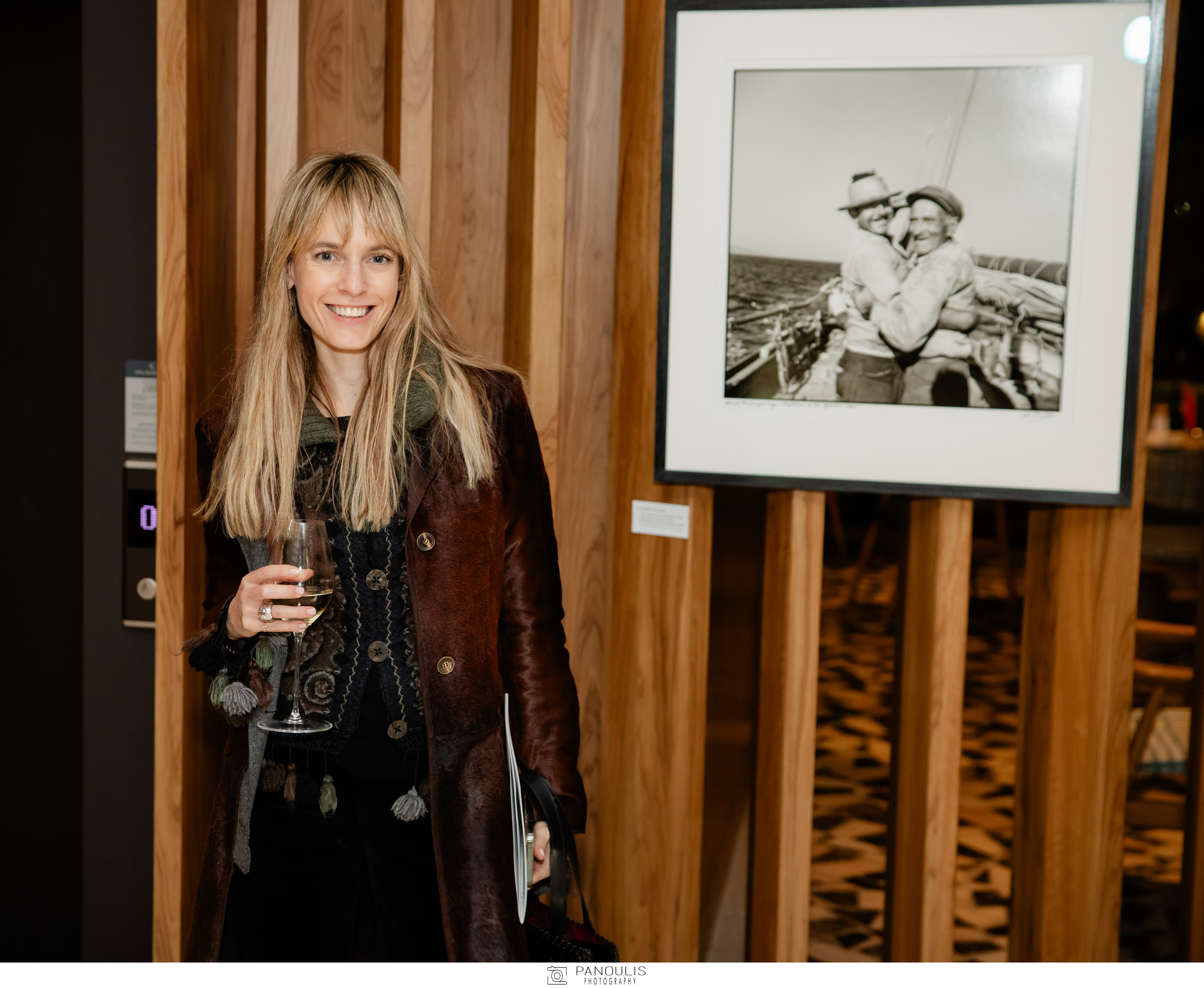 Η Φωτεινή Βλαχάκη μπροστά στην αρχειακή ασπρόμαυρη φωτογραφία του Robert McCabe