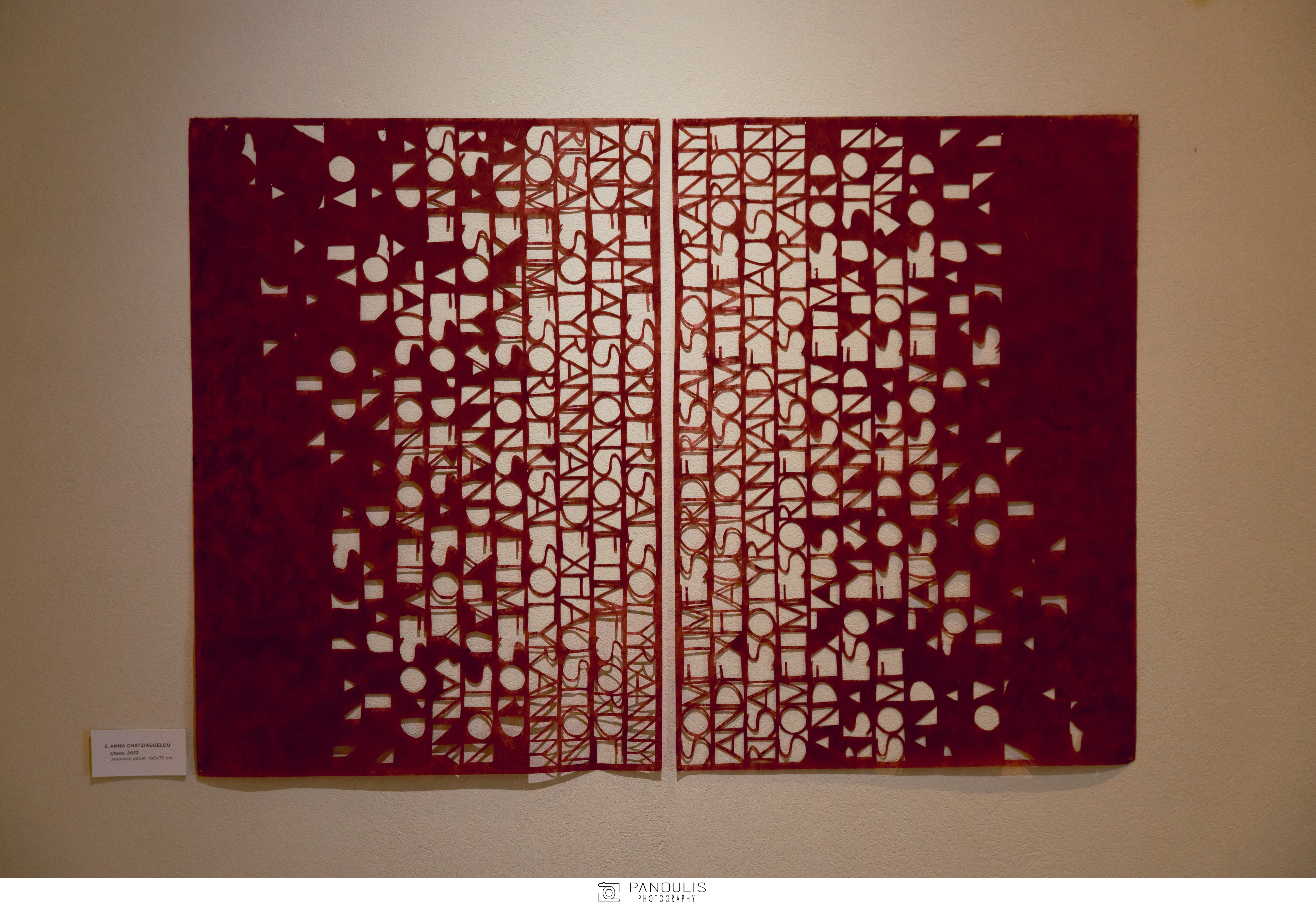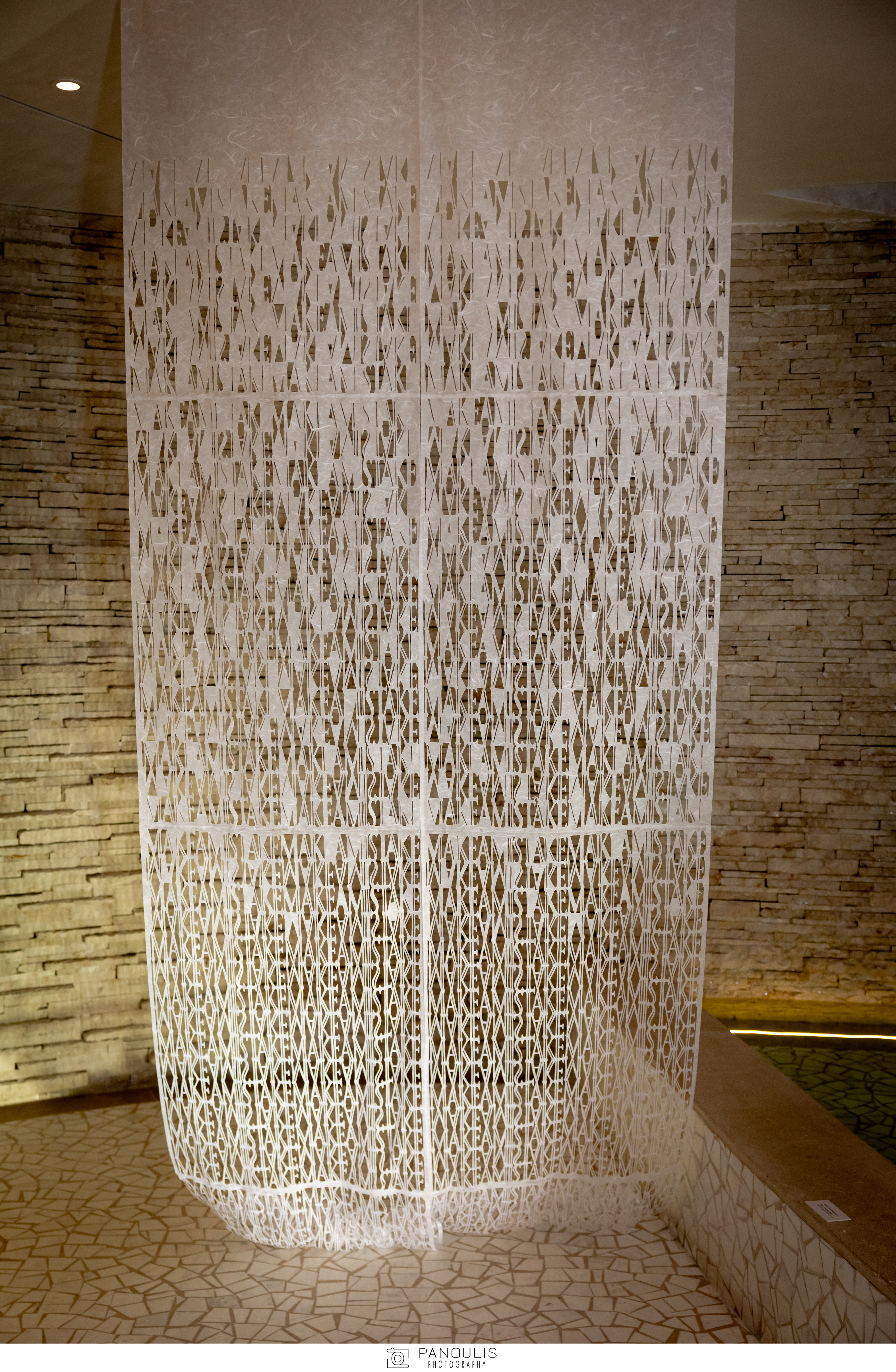 Η laser-cut υφασμάτινη εγκατάσταση με υφαντό κείμενο της Άννας Χατζηαγγέλου