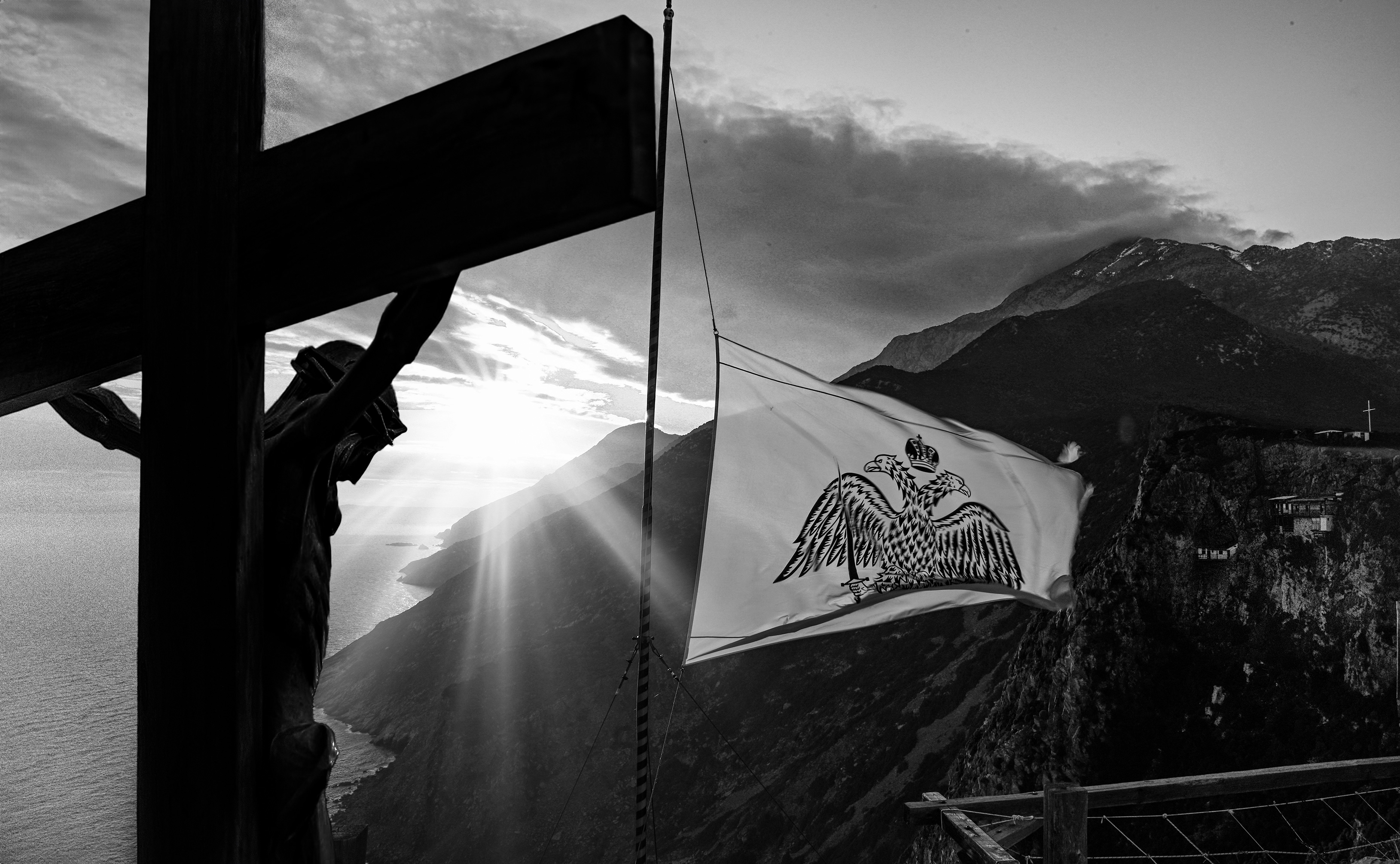 Η έκθεση παρουσιάζει ένα δίχρονο φωτογραφικό οδοιπορικό στο Άγιον Όρος, το οποίο παραχωρήθηκε δωρεά από τον φωτογράφο στην Ιερά Μεγίστη Μονή Βατοπαιδίου, ως πολιτιστική παρακαταθήκη για τις επόμενες γενεές. Μέσα από ασπρόμαυρες εικόνες υψηλής αισθητικής, αποτυπώνονται η καθημερινότητα, τα διακονήματα, η λειτουργική ζωή και το πνευματικό βάθος της μοναστικής πολιτείας.