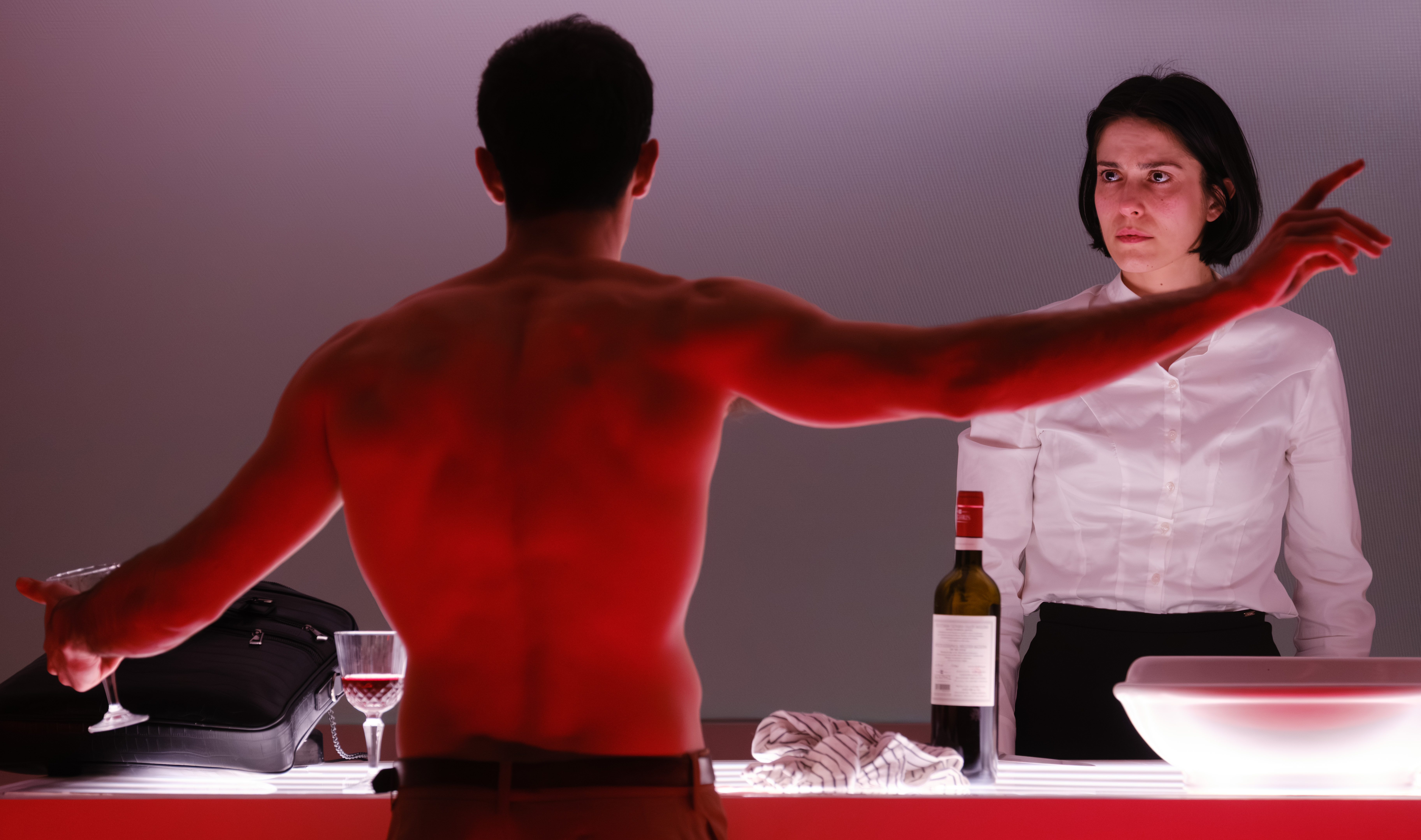 Ένα διαφορετικό κείμενο , γεμάτο εικόνες, συναισθήματα και τρέλα, επιβλητικός λευκός φωτισμός, ενώ η σκηνική λιτότητα με κεκλιμένη την οροφή, φανερώνει γνώση, σκέψη, ευαισθησία και τη σκηνοθετική επένδυση στη δυναμικότητα του θεατρικού λόγου και στις ερμηνευτικές δυνατότητες των ηθοποιών.