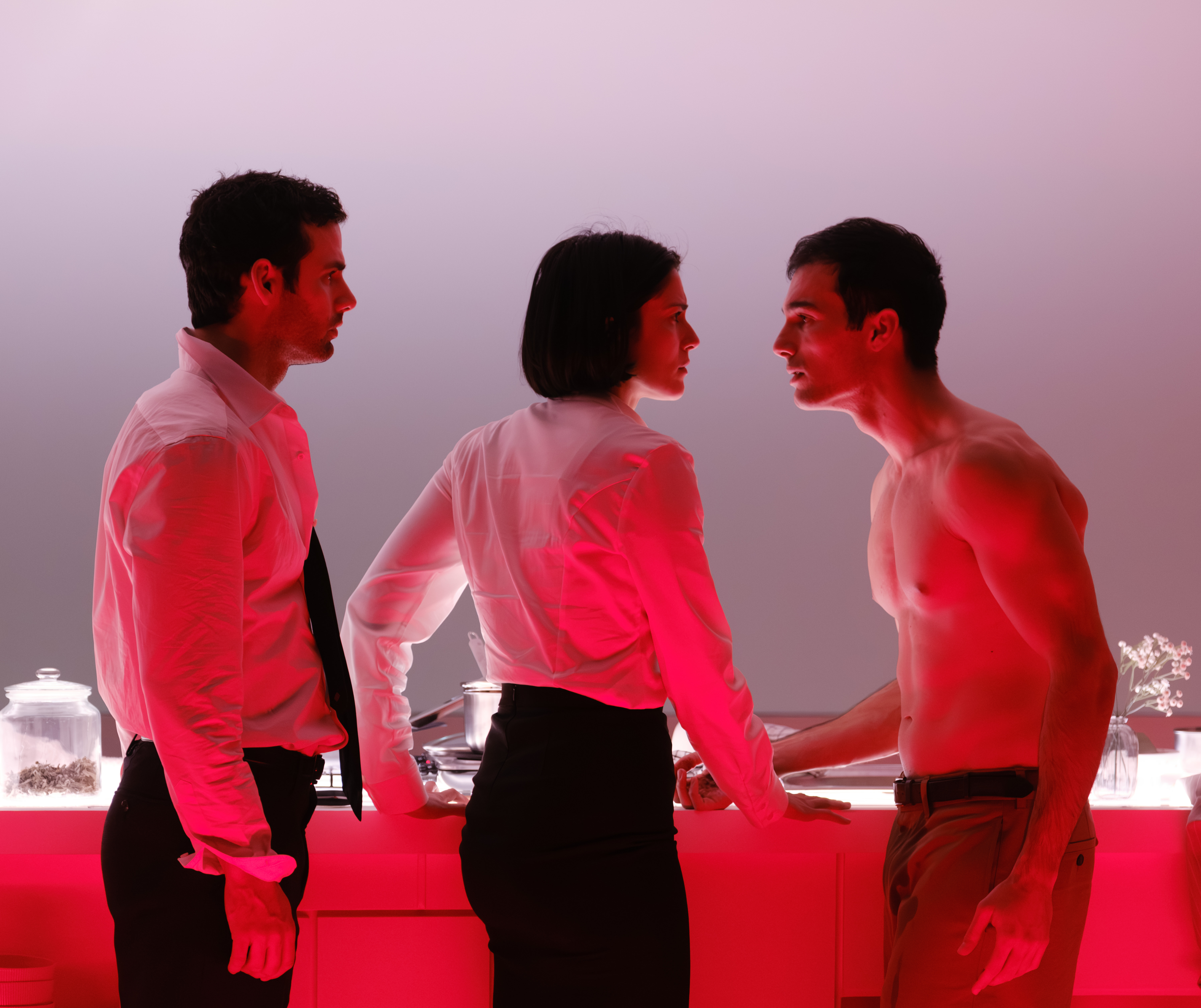 Η δραματουργική του ματιά μετατοπίζει το κέντρο βάρους στη σχέση ανάμεσα σε δύο άνδρες: τον Ζυλ (Νίκος Κοσώνας) και τον Ζαν (Γιάννης Καράμπαμπας), εξετάζοντας το βάρος της πατριαρχίας που ανέκαθεν συνθλίβει και το ανδρικό φύλο. Η ένταση ανάμεσα στους δύο άνδρες είναι σωματική, ψυχική αλλά και βαθιά πολιτική. Δεν αφορά μόνο το ποιος επιθυμεί ποιον, αλλά το ποιος έχει το δικαίωμα να επιθυμεί, ποιος μπορεί να εκτεθεί και ποιος τελικά θα επιβιώσει. Η εξουσία δεν ασκείται μονομερώς: μετακινείται διαρκώς, αλλάζει χέρια, γίνεται πότε παιχνίδι και πότε απειλή. Η επιθυμία, η έλξη και ο ανταγωνισμός δεν αντιμετωπίζονται ως ιδιωτικά συναισθήματα, αλλά ως μηχανισμοί κυριαρχίας, δοκιμασίας και επιβολής. Δίπλα τους, η Κριστίν (Θεόβη Στύλλου) λειτουργεί ως η φωνή μιας επιβιωτικής κοινωνίας που παρατηρεί, κρίνει, σχετικοποιεί και τελικά, παρεμβαίνει μόνο για να διασφαλίσει τη δική της συνέχεια. Είναι ο μηχανισμός που απορροφά το σοκ, περιορίζει την εκτροπή και επιλέγει – με κάθε κόστος – την συντήρησή της.
