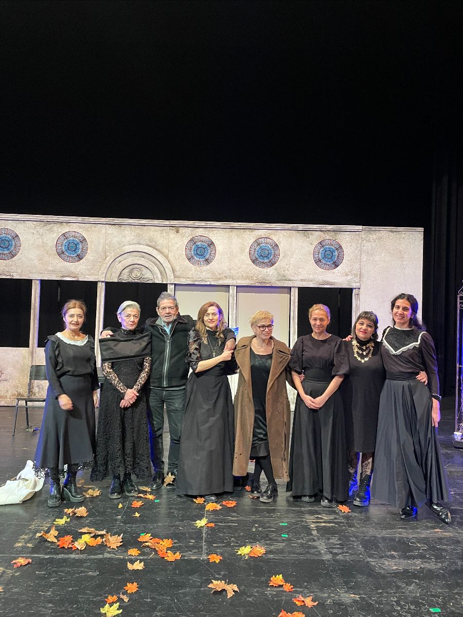Οι ηθοποιοί, στην υπόκλιση της παράστασης, με το κοινό να χειροκροτεί δυνατά γεμάτο συγκίνηση