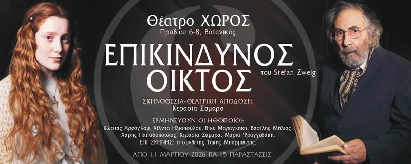 Μέσα σε ιδιαίτερα θερμό καλλιτεχνικό κλίμα πραγματοποιήθηκε η επίσημη πρεμιέρα της παράστασης «Επικίνδυνος Οίκτος», στο Θέατρο Χώρος, σε σκηνοθεσία της Κερασίας Σαμαρά. Άνθρωποι του θεάτρου, δημοσιογράφοι και φίλοι της τέχνης έδωσαν το «παρών» γεμίζοντας την αίθουσα και χειροκροτώντας παρατεταμένα τους συντελεστές. Η ανατομία του οίκτου, η σωματική παράλυση και η ψυχική παραλυσία, ο ανεκπλήρωτος έρωτας, ο επικείμενος πόλεμος, ο πόθος της αποδοχής, το ψέμα, η ανθρώπινη δειλία, ο πλούτος που εξαγοράζει την αγάπη, η ηδονή της εξουσίας συνθέτουν συναρπαστικές δραματικές σκηνές, που ερμηνεύουν οι ηθοποιοί: Κώστας Αρζόγλου, Χίλντα Ηλιοπούλου, Βίκυ Μαραγκάκη, Βασίλης Μήλιος, Χάρης Παπαδόπουλος και Μαρία Φραγγεδάκη. Η ζωντανή μουσική από τον συνθέτη Τάκη Μπαρμπέρη, καθώς και η επί σκηνής αφήγηση από την Κερασία Σαμαρά συμπληρώνουν ένα πολύπτυχο θέαμα, που ολοκληρώνεται με το εικαστικό σκηνικό της ζωγράφου και χαράκτριας Εύας Μελά, αλλά και με τους φωτισμούς του Γιώργου Μπούχρα.