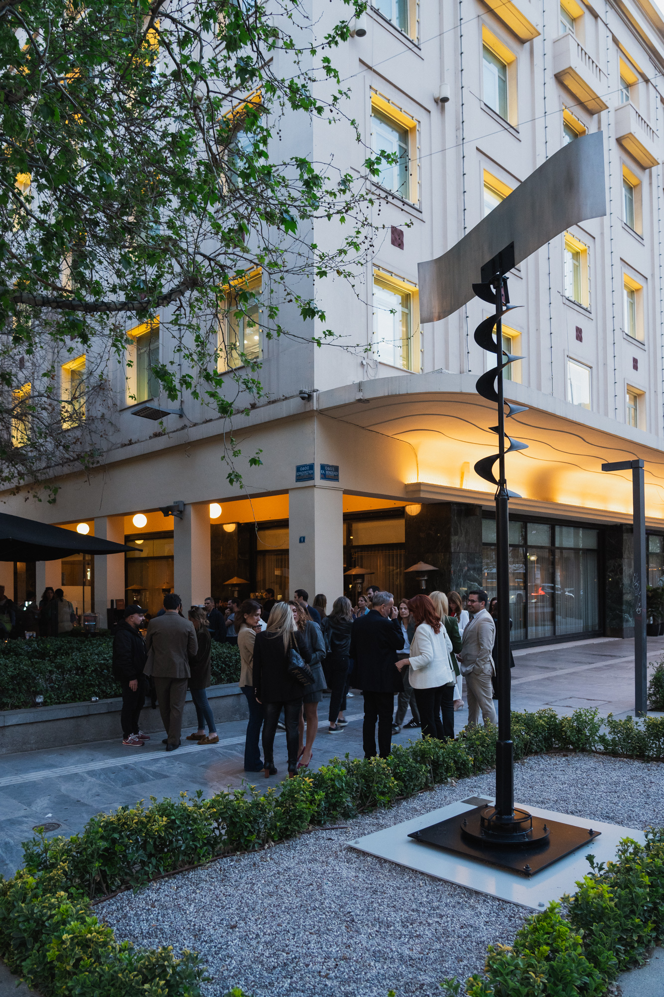 Το εντυπωσιακό γλυπτό με τίτλο «Αιολικό», το οποίο έχει τοποθετηθεί στη συμβολή των οδών Βουκουρεστίου και Πανεπιστημίου, προσδίδει νέα πνοή στον αστικό ιστό, ενισχύοντας τον διάλογο μεταξύ τέχνης και δημόσιου χώρου. Παράλληλα, παρουσιάστηκαν τα τρία «Σινιάλα» του καλλιτέχνη, τα οποία έχουν τοποθετηθεί στο Foyer του Θέατρο Παλλάς, δημιουργώντας έναν πολιτιστικό περίπατο για τον επισκέπτη.