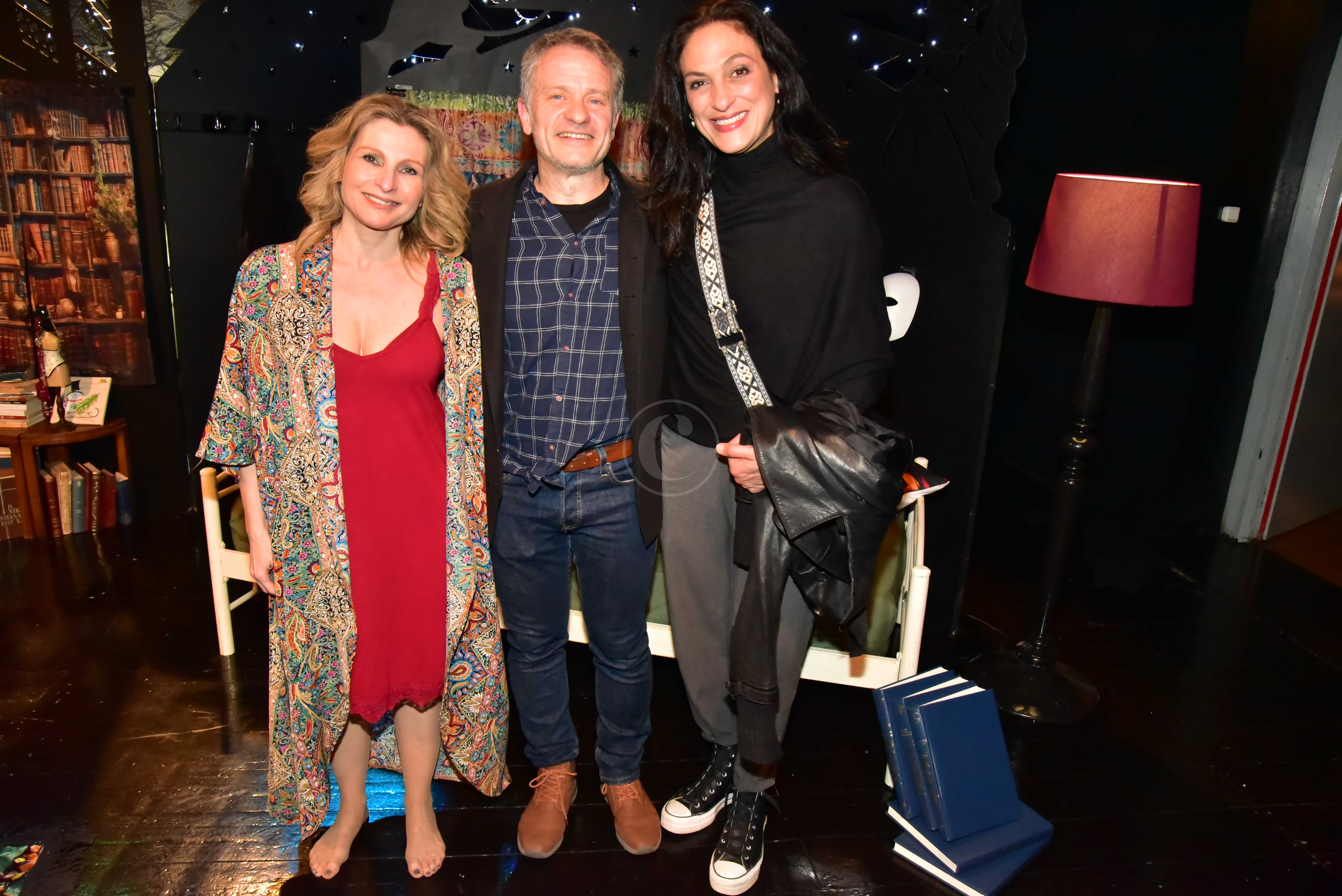 Η διαφημίστρια Μάγδα Πανουργιά με τους πρωταγωνιστές του έργου Δημήτρη Μάριζα και Νατάσσα Χαϊδά