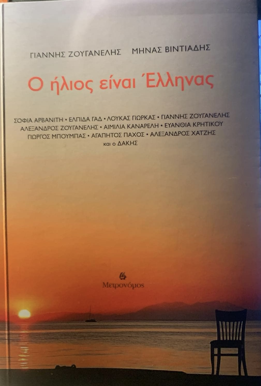 Ο Γιάννης Ζουγανέλης, ο Μηνάς Βιντιάδης κι ο “Μετρονόμος” περιμένουν τους φίλους τους την Τρίτη 13 Μαϊου, στις 8 το βράδυ, στον Ιανό, στη Σταδίου, στην παρουσίαση του CD- βιβλίου “Ο ήλιος είναι Έλληνας”. Θα μιλήσει ο δημοσιογράφος και συγγραφέας Δημήτρης Μανιάτης, θα συντονίσει η Μίνα Μαύρου, δημοσιογράφος εκδότης του “Mousikogramma.gr” , θα διαβάσει και θ’ απαγγείλει στίχους ο ηθοποιός Στράτος Τζώρτζογλου, ενώ μουσικοί και τραγουδιστές θ’ αποδώσουν τραγούδια του CD.