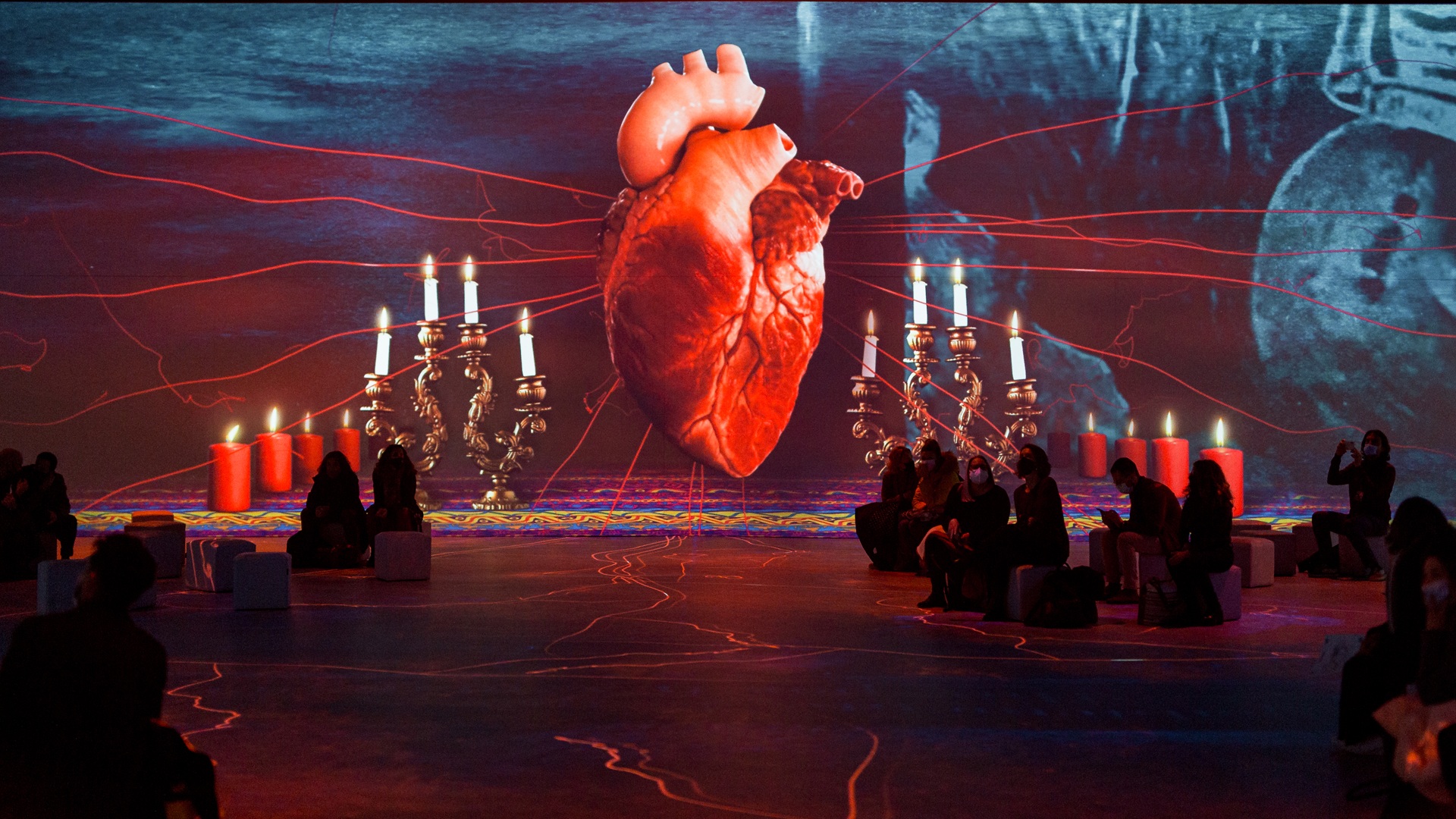 ΑΙΘΟΥΣΑ ΕΜΒΥΘΙΣΗΣ/IMMERSIVE EXPERIENCE: Θεαματική οπτικοακουστική αφήγηση που παρουσιάζει τα γεγονότα και τις εμπειρίες που ανέδειξαν τη ζωή της FridaKahlo μοναδική και συνέβαλαν στη διαμόρφωσή της ως παγκόσμιου πολιτιστικού συμβόλου, μέσα από προβολές συνολικής επιφάνειας 500 τ.μ. με την συνοδεία της μαγικής μουσικής του Ραφέλ Πλάνα (περιλαμβάνει φωτογραφικό αρχειακό υλικό, ιστορικά ντοκουμέντα και απεικονίσεις χώρων που σημάδεψαν την προσωπική και ιστορική της διαδρομή)