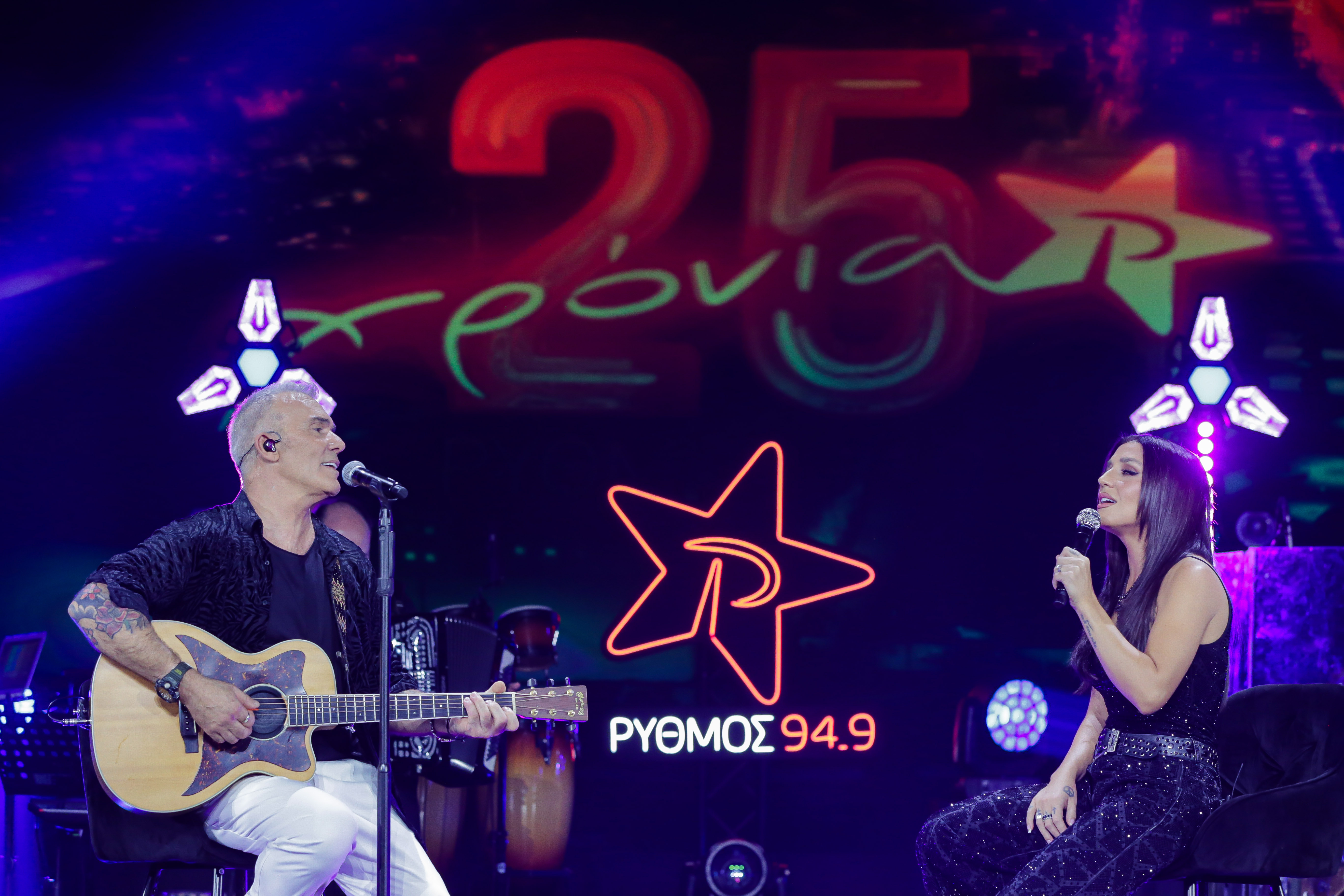 Το βράδυ των Χριστουγέννων στις 23:00 στον ΑΝΤ1 γιορτάζουμε με… «ΡΥΘΜΟ» μαζί με την Ιουλία Καλλιμάνη και τον Στέλιο Ρόκκο. Οι δύο καλλιτέχνες συναντήθηκαν για πρώτη φορά στη σκηνή στο9οεορταστικό Exclusive Live Event του ΡΥΘΜΟΥ94.9, που πραγματοποιήθηκε στο Κέντρο Πολιτισμού «Ελληνικός Κόσμος» με παρουσιάστρια τη ραδιοφωνική παραγωγό Γιώτα Τσιμπρικίδου.