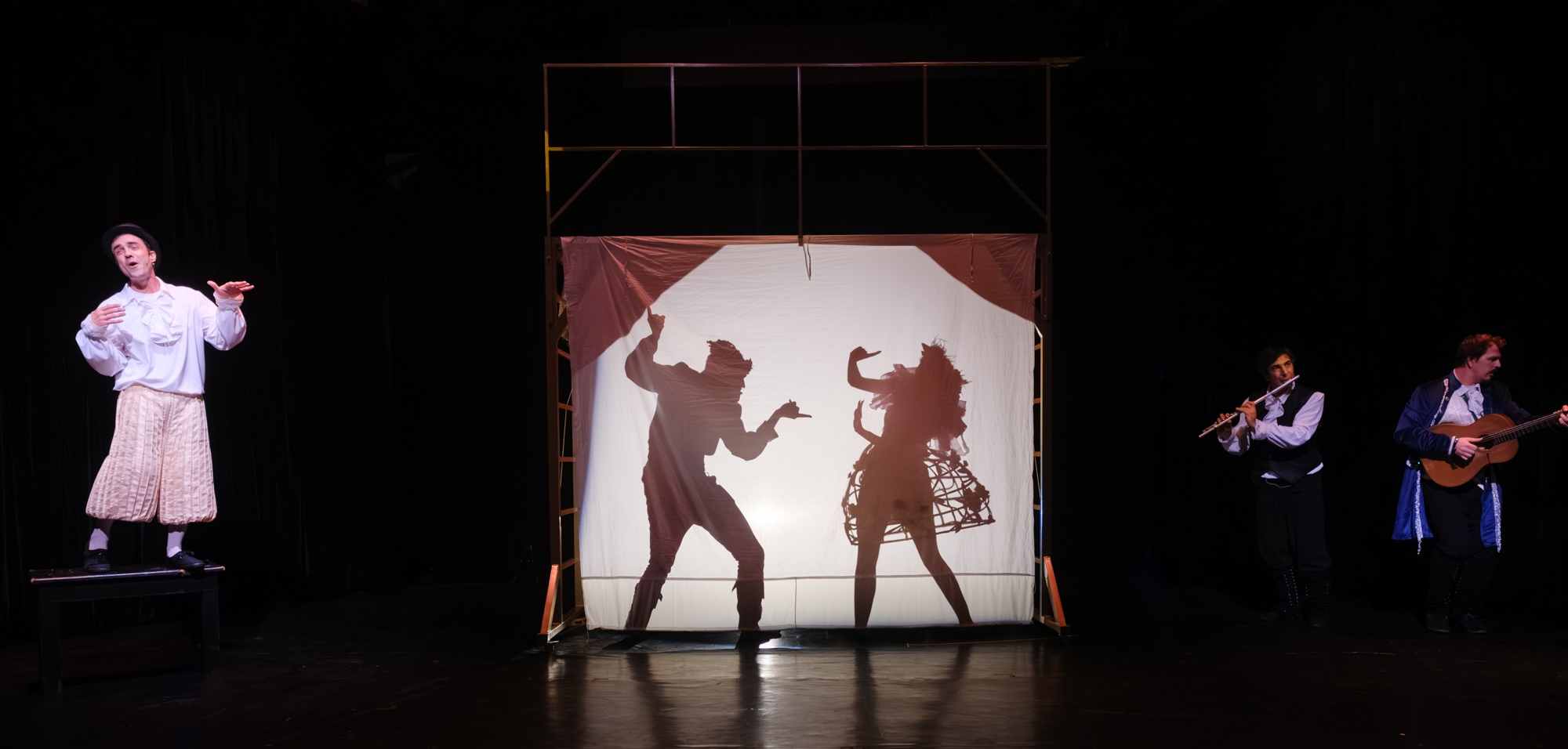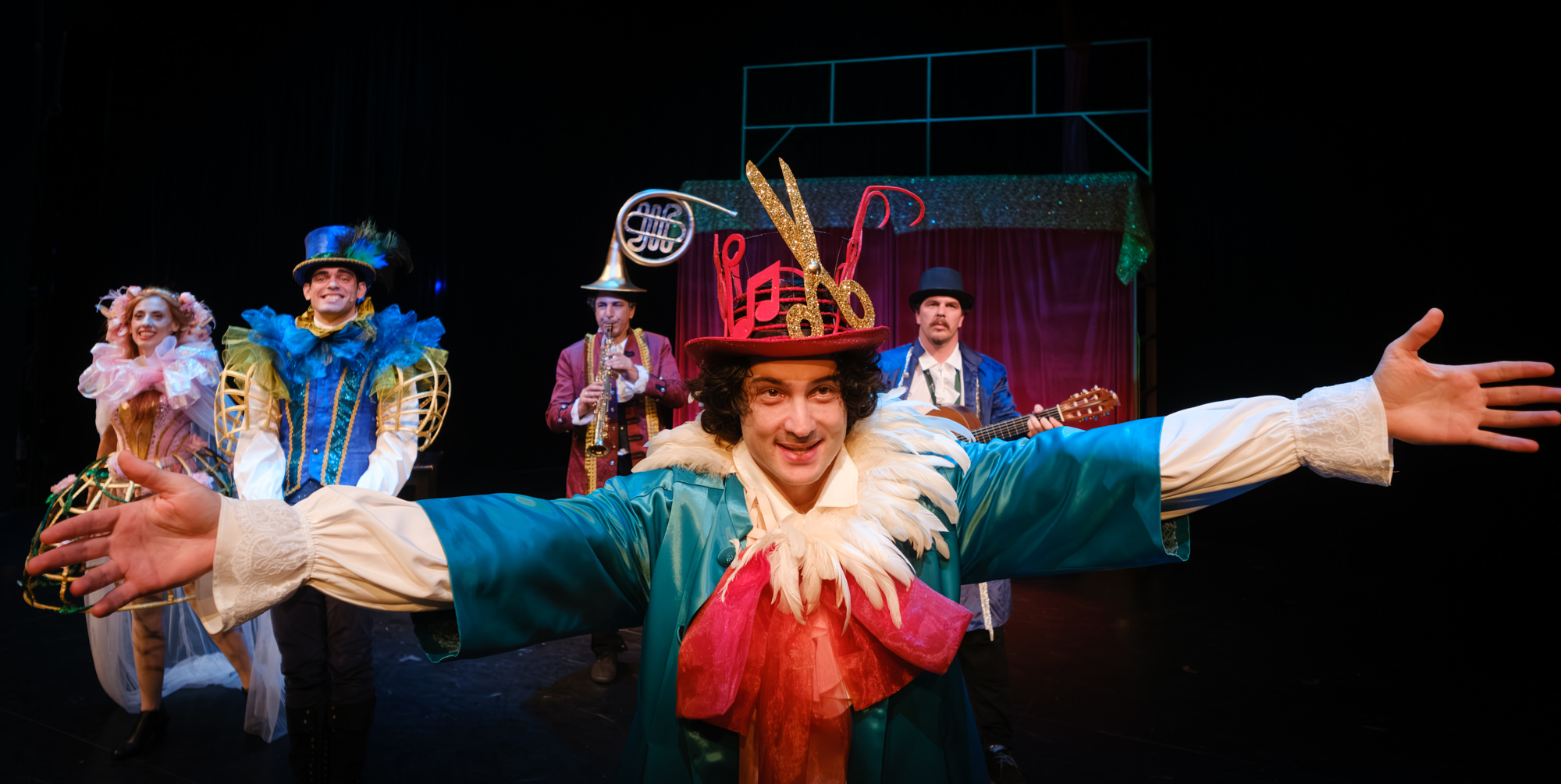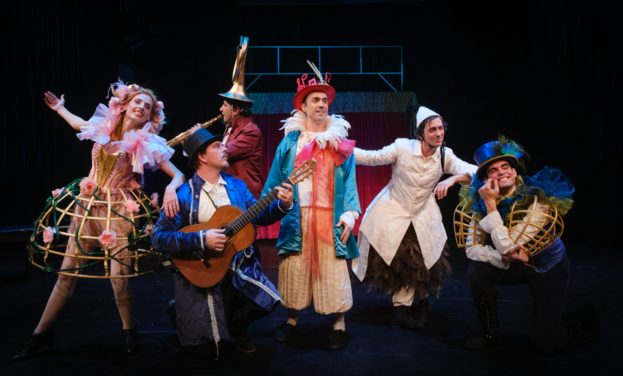 Ζωντανά επί σκηνής απολαμβάνουμε αγαπημένες μελωδίες από τους χαρισματικούς μουσικούς-ηθοποιούς-ερμηνευτές& ακροβάτες (!), με εκπαίδευση στο λυρικό τραγούδι, οι οποίοι ενσαρκώνουν μοναδικά τους ρόλους, τραγουδούν, χορεύουν και παίζουν κλαρινέτο, σαξόφωνο, φλάουτο, κιθάρα και ukulele με εντυπωσιακή δεξιότητα. Μια παράσταση που συνδυάζει στοιχεία commediadell’ arte, αυτοσχεδιασμούς, υπέροχα κοστούμια, χορευτικά και θεαματικά ακροβατικά! Τα εμβόλιμα «στοιχεία όπερας» στη θεατρική διασκευή, έξυπνα δοσμένα, διασκεδάζουν μικρούς και μεγάλους θεατές- ακόμα και όσους δεν έχουν παρακολουθήσει ποτέ όπερα!