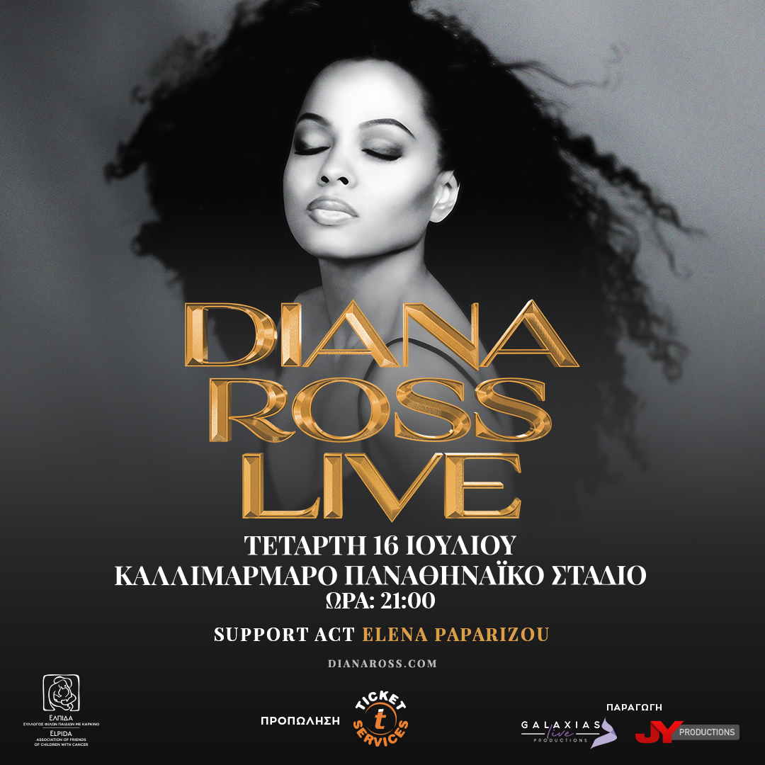 Την Τετάρτη 16 Ιουλίου στις 21.00 το βράδυ, όσοι βρεθούν στο Καλλιμάρμαρο θα ζήσουν μια μοναδική εμπειρία , γεμάτη νοσταλγία και συναίσθημα, με την ανεπανάληπτη ερμηνεία και την λάμψη της βασίλισσας της soul DIANA ROSS.