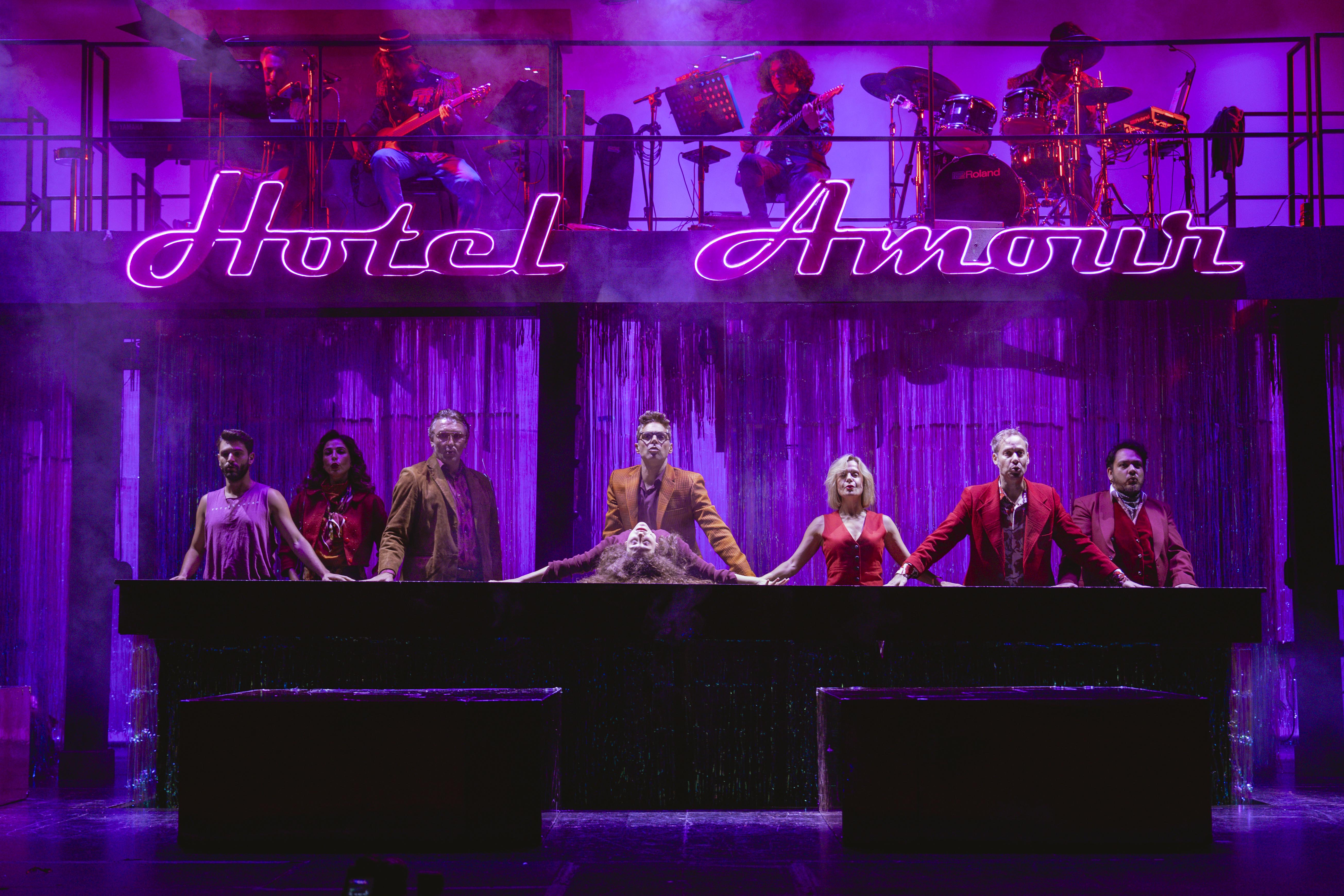 Το “Hotel Amour”, η πολυσυζητημένη συνάντηση του Γεράσιμου Ευαγγελάτου (κείμενο – στίχοι) και του Θέμη Καραμουρατίδη (μουσική) μετά την επιτυχημένη «Απλή Μετάβαση», είναι ένα σύγχρονο, ελληνικό πρωτότυπο μιούζικαλ που εξερευνά με ευαισθησία και ειλικρίνεια την επιθυμία, τον έρωτα και τη φθορά του, το σεξ και την αμηχανία του, αλλά και τη βαθιά ανάγκη όλων μας για επαφή.Με φόντο ένα σκηνικό απόλυτης ελευθερίας, και υπό τους ρυθμούς μιας εκρηκτικής ζωντανής ορχήστρας, μετατρέπει την παρακμή σε ποίηση και το τραγούδι σε καταφύγιο.