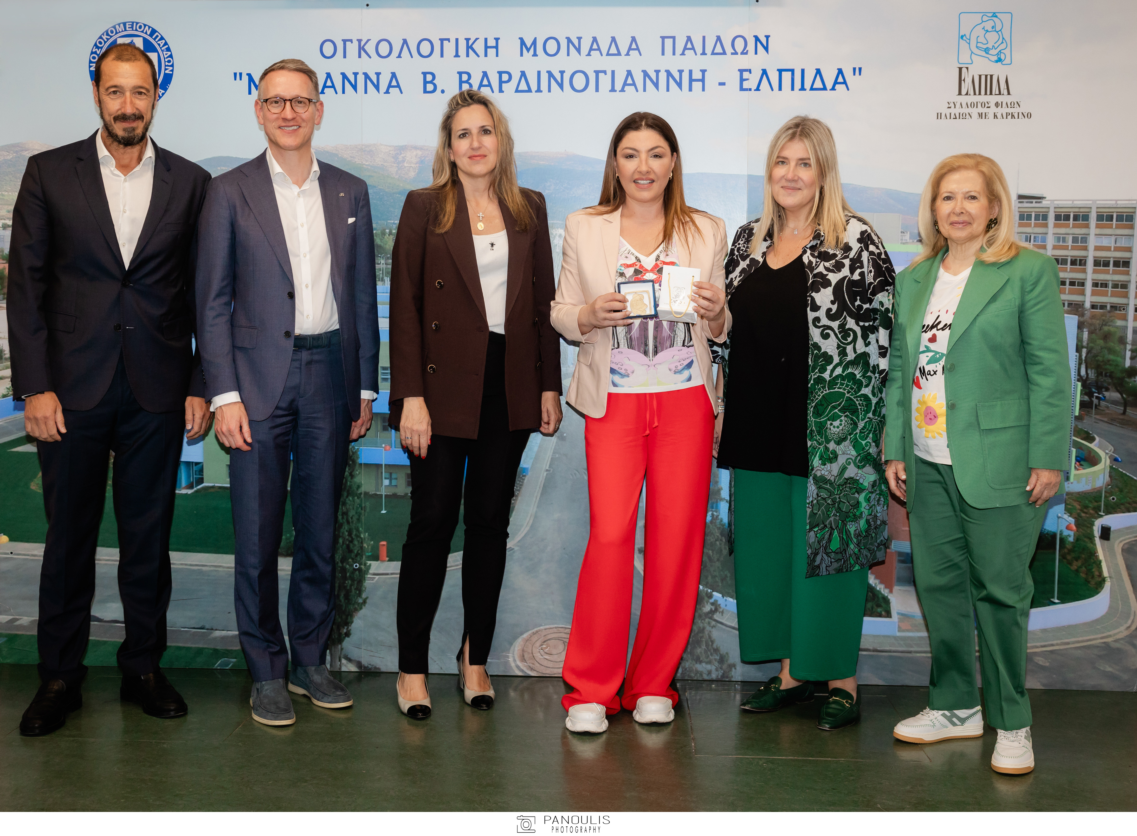 Την Έλενα Παπαρίζου υποδέχθηκαν ο Πρόεδρος του Διοικητικού Συμβουλίου του Ογκολογικού Νοσοκομείου Παίδων «Μαριάννα Β. Βαρδινογιάννη-ΕΛΠΙΔΑ» κύριος Μανώλης Παπασάββας και τα μέλη του Διοικητικού Συμβουλίου του Σωματείου «ΕΛΠΙΔΑ» κυρίες Αλίνα Μινέττα, Ελένη Σαμαρά, Μελίνα Δασκαλάκη και Ντόρα Δημοπούλου.