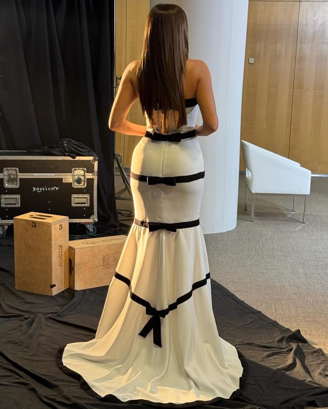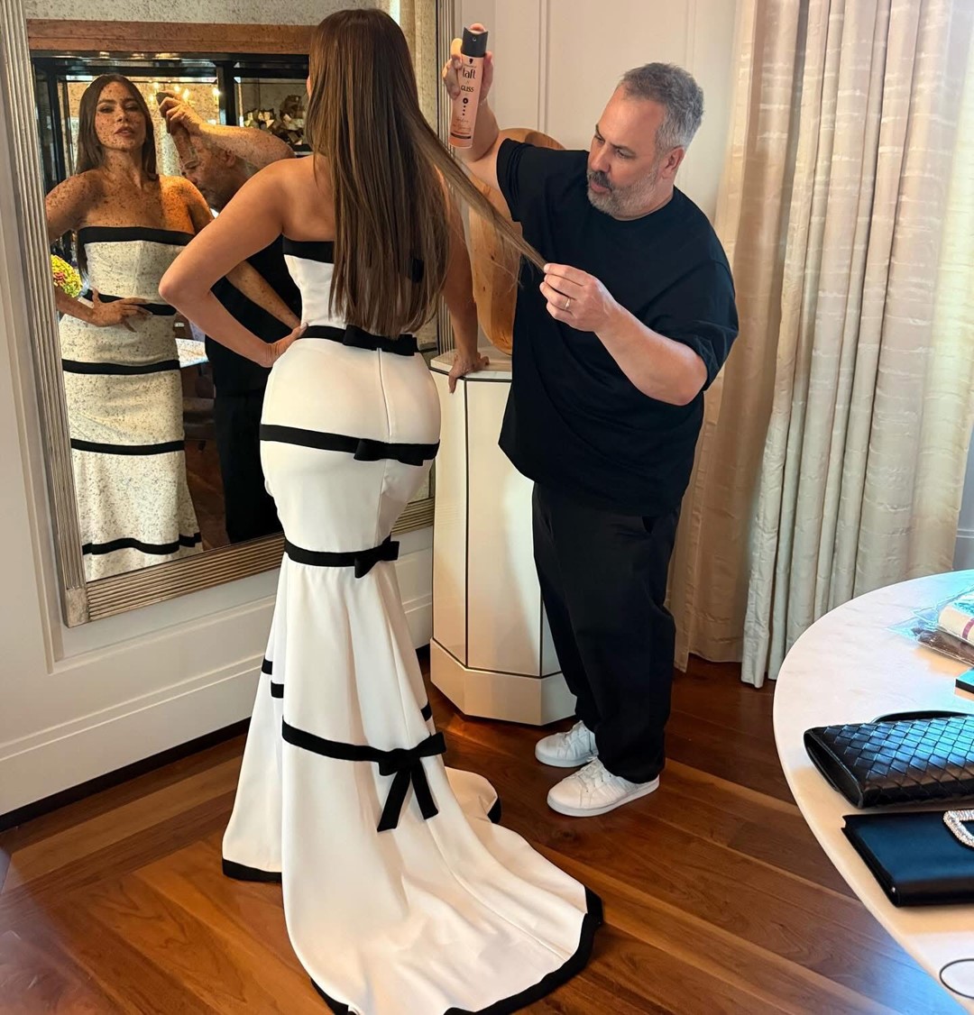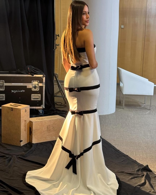 Ο ιστορικός ελληνικός οίκος υψηλής ραπτικής Celia Kritharioti έκλεψε για άλλη μια φορά τις εντυπώσεις! Η Sofia Vergara επέλεξε για τη βραδιά μια εντυπωσιακή δημιουργία του ιστορικού ελληνικού οίκου υψηλής ραπτικής Celia Kritharioti από τη συλλογή Άνοιξη–Καλοκαίρι 2025. Το στράπλες εφαρμοστό φόρεμα σε λευκό χρώμα, με χαρακτηριστικές οριζόντιες μαύρες κορδέλες που κατέληγαν σε φιόγκους στην πλάτη και γοργονέ τελείωμα, ανέδειξε τη διαχρονική λάμψη και το θηλυκό στυλ της ηθοποιού. Η εμφάνισή της ολοκληρώθηκε με ίσια μαλλιά, χωρισμένα στη μέση, προσθέτοντας μια νότα κομψότητας και απλότητας.
