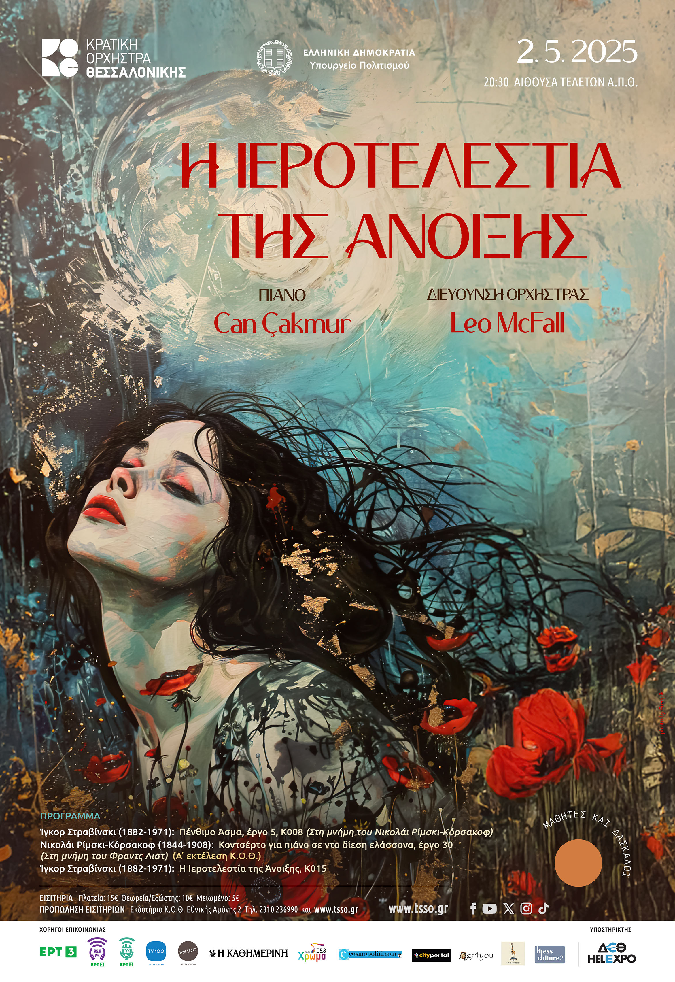 Το πρόγραμμα ξεκινά με το ‘Πένθιμο Άσμα’ του Στραβίνσκι για το θάνατο του αγαπημένου του δασκάλου, έργο που είχε χαθεί για περισσότερο από έναν αιώνα και μόλις μία δεκαετία πριν ανακαλύφθηκε, αλλά και ένα in memoriam του δασκάλου αυτή τη φορά, που ο Κόρσακοφ έγραψε στη μνήμη του Λιστ, ο οποίος τον είχε επηρεάσει έντονα και είχε συμβάλλει με τις ρηξικέλευθες ιδέες του στη συνθετική του εξέλιξη. Ερμηνεύει ο πολυβραβευμένος Τούρκος πιανίστας Can Çakmur.