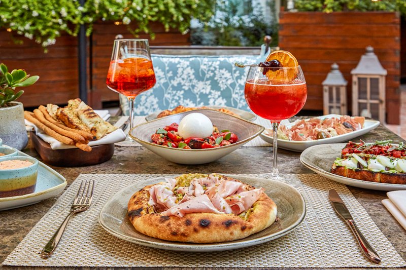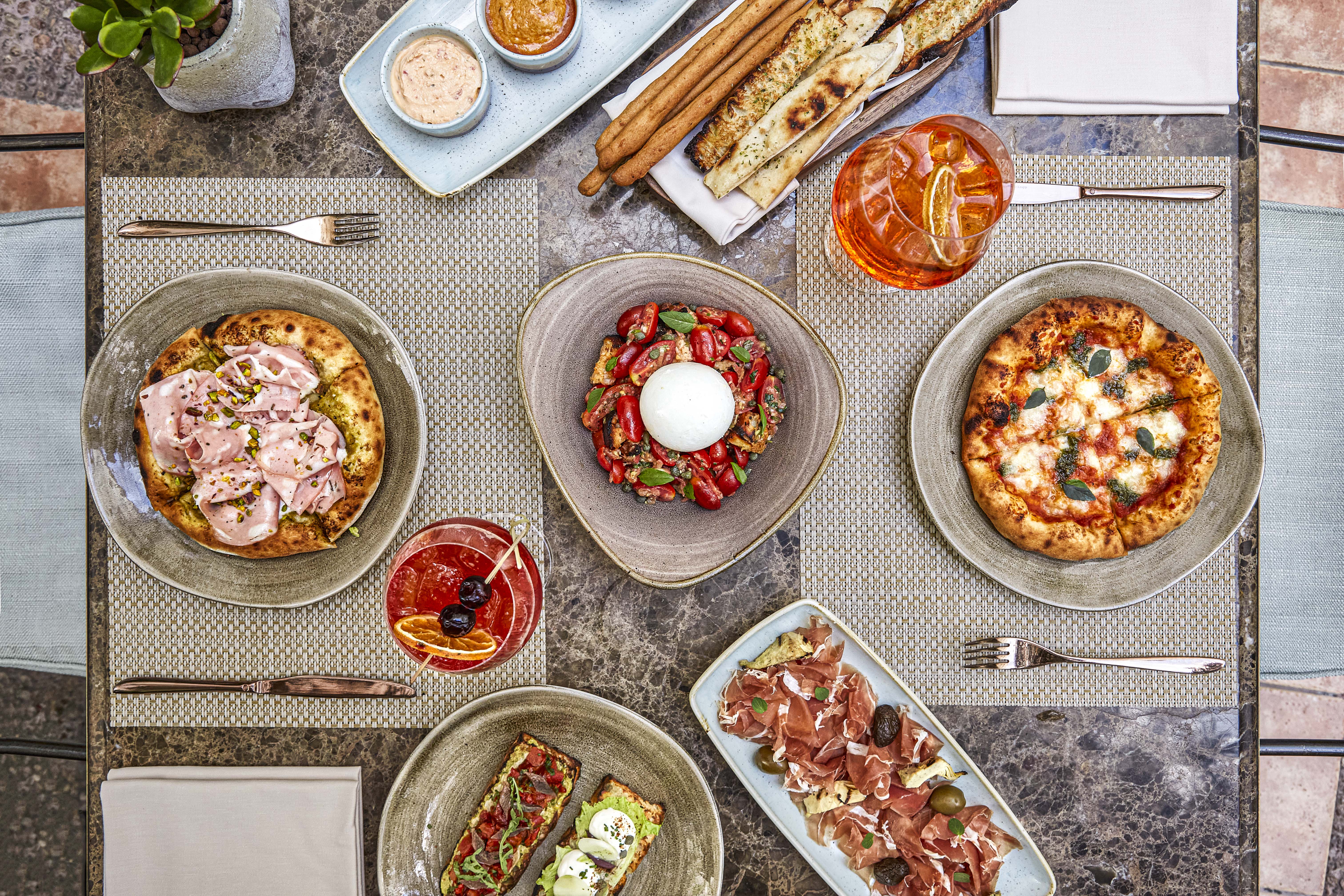 Η focaccia με αντζούγια και πιπεριές κονφί αποτελεί ιδανική επιλογή για τους λάτρεις των έντονων γεύσεων, ενώ η panzanella με βουβαλίσια burrata και γλυκά ντοματίνια ξεχωρίζει για τη φρεσκάδα της.Οι επιλογές από salumie formaggi συνδυάζουν ποιότητα και αυθεντικότητα, με εξαιρετικά τυριά όπως το Pecorino di Pienza, Caciottonaal Pepe και το σπάνιο San Pietro incerad’api, καθώς και εκλεκτά αλλαντικά όπως Mortadella Bologna, Prosciutto San Daniele και Finocchiona, τα οποία κόβονται επί τόπου σε λεπτές φέτες με την εντυπωσιακή κόκκινη vintage μηχανή κοπής και σερβίρονται με αγκινάρες Τήνου, σαλάμι σύκου Ευβοίας και διαλεκτές ελιές.
