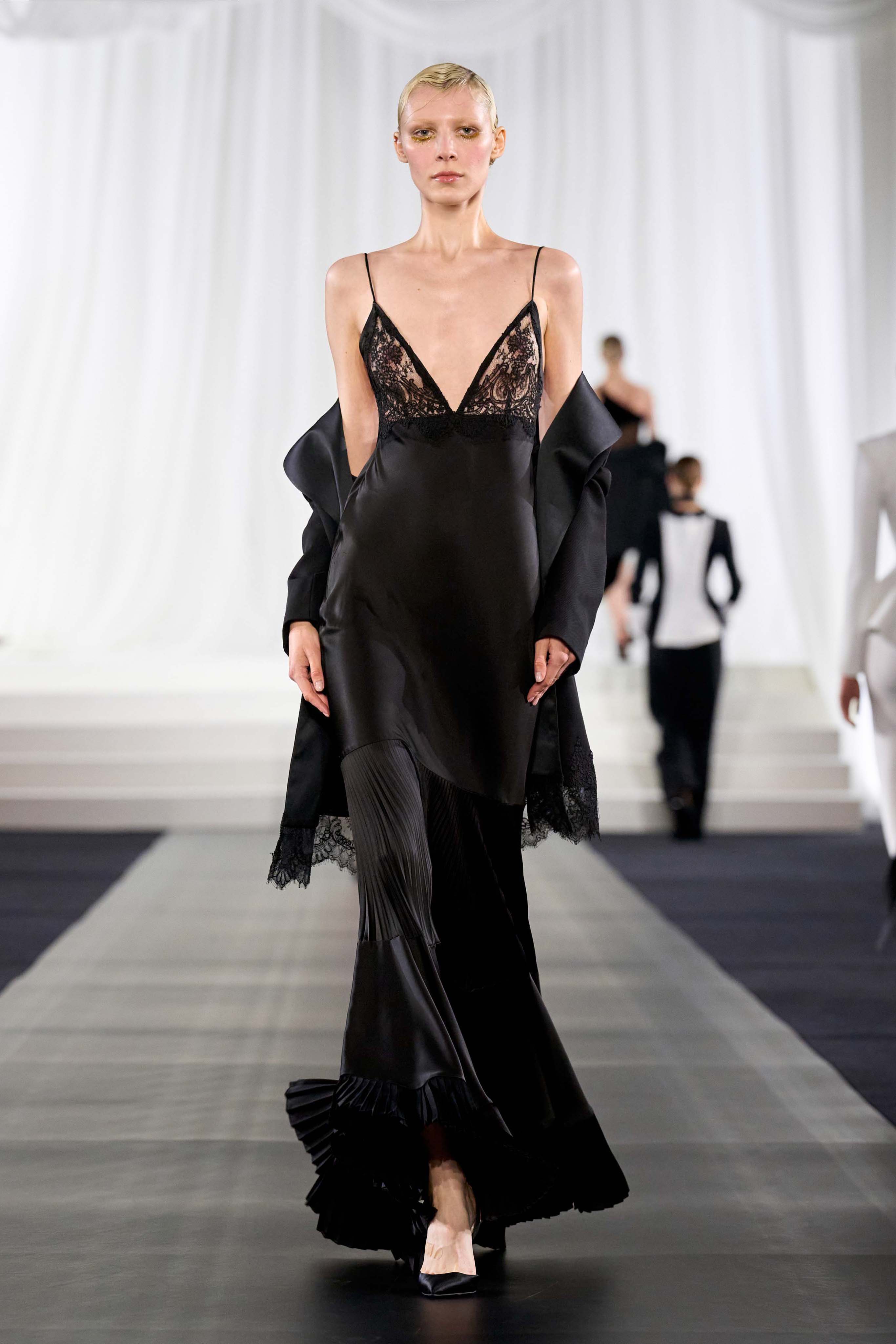 Η Jennifer Lopez εντυπωσίασε με ένα κομψό φόρεμα που συνδύαζε αισθησιασμό και φινέτσα. Το σχέδιο ξεχώριζε για το αποκαλυπτικό ντεκολτέ από φίνα δαντέλα, τις πλισέ λεπτομέρειες που χάριζαν κίνηση και θηλυκότητα, καθώς και για το σακάκι που το συνόδευε, διακοσμημένο με χειροποίητη δαντέλα στα μανίκια, ένα στοιχείο που ανέδειξε τη δεξιοτεχνία και την υψηλή αισθητική του οίκου.