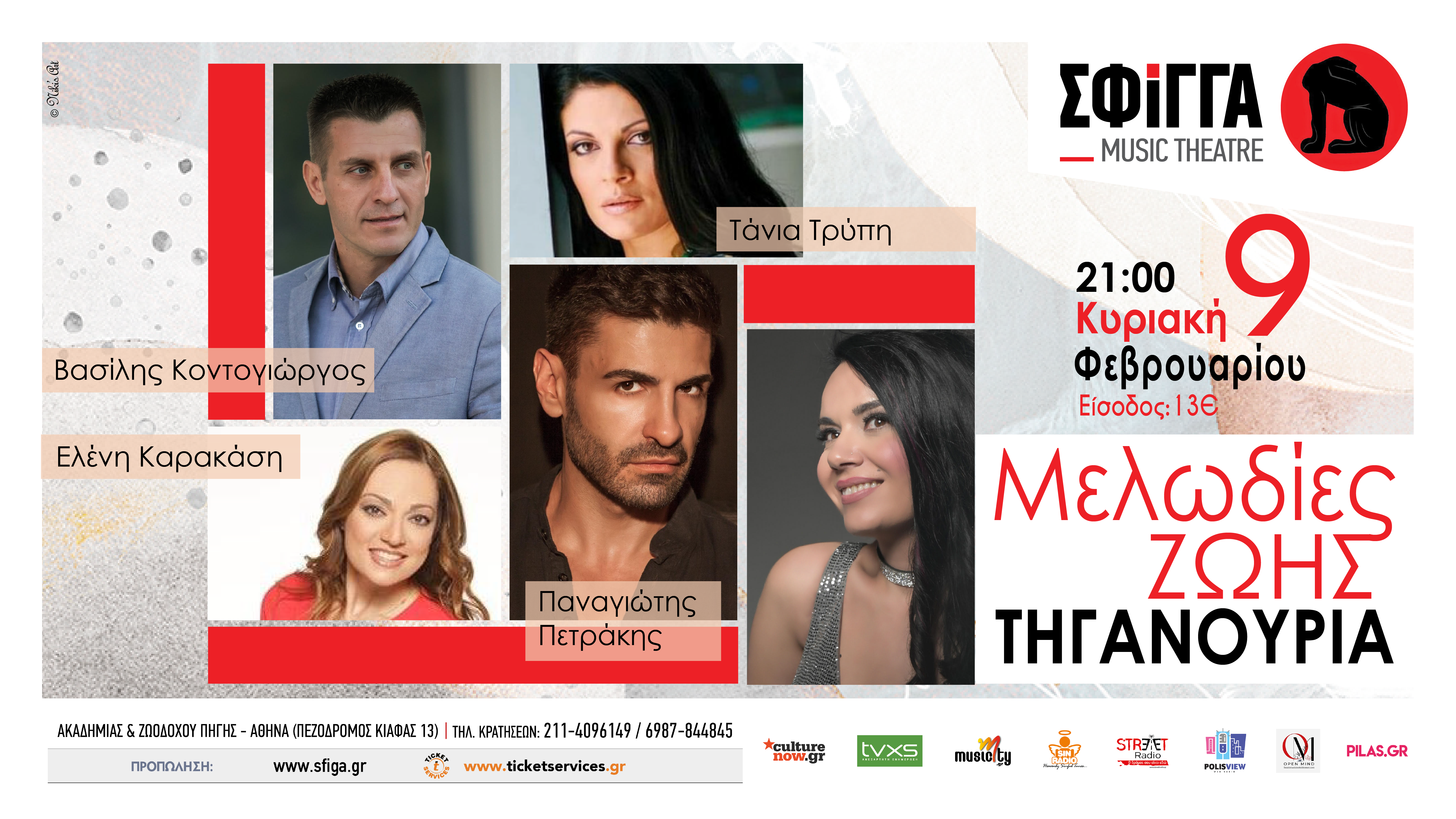 Το Cosmopoliti εξασφάλισε για τους αναγνώστες του διπλές προσκλήσεις για τις “Μελωδίες Ζωής” στη Σφίγγα με τους: Ζωή Τηγανούρια, Παναγιώτη Πετράκη, Ελένη Καρακάση, Τάνια Τρύπη και Βασίλη Κοντογιώργο την Κυριακή 9/2 στις 21:00. Οι προσκλήσεις περιλαμβάνουν δωρεάν μόνο την είσοδο χωρίς ποτό. Για να τις διεκδικήσετε, γράψτε το ονοματεπώνυμό σας εδώ ή στη σελίδα μας στο Facebook και αυτόματα μπαίνετε στην κλήρωση. Οι νικητές θα ειδοποιηθούν με μήνυμα στο inbox ή με e-mail. Καλή επιτυχία!