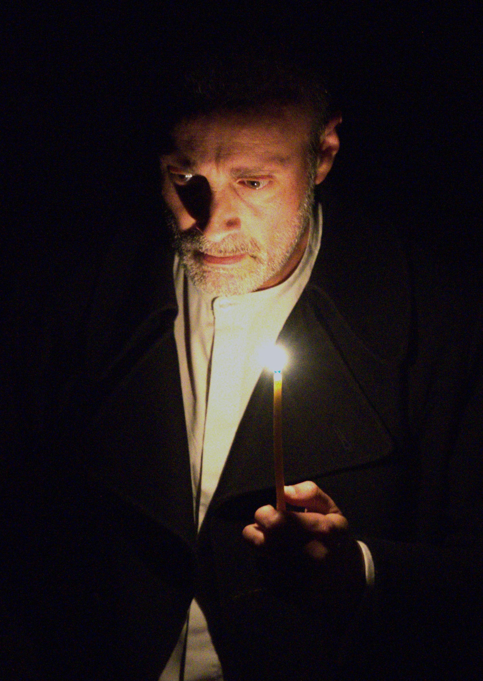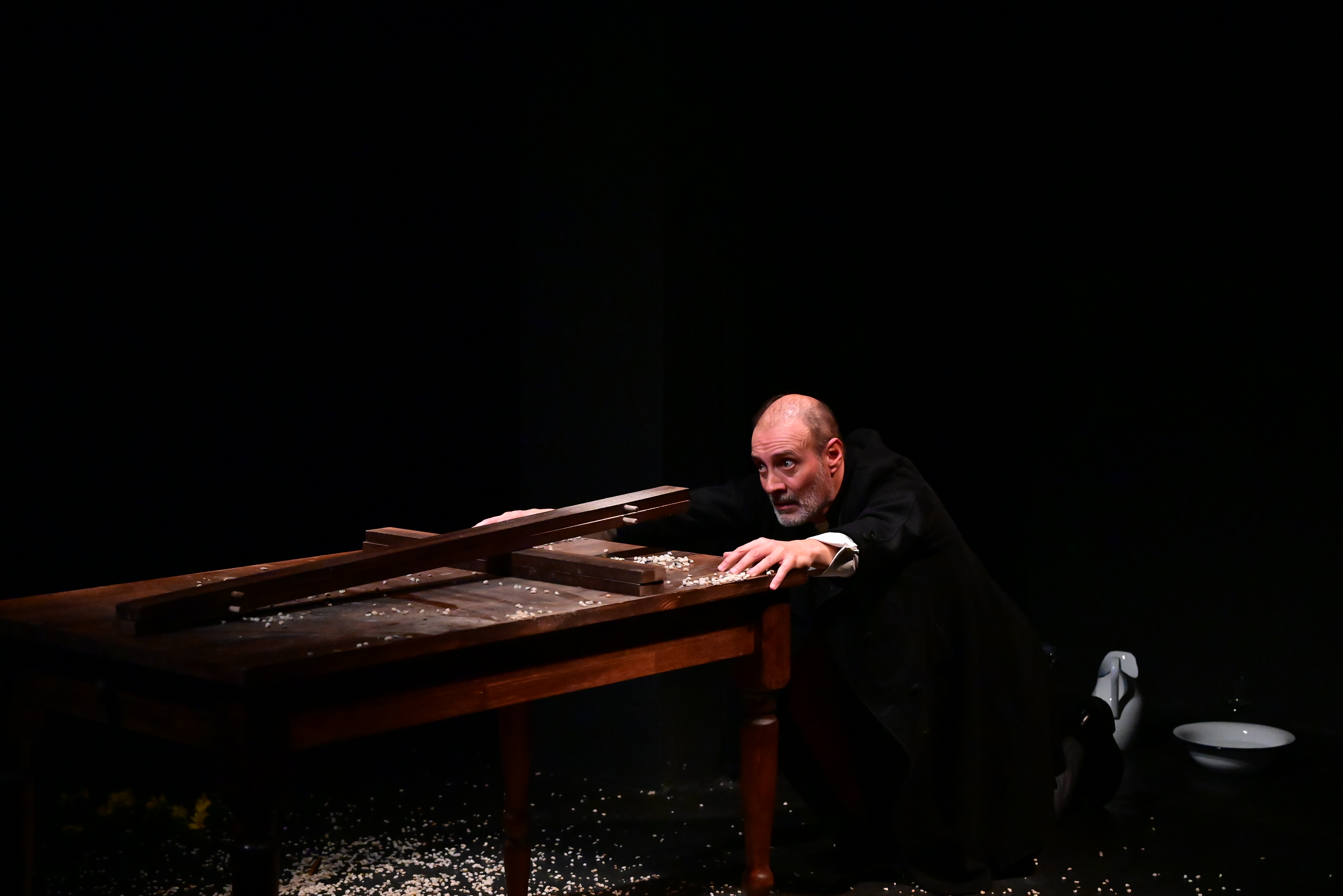 Καλά, το πώς είναι να σκηνοθετείς τον εαυτό σου, είναι μεγάλη ιστορία. Προσωπικά είχα δηλώσει – και με στόμφο μάλιστα – πως δεν θα το κάνω ποτέ. Να λοιπόν που διέψευσα τον ίδιο μου τον εαυτό. Νομίζω τελικά, πως οι περιπτώσεις που μπορεί να σου συμβεί κάτι τέτοιο, διατηρώντας κάποια ελαφρυντικά για την παράτολμη αυτή κίνηση σου, είναι όταν οι δύο ιδιότητες, είναι μέσα σου σχεδόν αξεδιάλυτες. Αυτό δηλαδή που συνέβη με μένα. Διότι αυτά που σκεφτόμουν μέσα στα χρόνια για το κείμενο, ήταν πραγματικά δομικά στοιχεία της παράστασης, που αφορούσαν δηλαδή στο σκηνοθετικό άξονα. Έτσι δεν μπορούσε να το κάνει κάποιος άλλος. Από την άλλη μεριά, έχοντας ήδη την εμπειρία, του τι μαγικό πράγμα είναι, να παίζει κανείς Βιζυηνό, ήταν αδύνατο να μην βρίσκομαι πάνω στη σκηνή και μάλιστα με τη συνθήκη (σκηνοθετικά) που είχα στο μυαλό μου. Εν ολίγοις, όχι μόνο δεν είχα τελειώσει με το κείμενο αυτό μέσα μου αλλά στην πραγματικότητα ήμουν εγκλωβισμένος να το κάνω και με τις δύο ιδιότητες. Τόσο δηλαδή του ηθοποιού όσο και του σκηνοθέτη. Όσον αφορά τον τρόπο που το μετέφερα, τι να σου πω. Όταν ξέρεις καλά ένα κείμενο, όταν ξέρεις τον πλούτο του, δεν σκέφτεσαι να το φορτώσεις με σκηνοθετικά τερτίπια. Δεν τα χρειάζεσαι. Ούτε έχεις άγχος να το φέρεις στο σήμερα. Είναι στο σήμερα. Για την ακρίβεια είναι στο πάντα. Γιατί η ουσία του κειμένου βρίσκεται στις βαθύτερες υπαρξιακές αγωνίες του ανθρώπου. Κι εκεί δεν υπάρχει εποχή. Για αυτό ακριβώς επέλεξα στην παράσταση να υπάρχουν μόνο φυσικά υλικά, τα οποία δεν φέρουν εποχή, αλλά αναγνωρίζονται ως τέτοια, με τον ίδιο τρόπο και στον ίδιο βαθμό, πάντοτε. Το νερό ας πούμε, η φωτιά , το ξύλο, η πέτρα, οι καρποί των δέντρων ή της γης. Από την άλλη ως γνωστόν σε ένα τόσο πλούσιο κείμενο, δεν χρειαζόμαστε σκηνογραφία που να υπογραμμίζει οτιδήποτε. Γιατί ενυπάρχουν όλα στο λόγο. Θα έμοιαζε πλεονασμός. Για μένα αυτό που πρέπει να κάνει κανείς σ’ αυτές τις περιπτώσεις, είναι να δημιουργήσει ένα παράλληλο εικαστικό σύμπαν, το οποίο όχι μόνο δεν θα εμποδίζει τον θεατή να πλάσει με τη φαντασία του την εικόνα που ακούει μέσω του λόγου που εκφέρεται στη σκηνή αλλά θα του ενισχύει αυτήν την ικανότητα, προσδίδοντας της ψυχικό βάθος. Αυτό προσπαθήσαμε να δώσουμε στην παράσταση, τόσο σκηνογραφικά όσο και από πλευράς κίνησης, η οποία δεν βρίσκεται ασφαλώς στη σφαίρα του ρεαλισμού αλλά στη σφαίρα ενός φανταστικού εικαστικού κόσμου που δημιουργείται μέσω των συνειρμών που κάνει η μνήμη ενός ανθρώπου, όταν αναπλάθει γεγονότα του παρελθόντος.