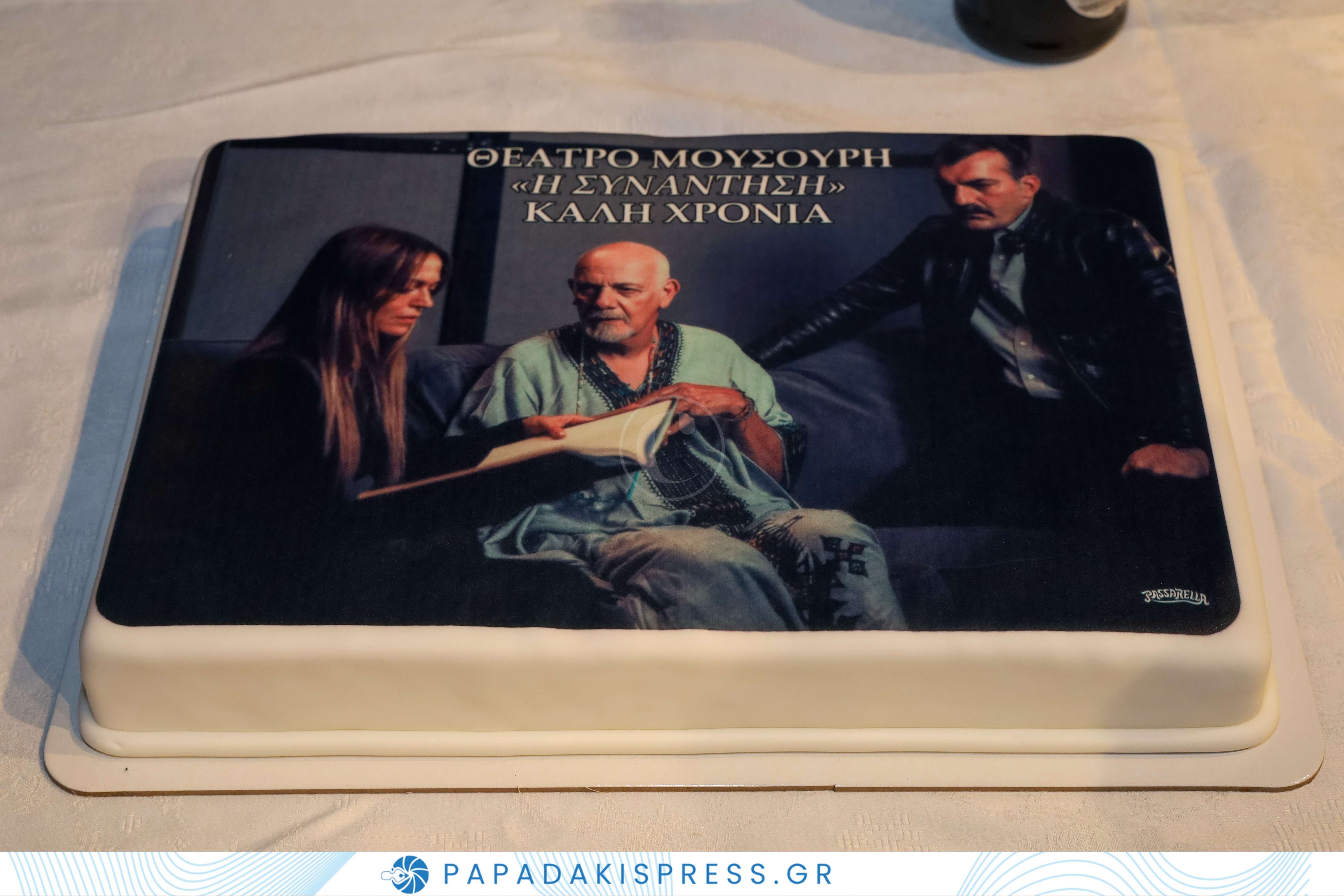 Κοπή πίτας για τη νέα χρονιά, πραγματοποιήθηκε στο Θέατρο Μουσούρη για την παράσταση «Η συνάντηση» με τον ξεχωριστό Πέτρο Φιλιππίδη να υπογράφει τη σκηνοθεσία, τη μετάφραση και να πρωταγωνιστεί. Μαζί του η Κατερίνα Θεοχάρη και ο Βασίλης Γιακουμάρος. Για για το κόψιμο της πίτας συγκεντρώθηκαν εκτός από το θίασο, συνεργάτες και το προσωπικό του θεάτρου και ο παραγωγός Κάρολος Παυλάκης. Το φλουρί κέρδισε ο Γιώργος Κιμούλης.