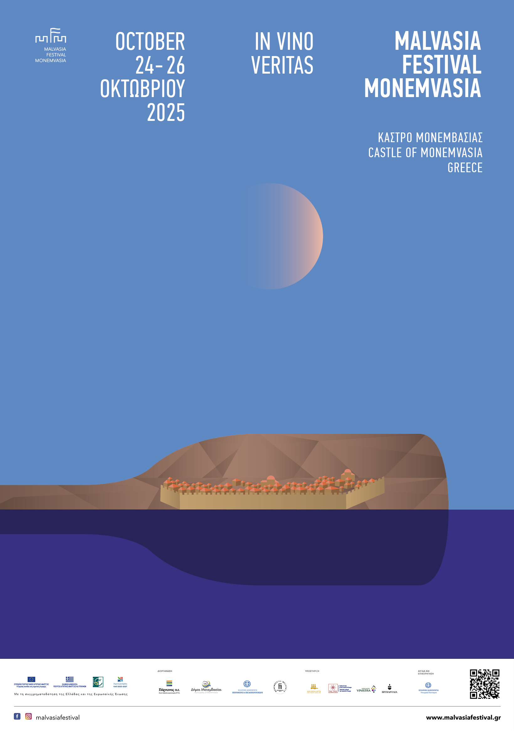 Μύθος, ιστορική αλήθεια και καλλιτεχνική δημιουργία συναντιούνται στα καλντερίμια του κάστρου της Μονεμβασιάς για να συνθέσουν ένα τριήμερο γεμάτο οινικές δοκιμές, μουσικές συναυλίες και εκδηλώσεις Λόγου και Τέχνης. Η Μονεμβασία μας καλεί να ανακαλύψουμε την μοναδική φυσιογνωμία του οίνου Malvasia και να «ταξιδέψουμε» στις πιο χαρακτηριστικές περιοχές παραγωγής των κρασιών της «οικογένειας»– από τη Μονεμβασιά, την Πάρο και την Κρήτη, μέχρι την Ιταλία, την Ισπανία, την Κροατία και την Πορτογαλία.