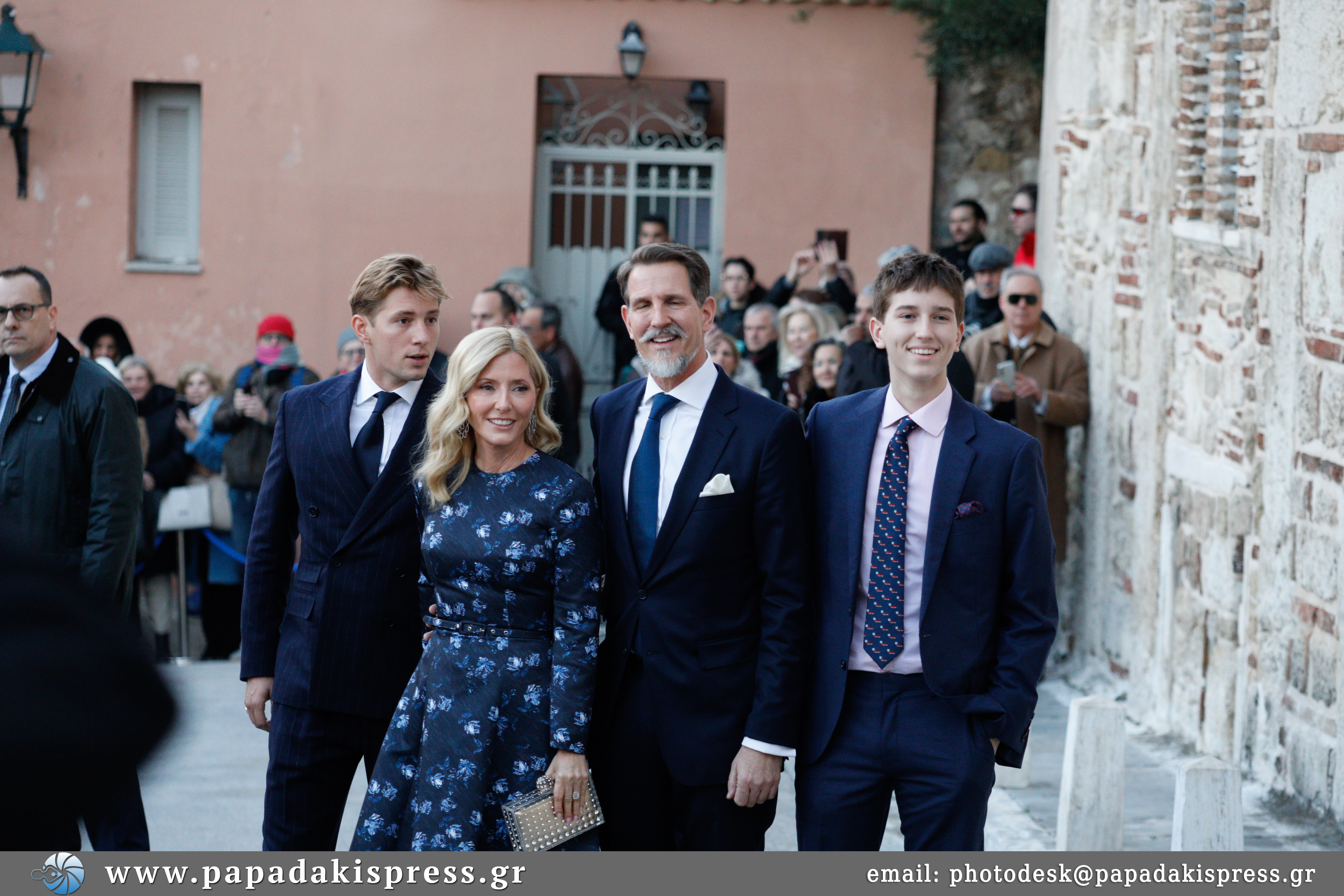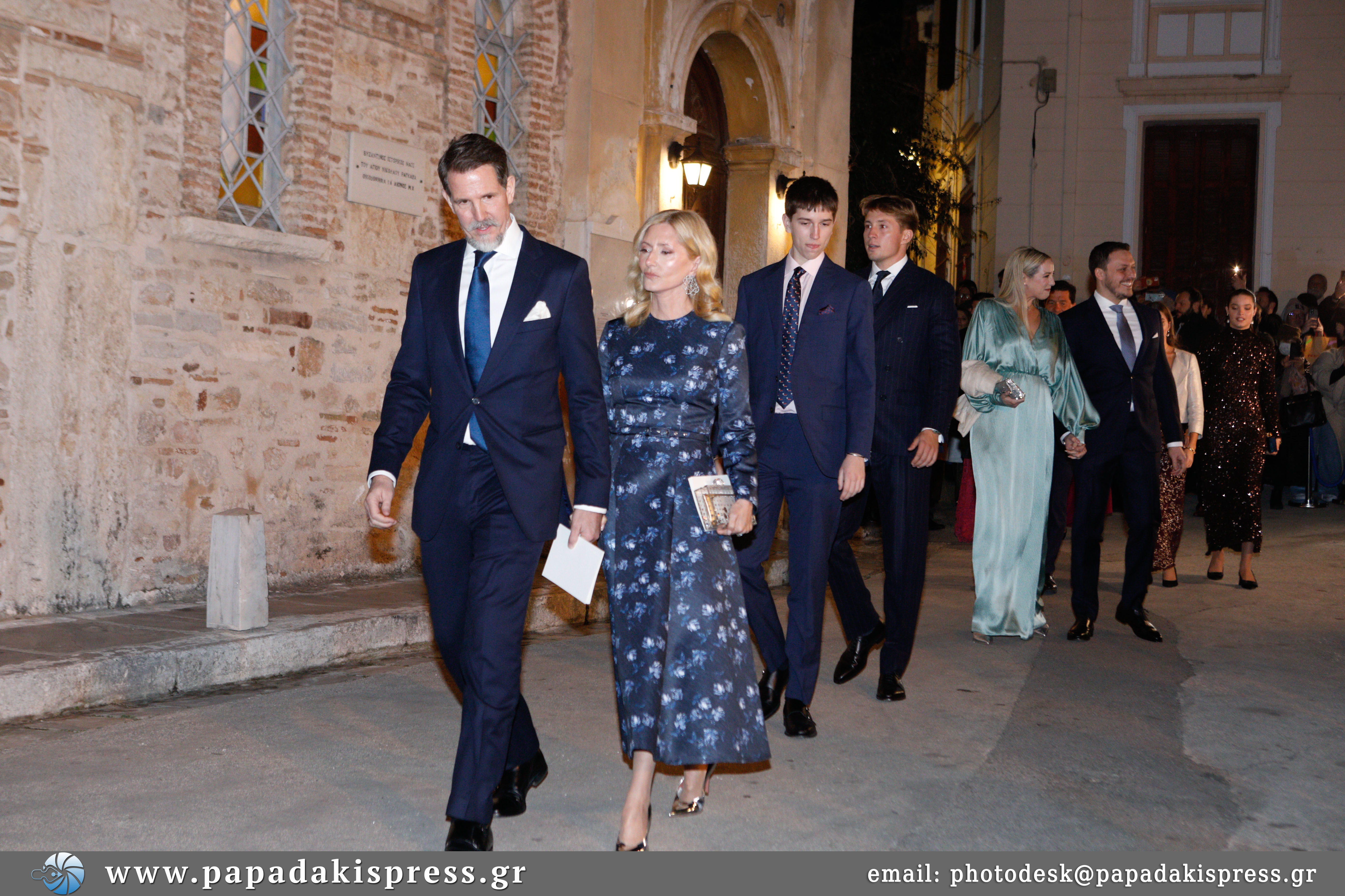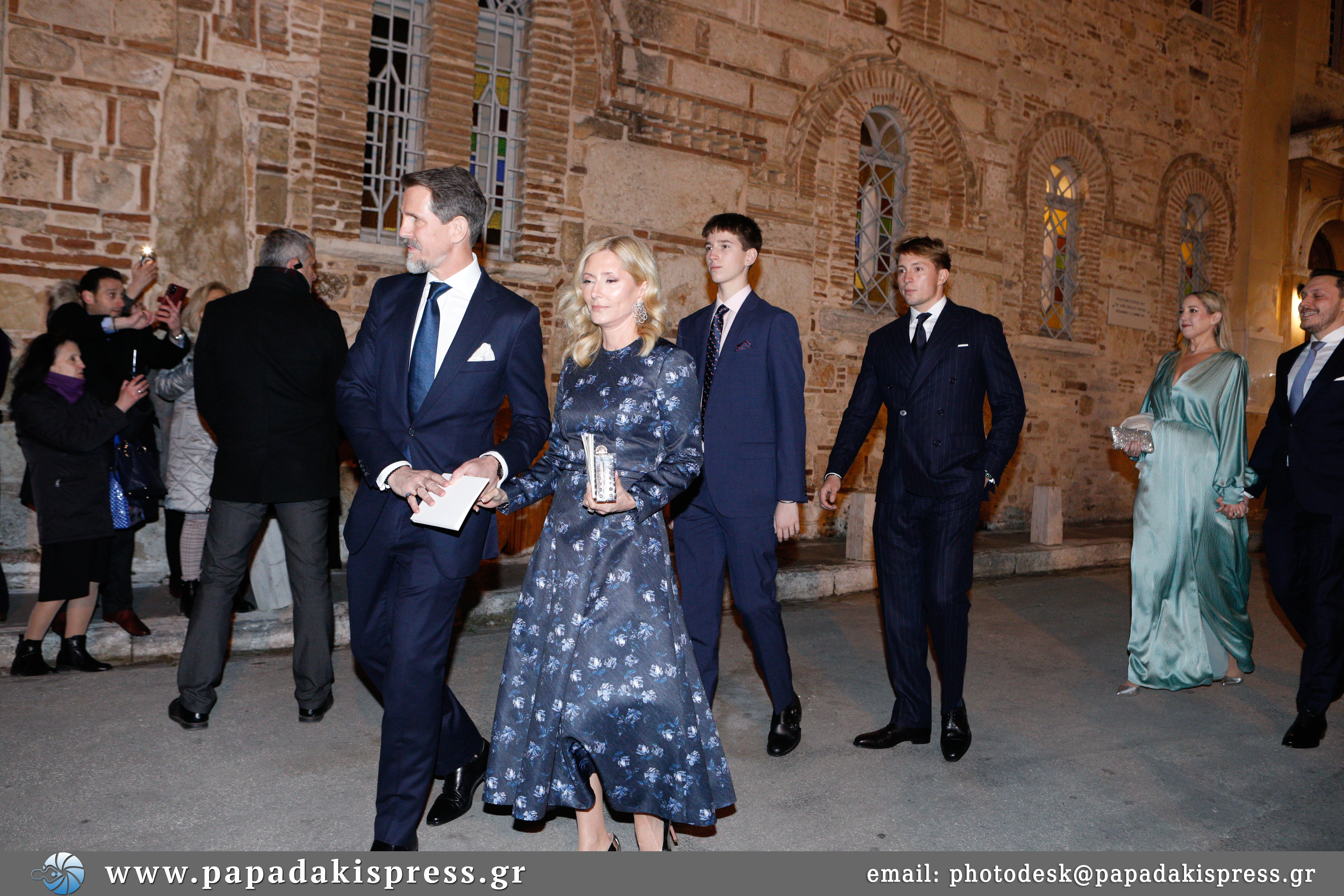 Κομψοί και chick εμφανίστηκαν στο γάμου της Χρυσής Βαρδινογιάννη και του Νικολάου Ντε Γκρες, ο αδελφός του Παύλος Ντε Γκρες μαζί με την σύζυγό του, Μαρί Σαντάλ και τους γιους τους, Κωνσταντίνο Αλέξιο και Αριστείδη Σταύρο. Η Μαρί Σαντάλ φόρεσε ένα μπλε φλοράλ φόρεμα της σχεδιάστριας Emilia Wickstead με μακρύ μανίκι, metallic γόβες, ενώ κρατούσε ένα clutch με κρύσταλλα.