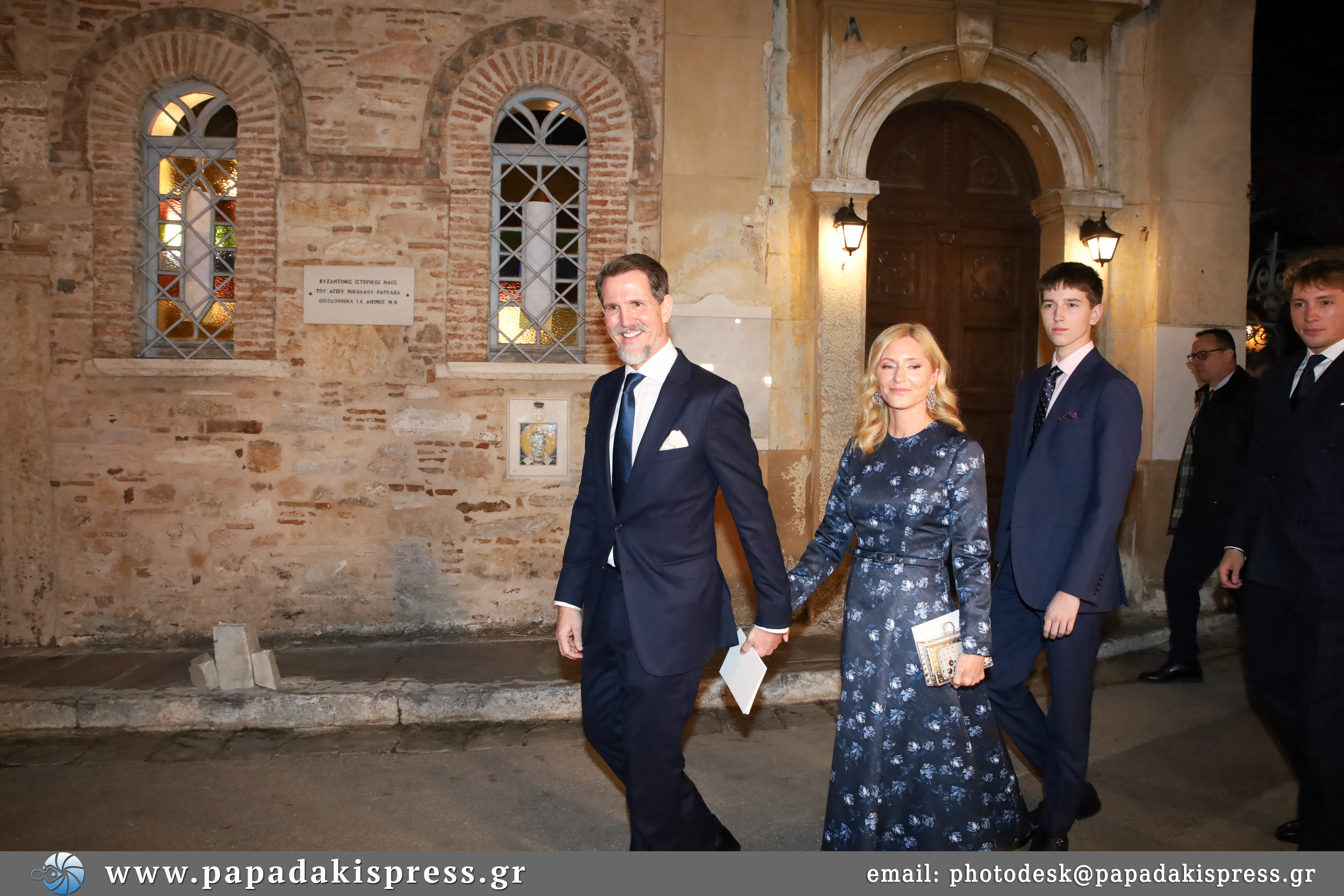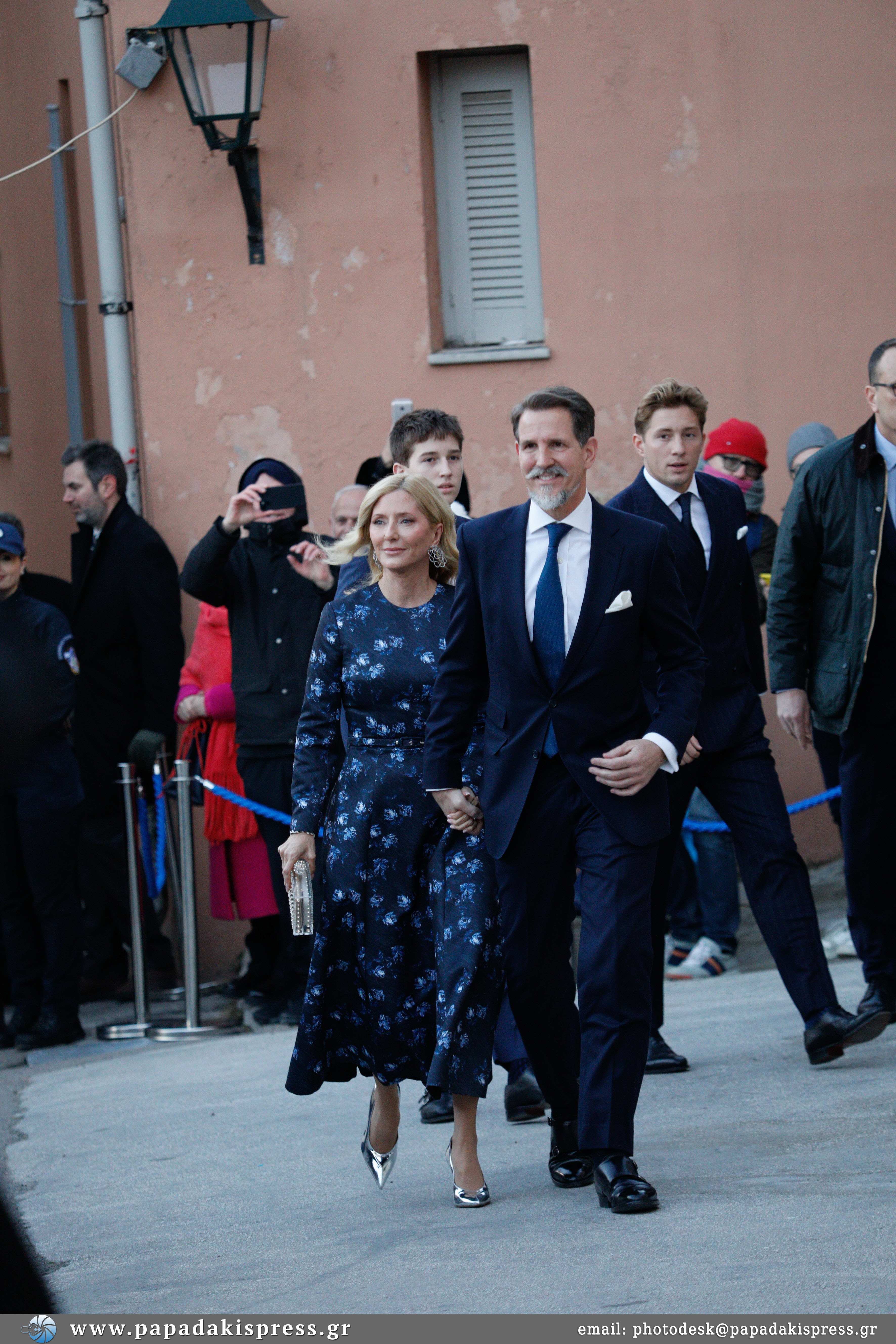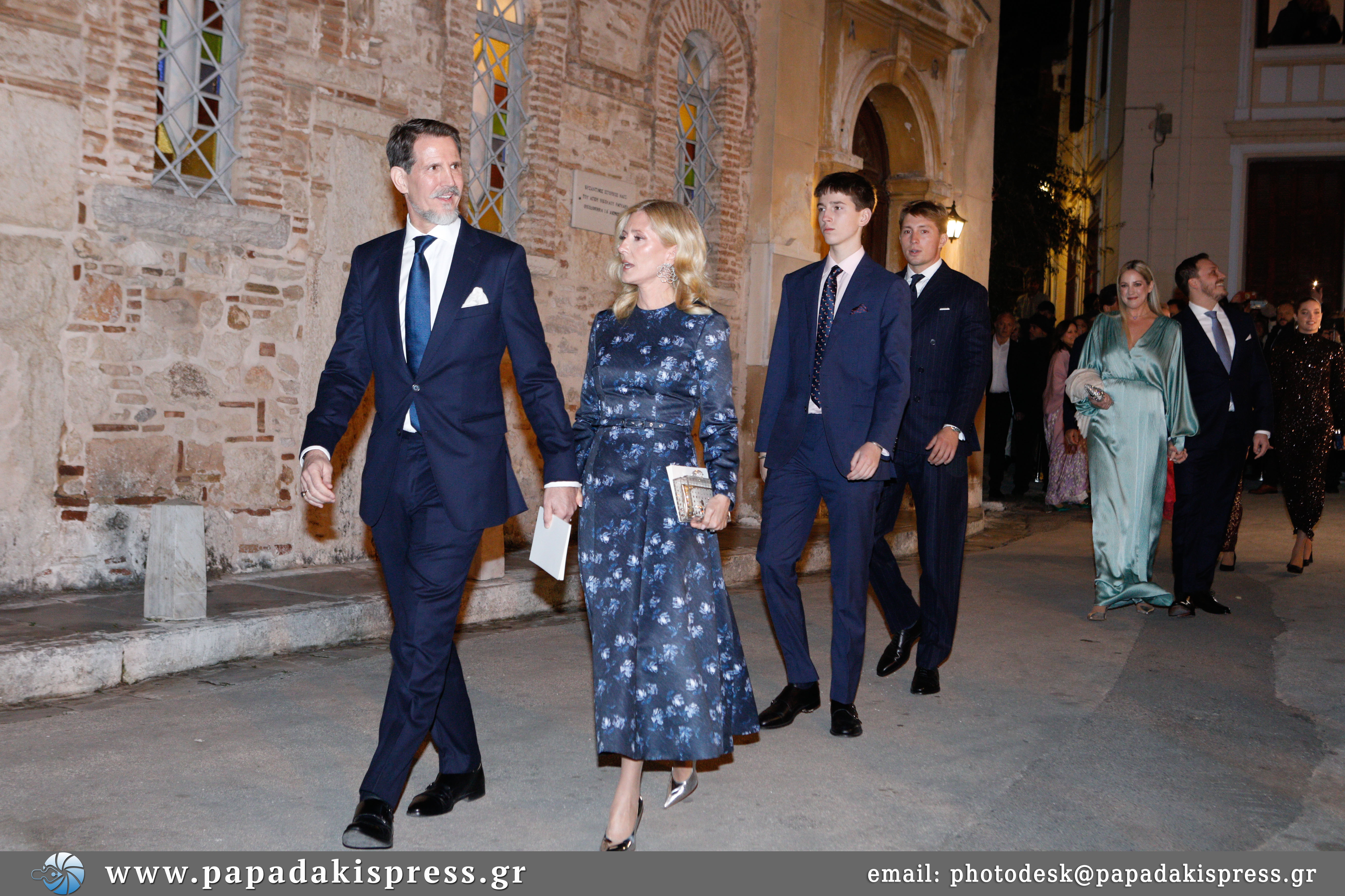 Κομψοί και chick εμφανίστηκαν στο γάμου της Χρυσής Βαρδινογιάννη και του Νικολάου Ντε Γκρες, ο αδελφός του Παύλος Ντε Γκρες μαζί με την σύζυγό του, Μαρί Σαντάλ και τους γιους τους, Κωνσταντίνο Αλέξιο και Αριστείδη Σταύρο. Η Μαρί Σαντάλ φόρεσε ένα μπλε φλοράλ φόρεμα της σχεδιάστριας Emilia Wickstead με μακρύ μανίκι, metallic γόβες, ενώ κρατούσε ένα clutch με κρύσταλλα.