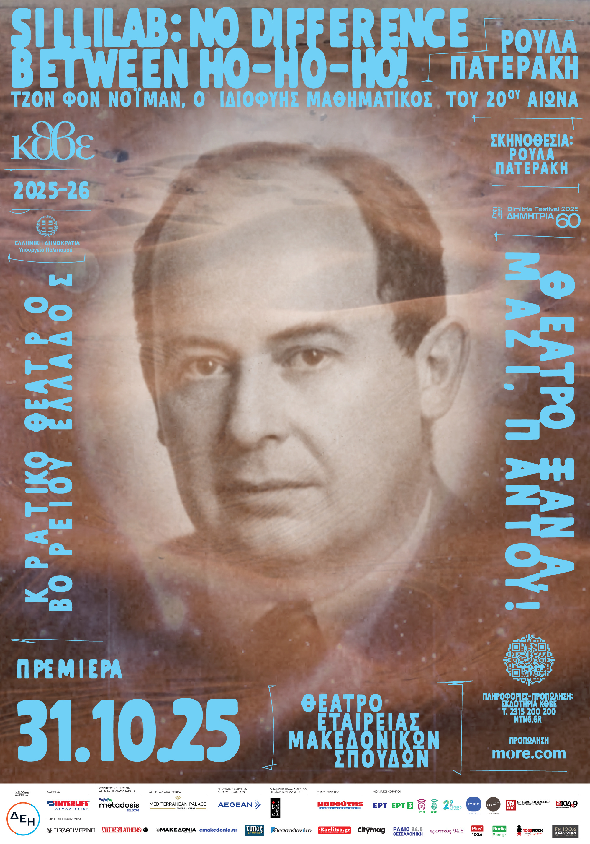 Η Ρούλα Πατεράκη,η μεγάλη κυρία του ελληνικού θέατρου, επέστρεψε στο ΚΘΒΕ και μας… αποκάλυψε, με μοναδικό τρόπο,γεμάτο συγκίνηση, την προσωπικότητα του κορυφαίου μαθηματικού του 20ού αιώνα, Τζον φον Νόιμαν«φωτίζοντας» στιγμές της επαγγελματικής και προσωπικής του ζωής.