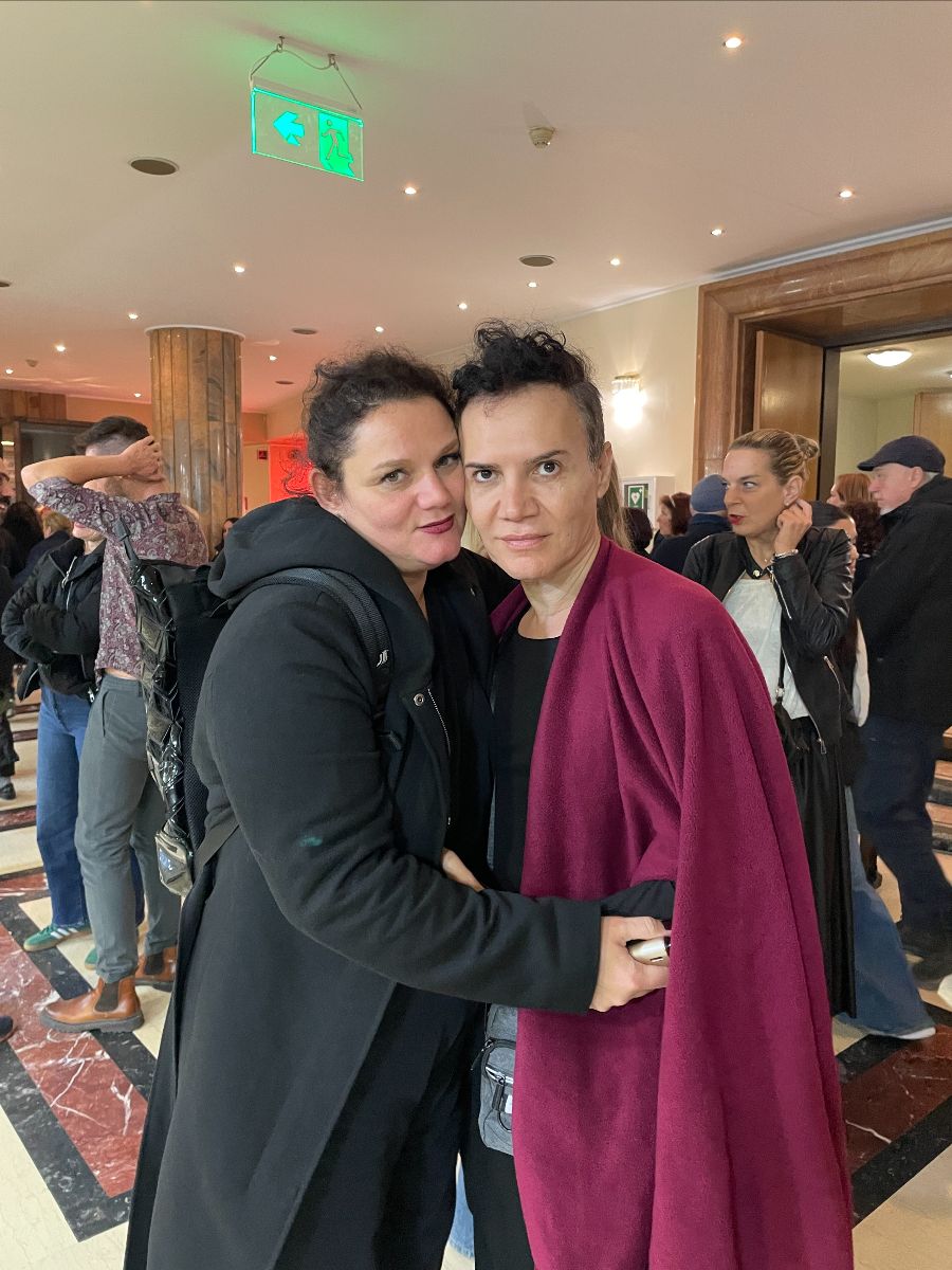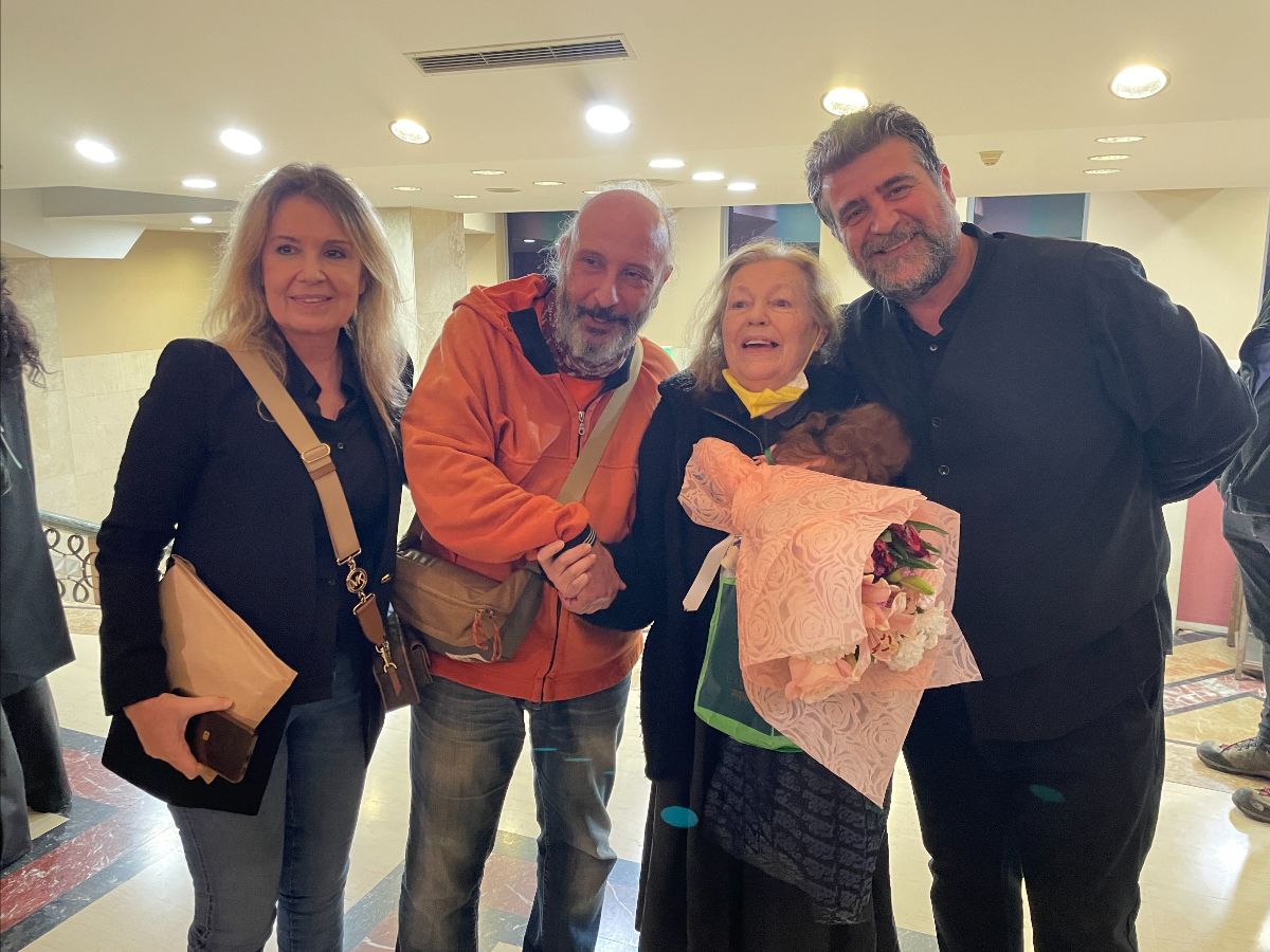 Η Ρούλα Πατεράκη με τον Καλλιτεχνικό Διευθυντή του ΚΘΒΕ Αστέρη Πελτέκη, τον θεατρικό Συγγραφέα Σάκη Σερέφα και την σκηνοθέτιδα Ανδρομάχη Χρυσομάλη.